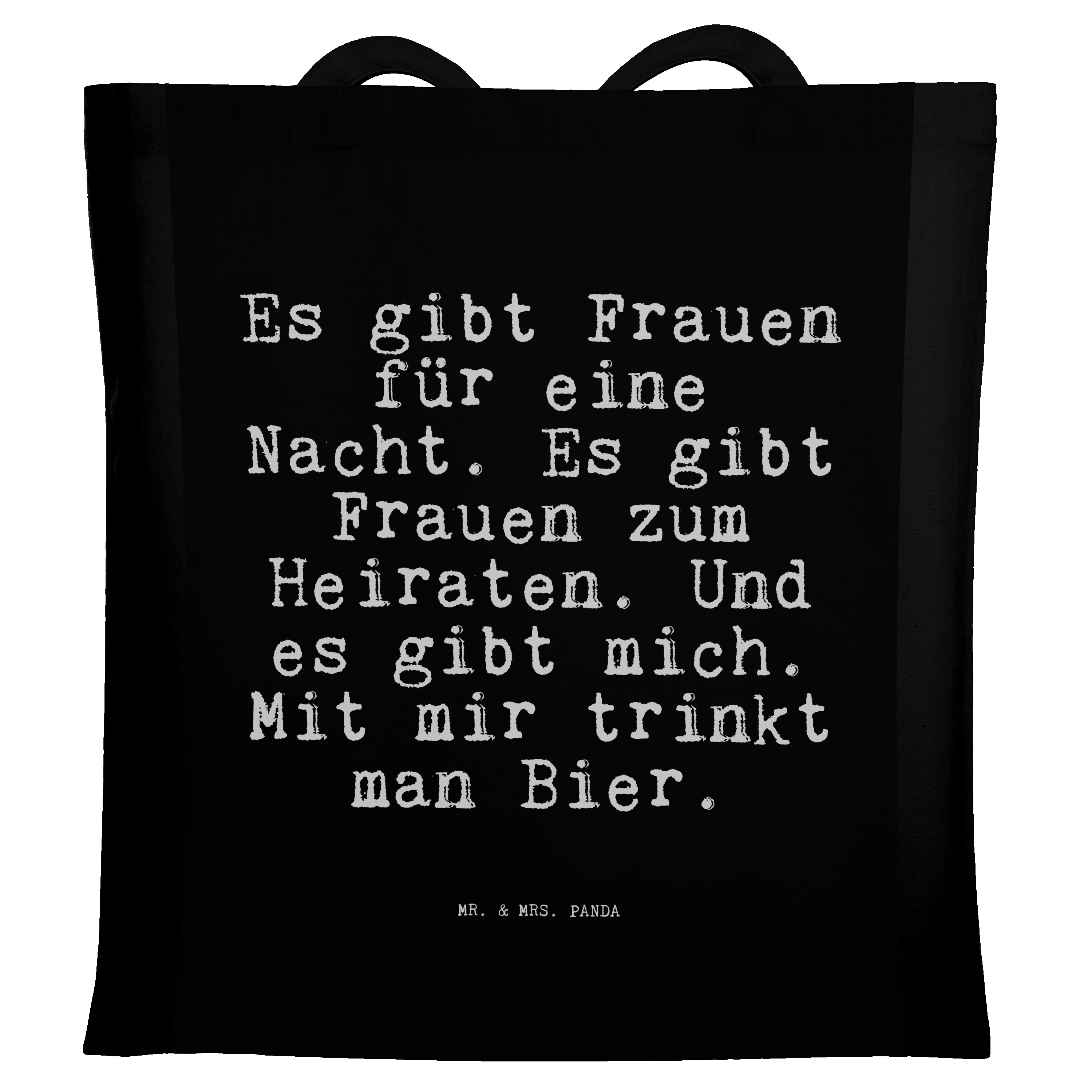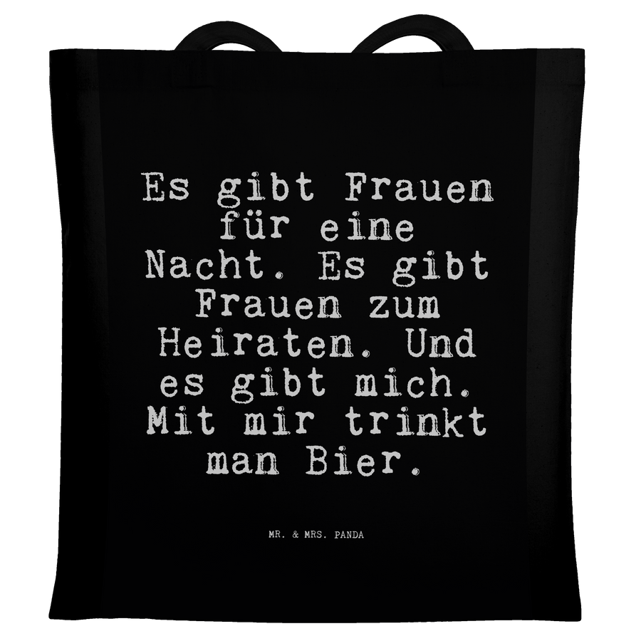 Tragetasche Sprüche und Zitate Es gibt Frauen für eine Nacht. Es gibt Frauen zum Heiraten. Und es gibt mich. Mit mir trinkt man Bier.
