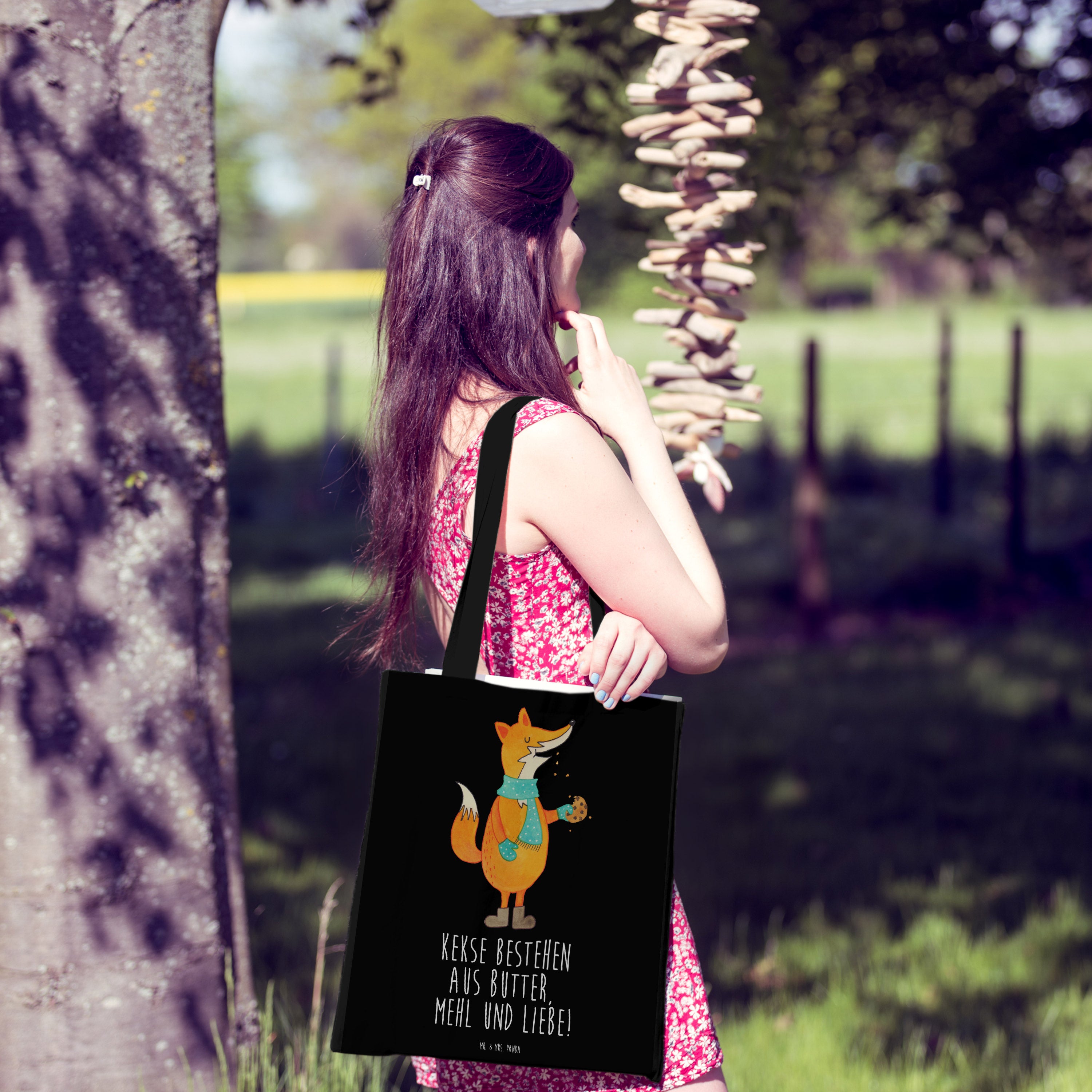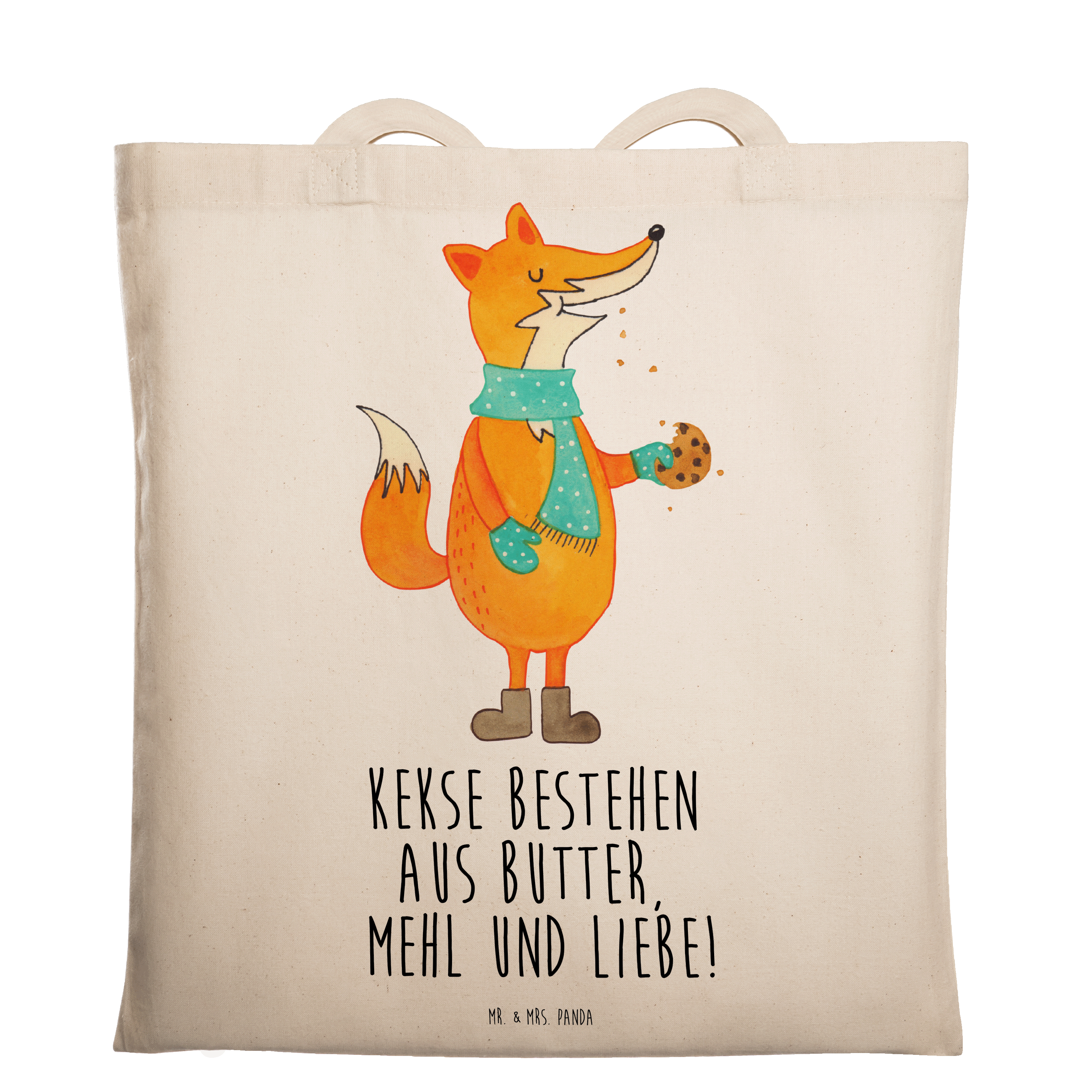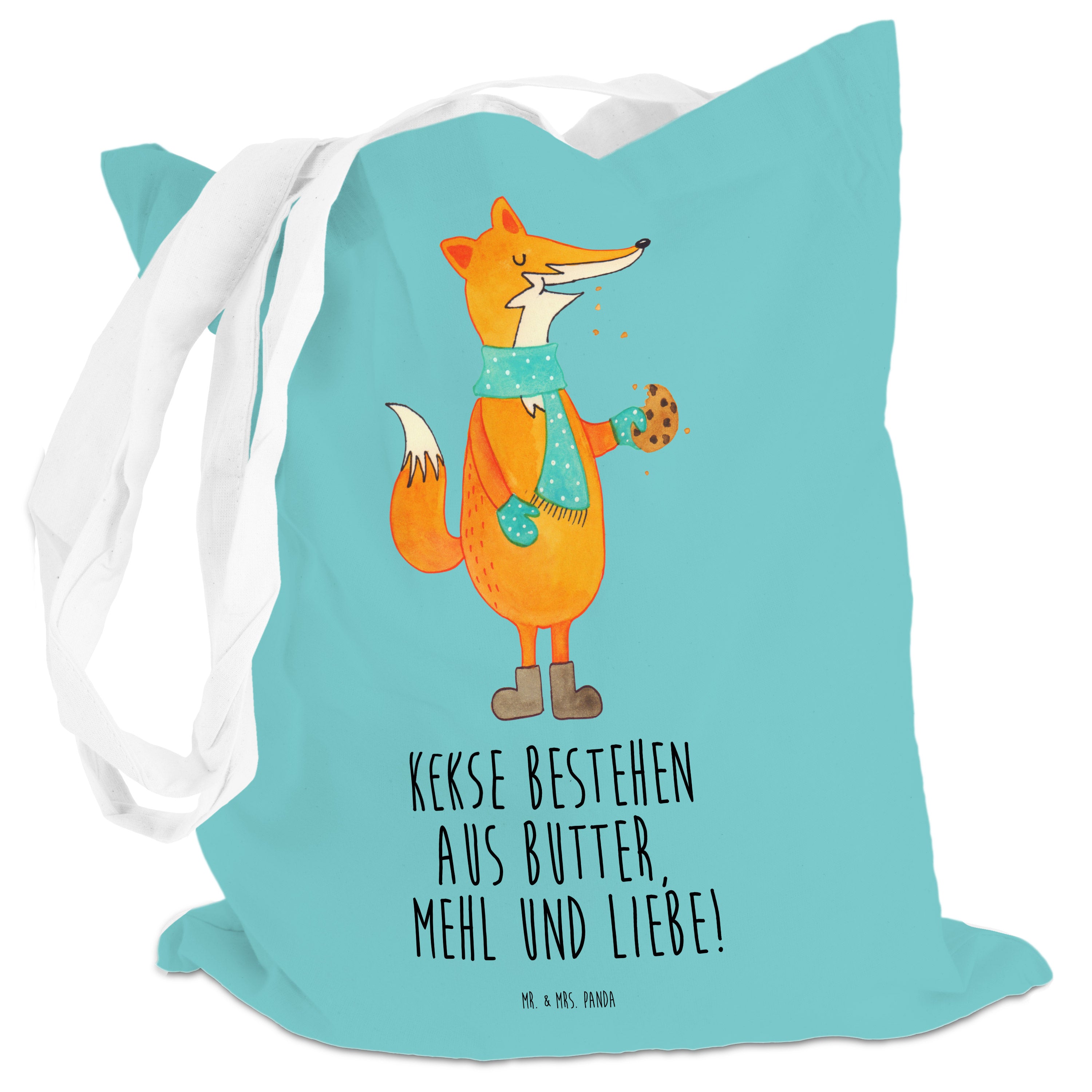 Tragetasche Fuchs Keks Beuteltasche, Beutel, Einkaufstasche, Jutebeutel, Stoffbeutel, Fuchs, Füchse, Backen Spruch, Kekse, Winter, Weihnachtszeit, Plätzchen, Liebe, Küche Deko
