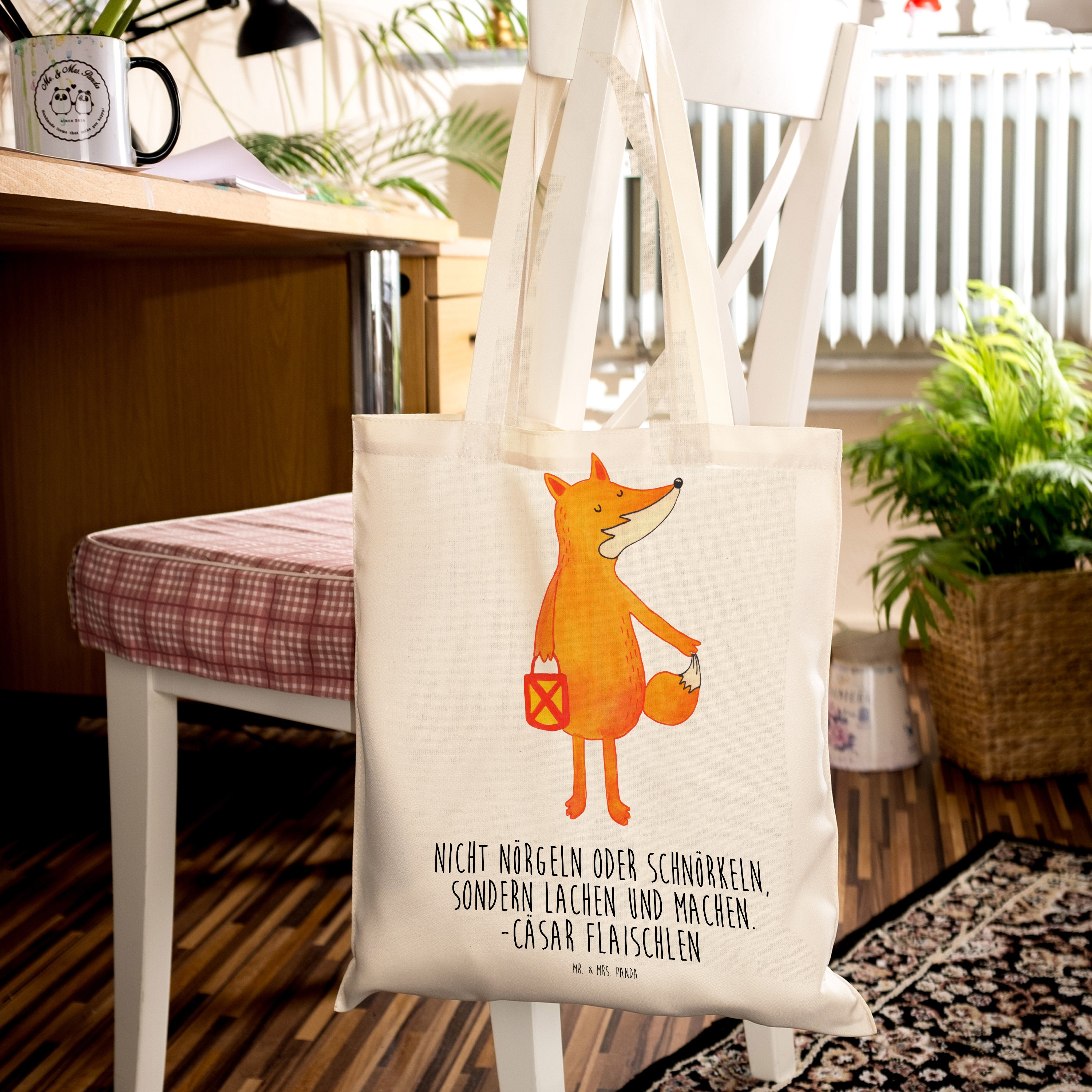 Tragetasche Fuchs Laterne - mit Spruch - Transparent