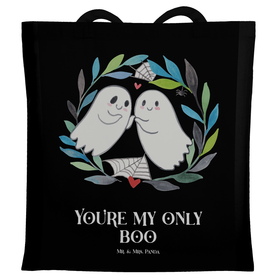 Tauche in eine Szene voller Romantik und Fantasie ein. Du siehst ein bezauberndes Gespensterpaar, händchenhaltend und verliebt in die Augen schauend. Lass dich verzaubern vom grünen und blauen Farbton der Blättergirlande, die das Paar umrahmt und den feinen Spinnweben, die ihre Liebe noch mysteriöser machen.