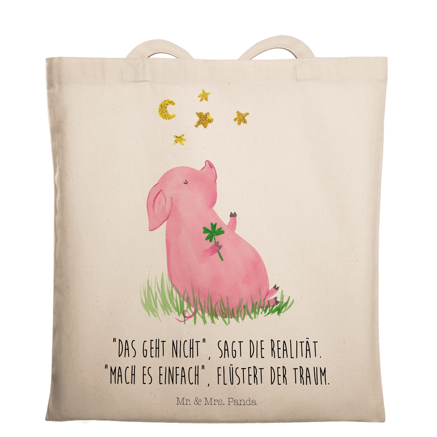 Tragetasche Glücksschwein - mit Spruch - Transparent