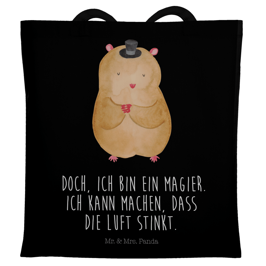 Tragetasche Hamster mit Hut - mit Spruch - Schwarz