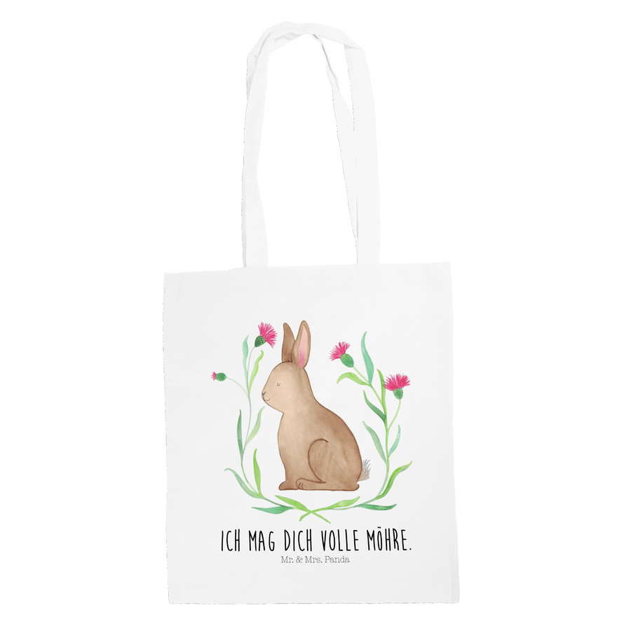Tragetasche Hase sitzend - mit Spruch - Weiß