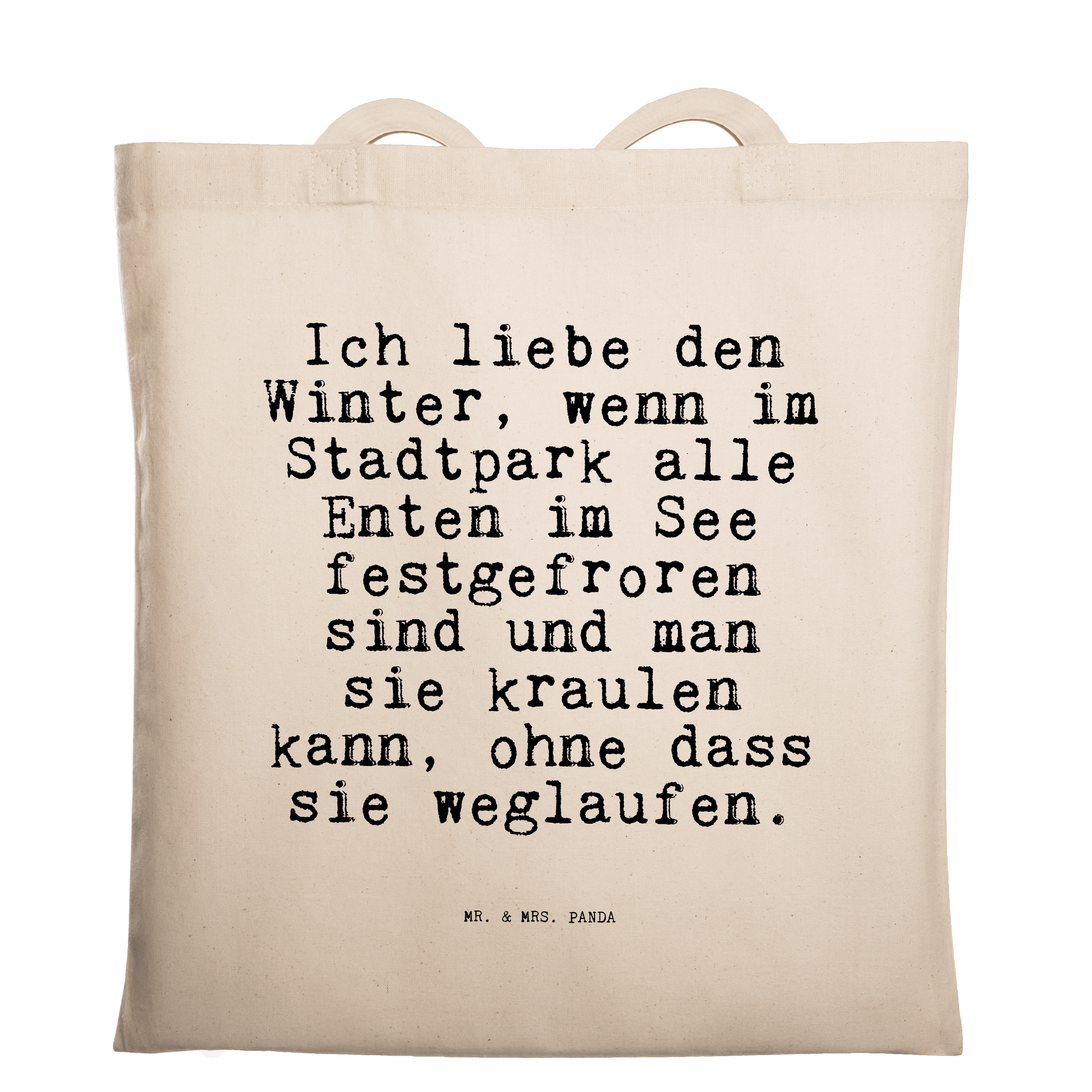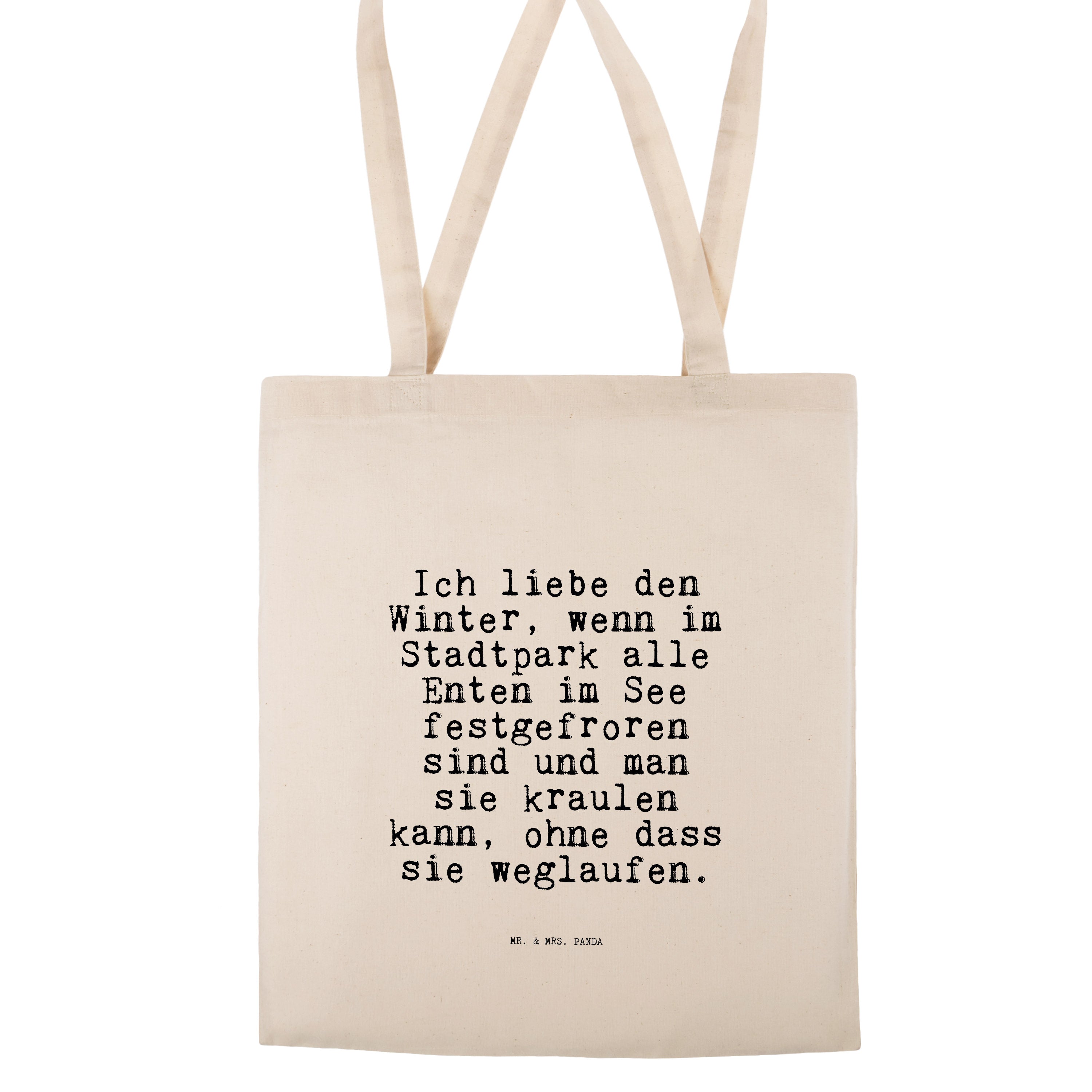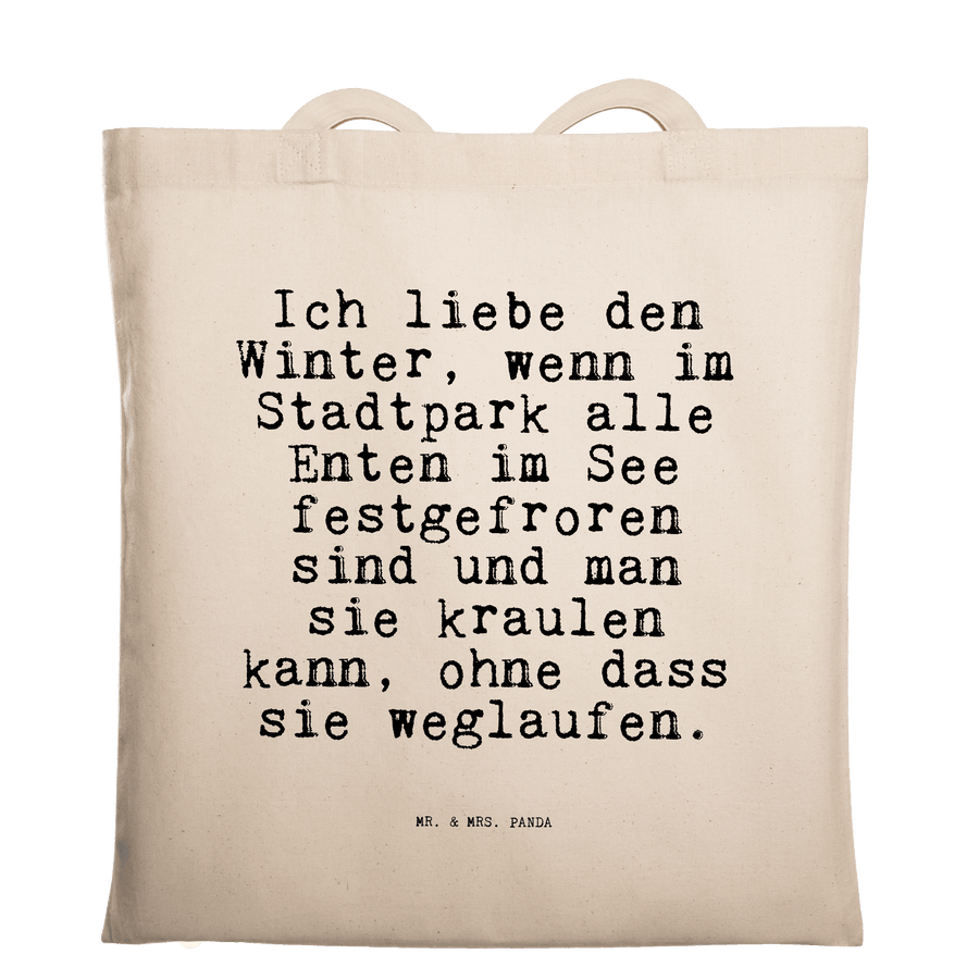 Tragetasche Sprüche und Zitate Ich liebe den Winter, wenn im Stadtpark alle Enten im See festgefroren sind und man sie kraulen kann, ohne dass sie weglaufen.