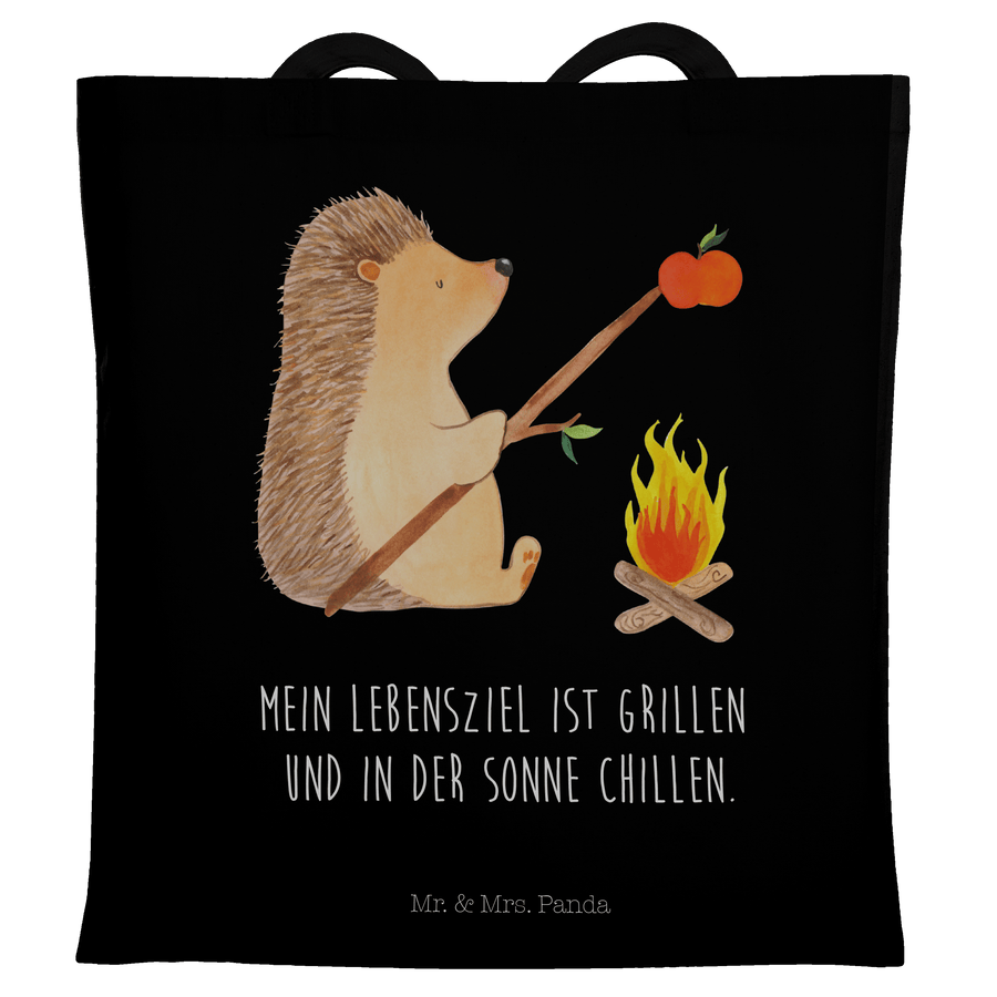 Tragetasche Igel grillt - mit Spruch - Schwarz