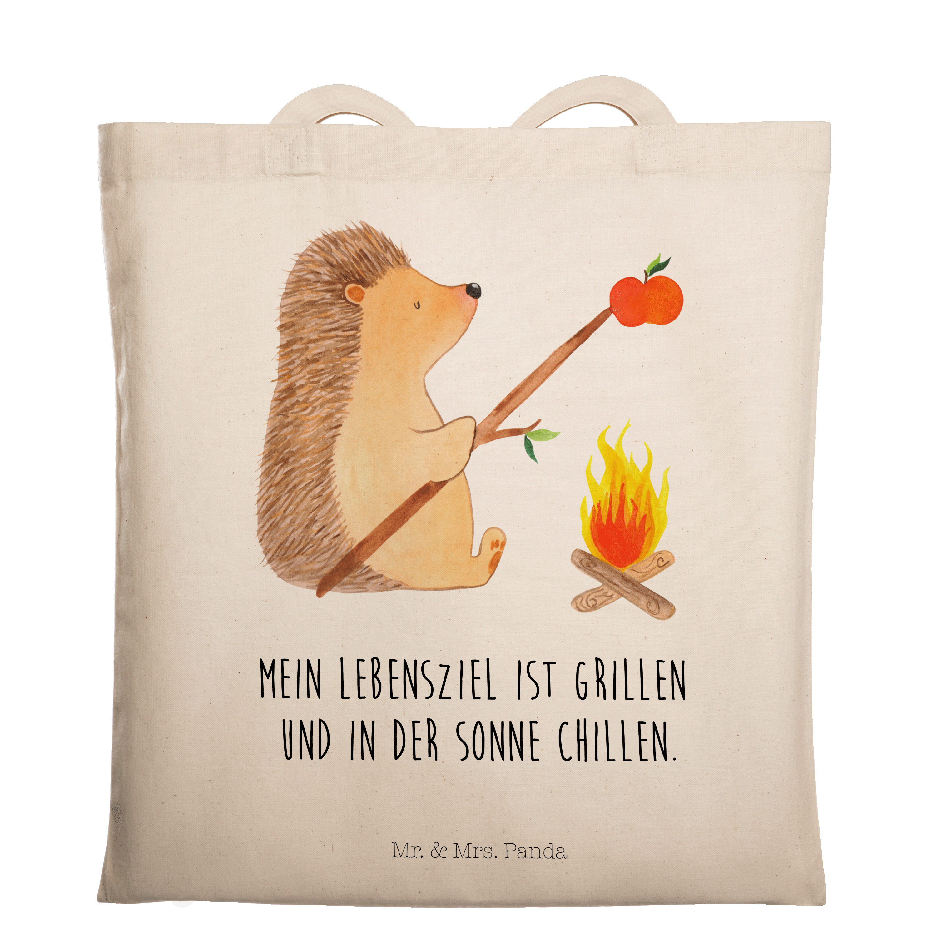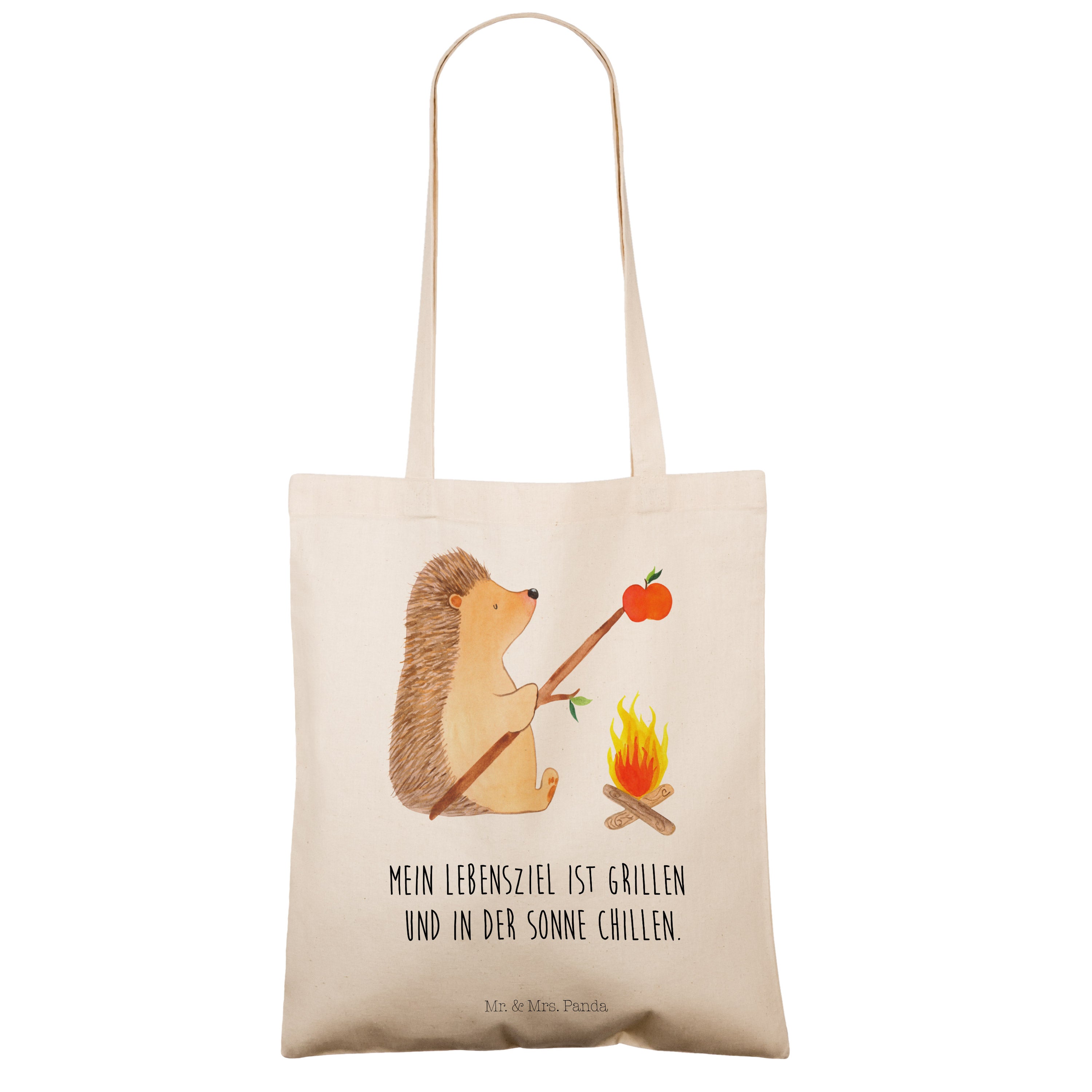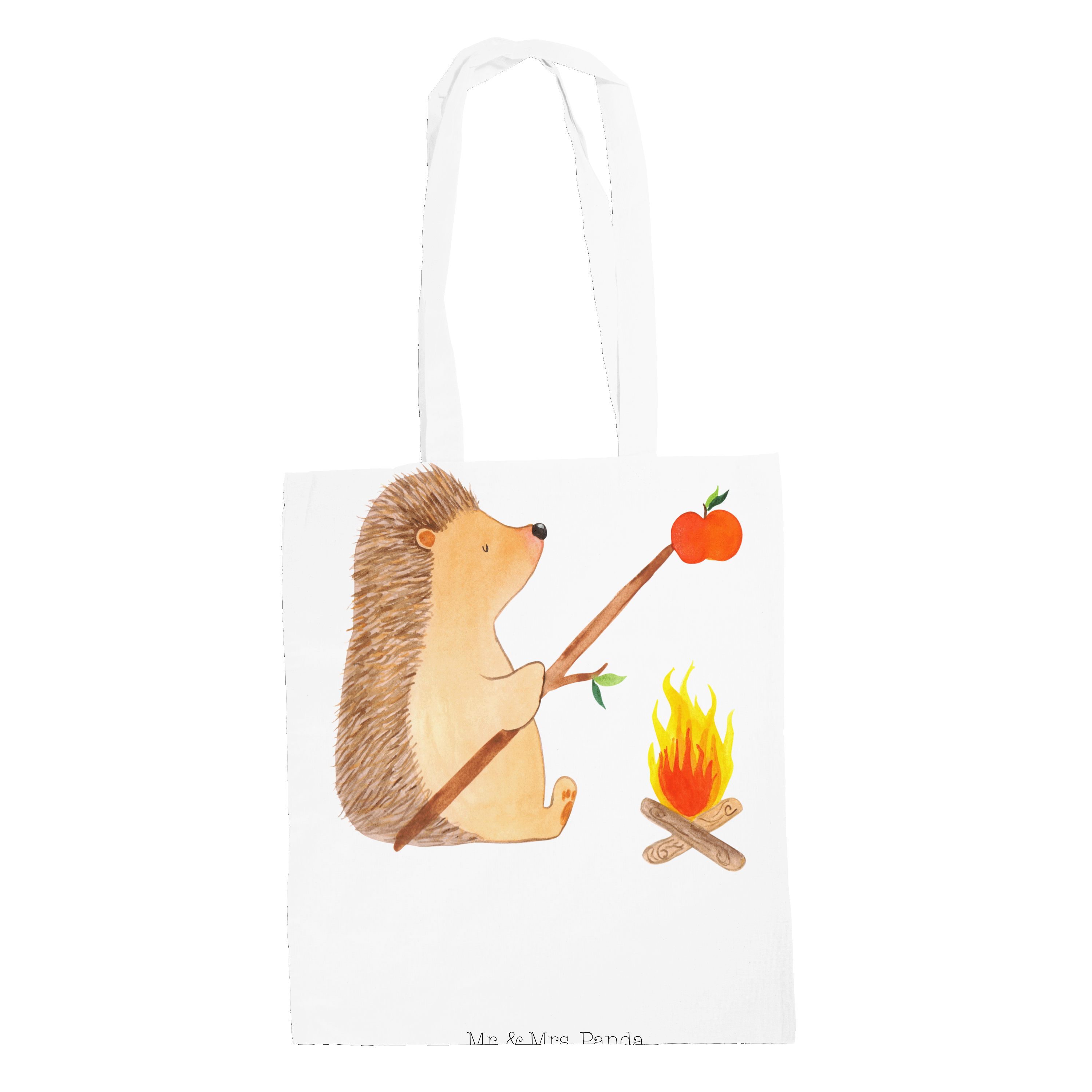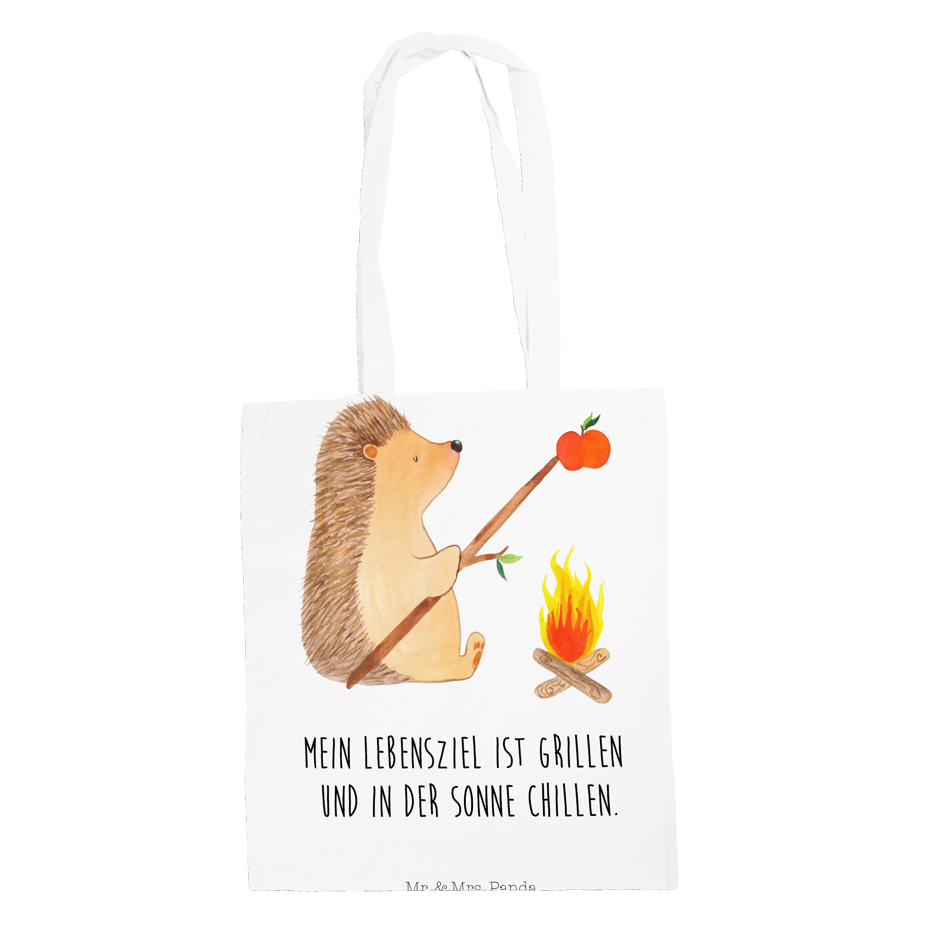 Tragetasche Igel grillt - mit Spruch - Weiß
