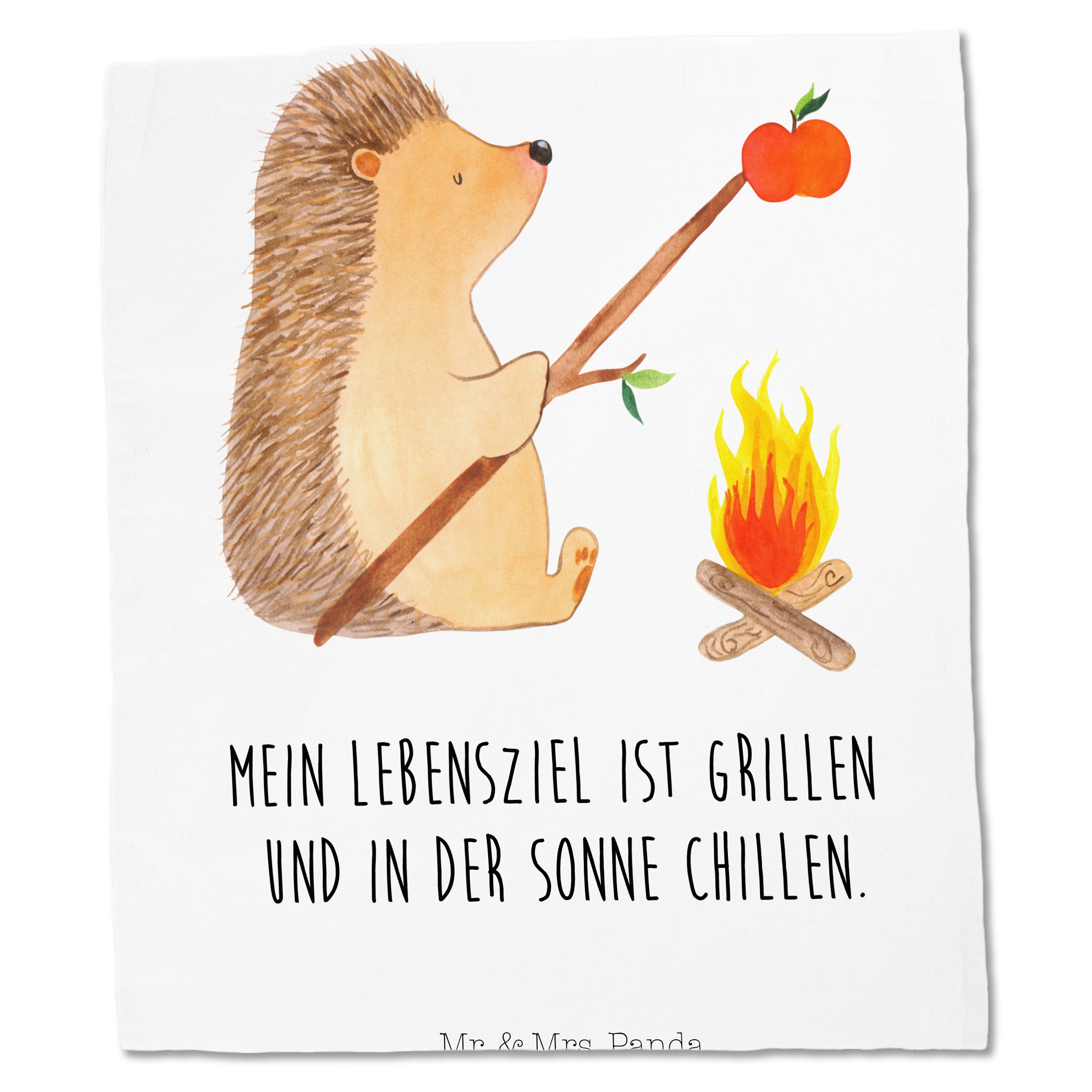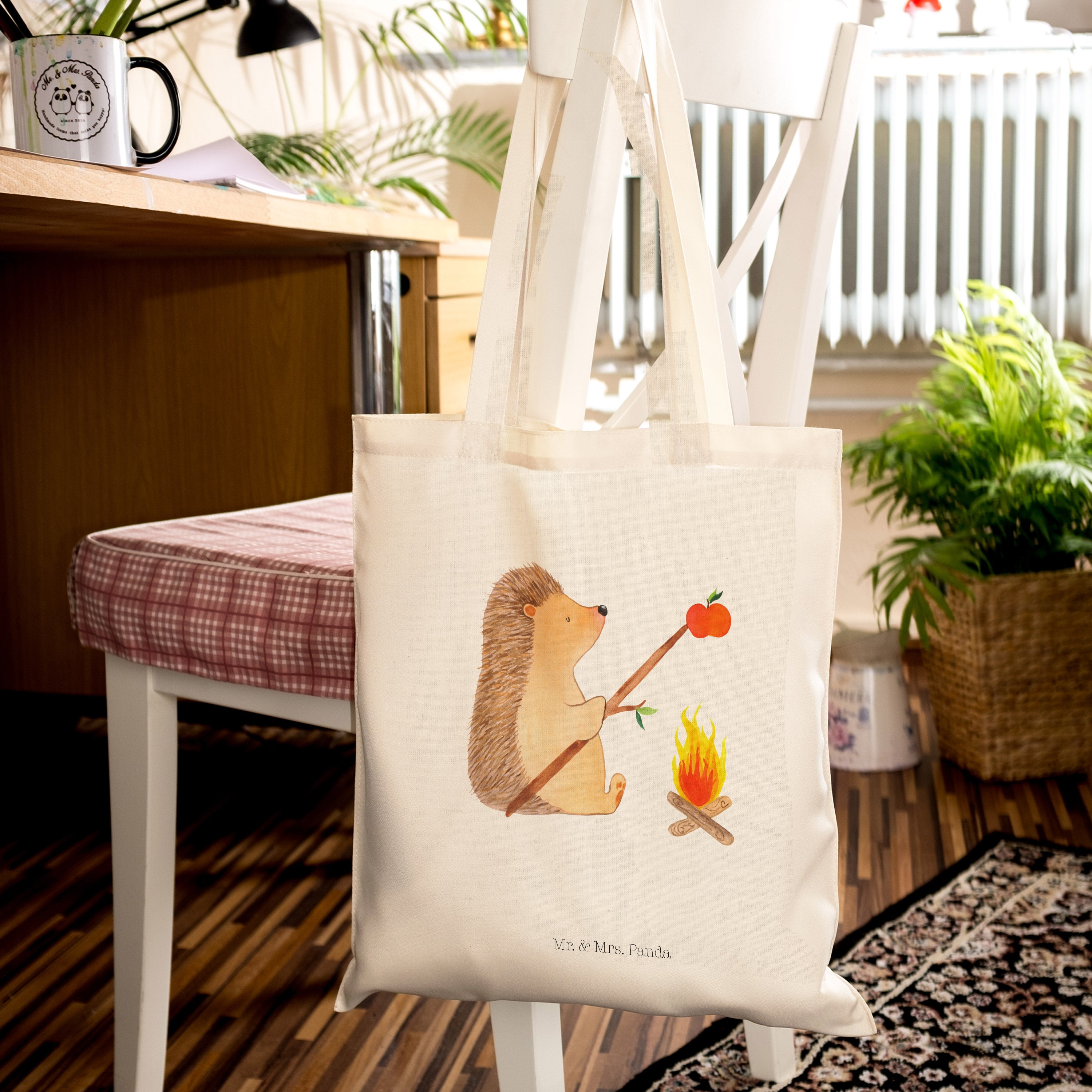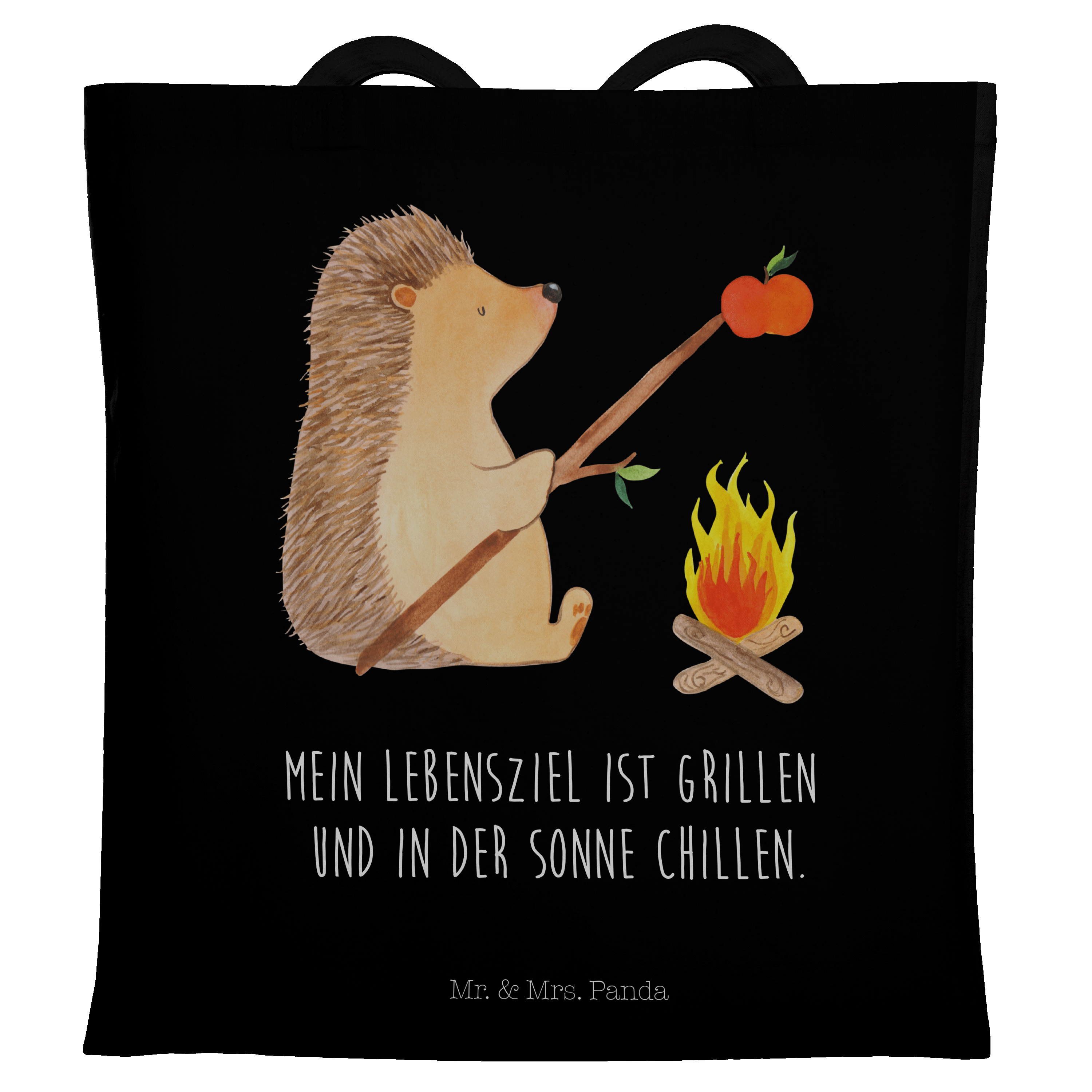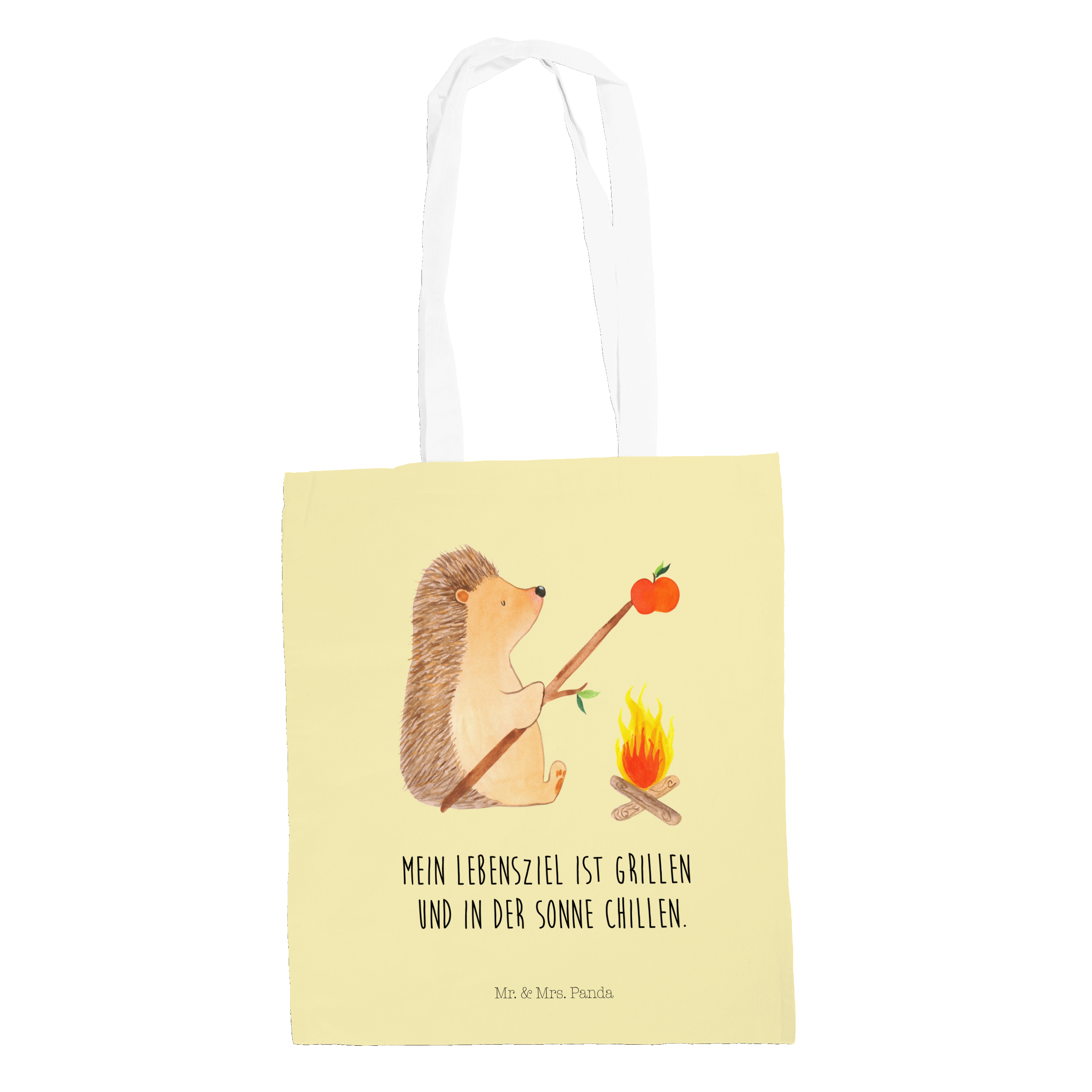 Tragetasche Igel grillt - mit Spruch - Weiß