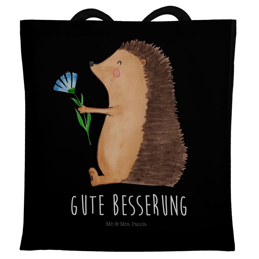 Tragetasche Igel mit Blume - mit Spruch - Schwarz