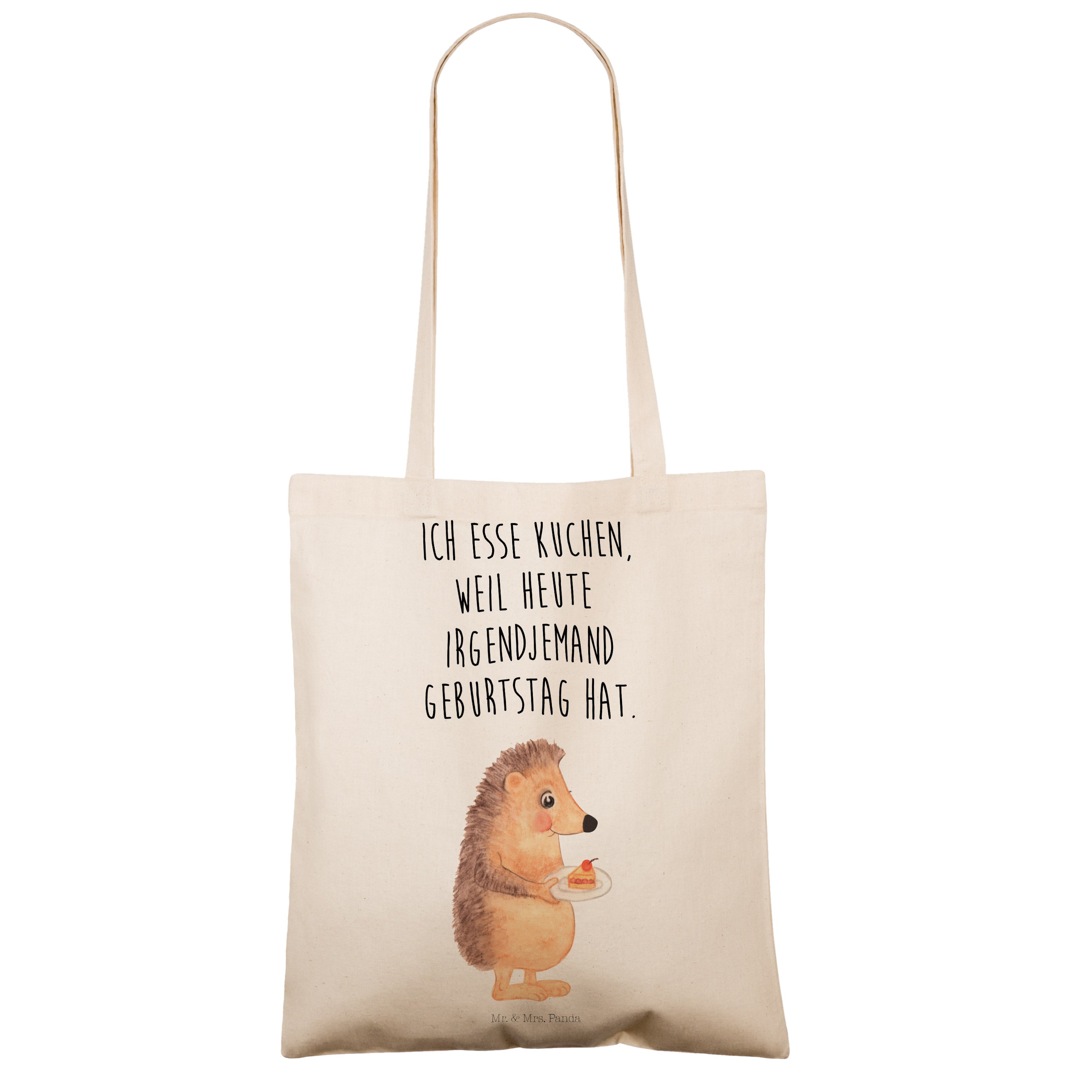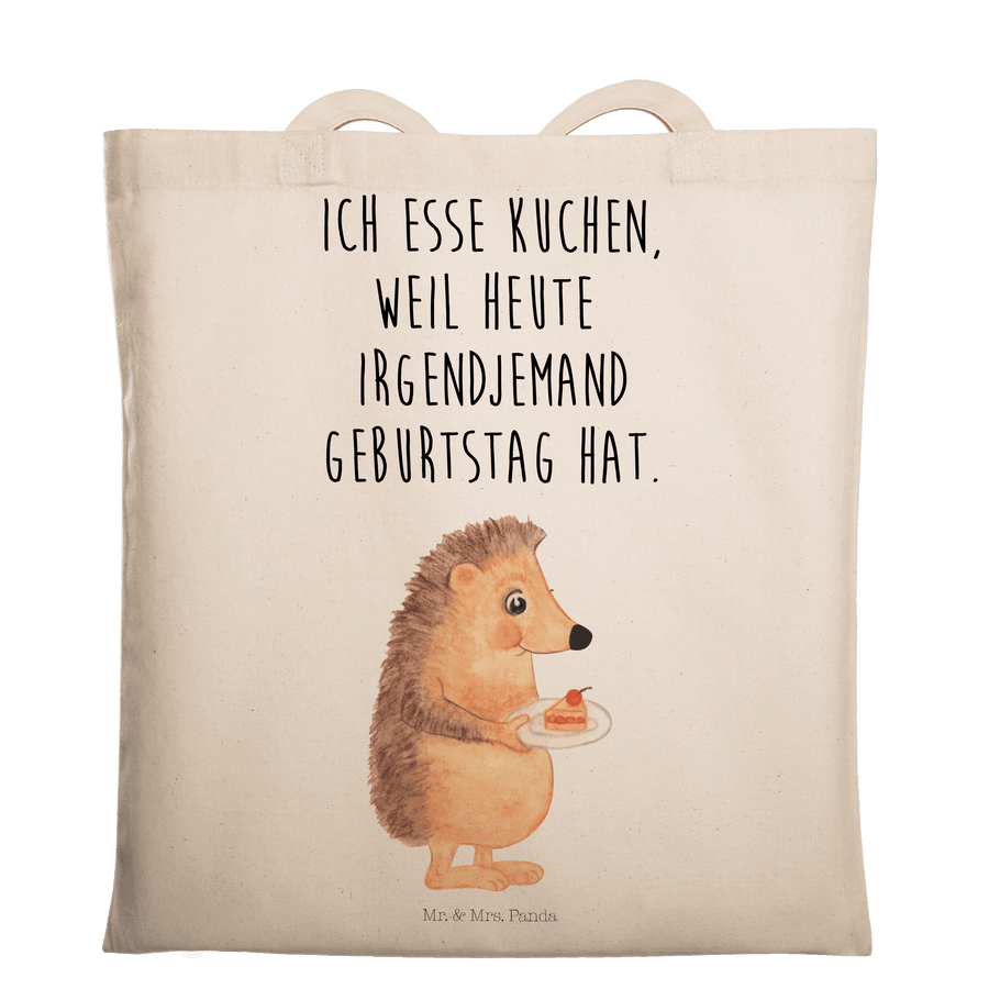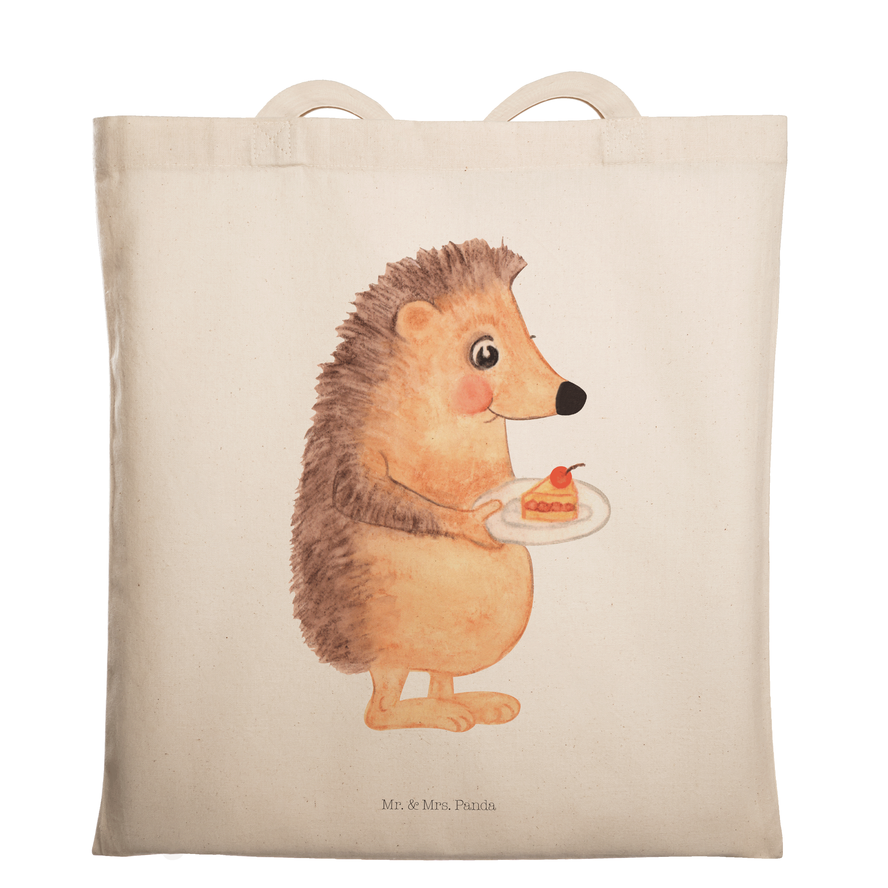 Tragetasche Igel mit Kuchenstück - mit Spruch - Transparent