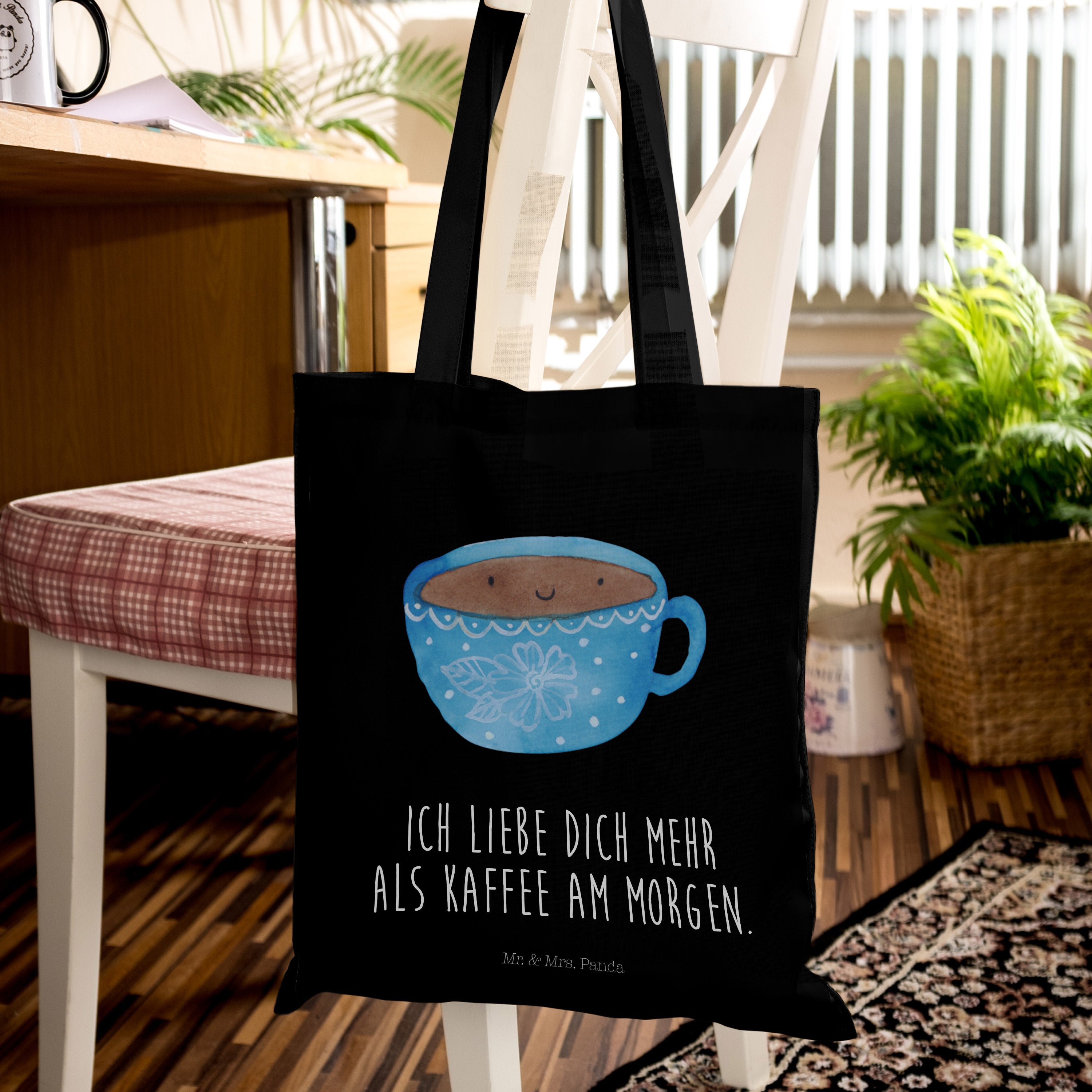 Gönn dir eine Auszeit mit einer Tasse Kaffee von Mr. & Mrs. Panda. Die fröhlich gestaltete Tasse zeigt eine Tasse Kaffee, die glücklich darüber ist, mit köstlichem Kaffee befüllt zu sein. Der putzige Gesichtsausdruck der Tasse wird dich eine kurze Pause vom Alltag versüßen und dich mit neuer Energie versorgen.