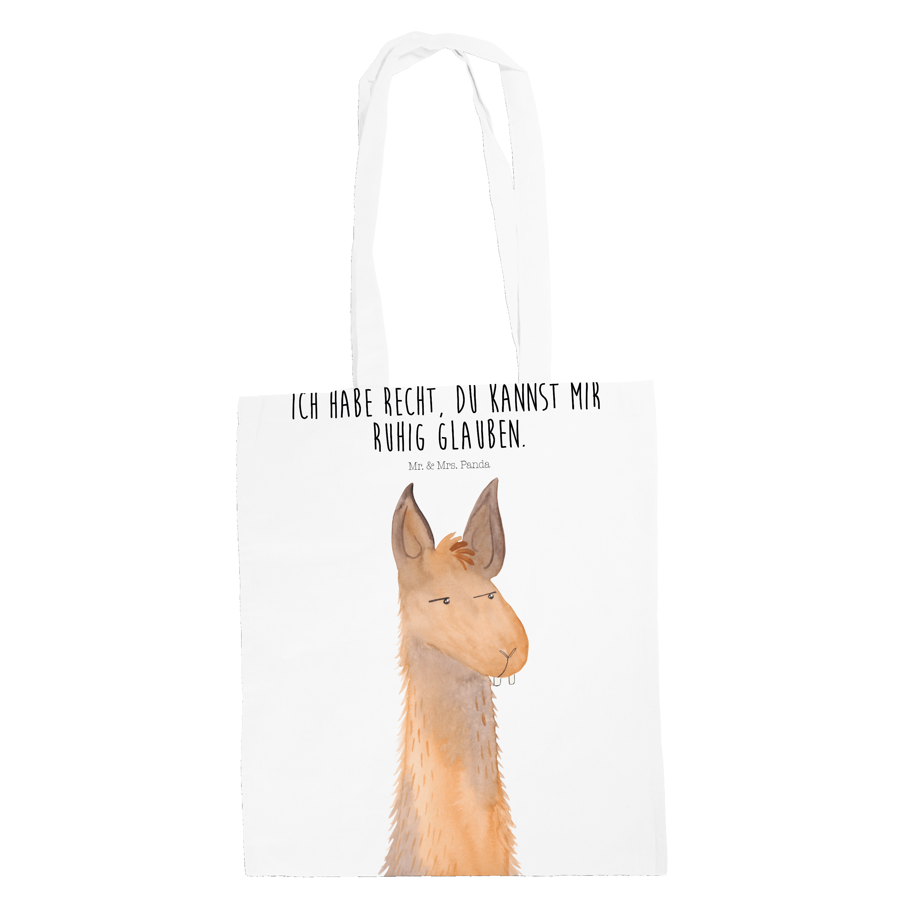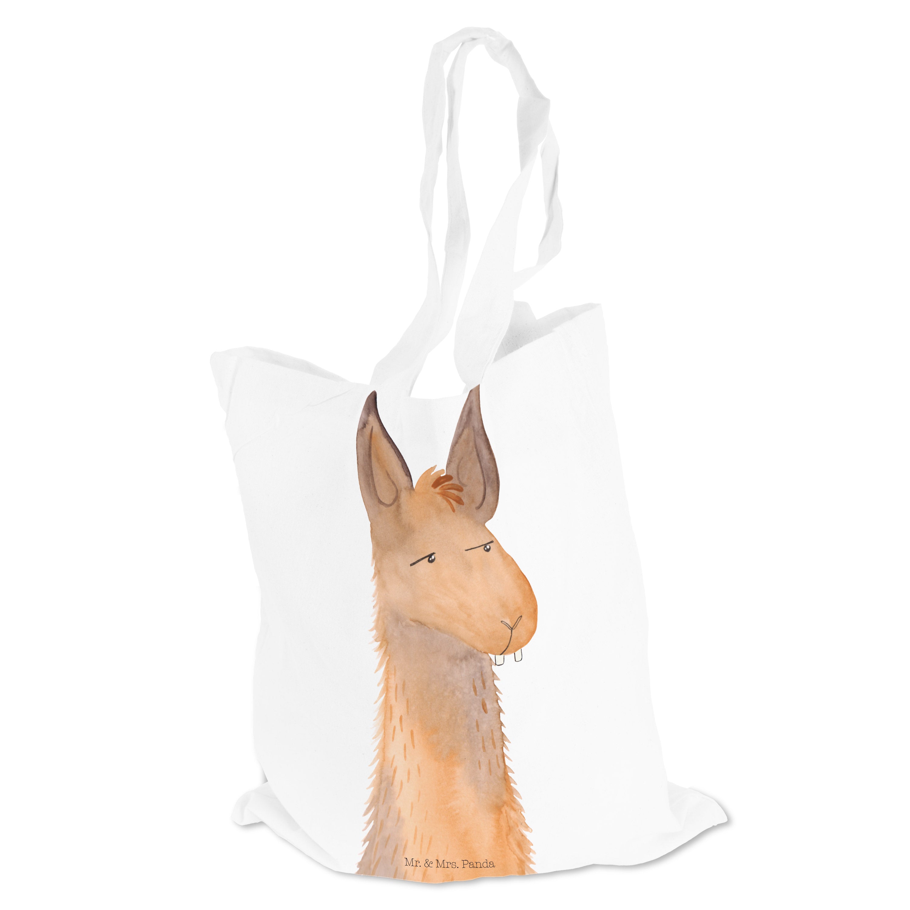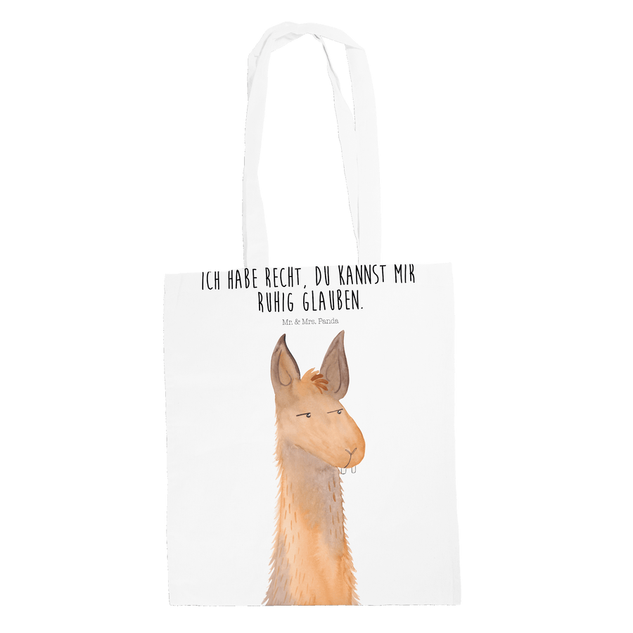 Tragetasche Lamakopf genervt - mit Spruch - Weiß