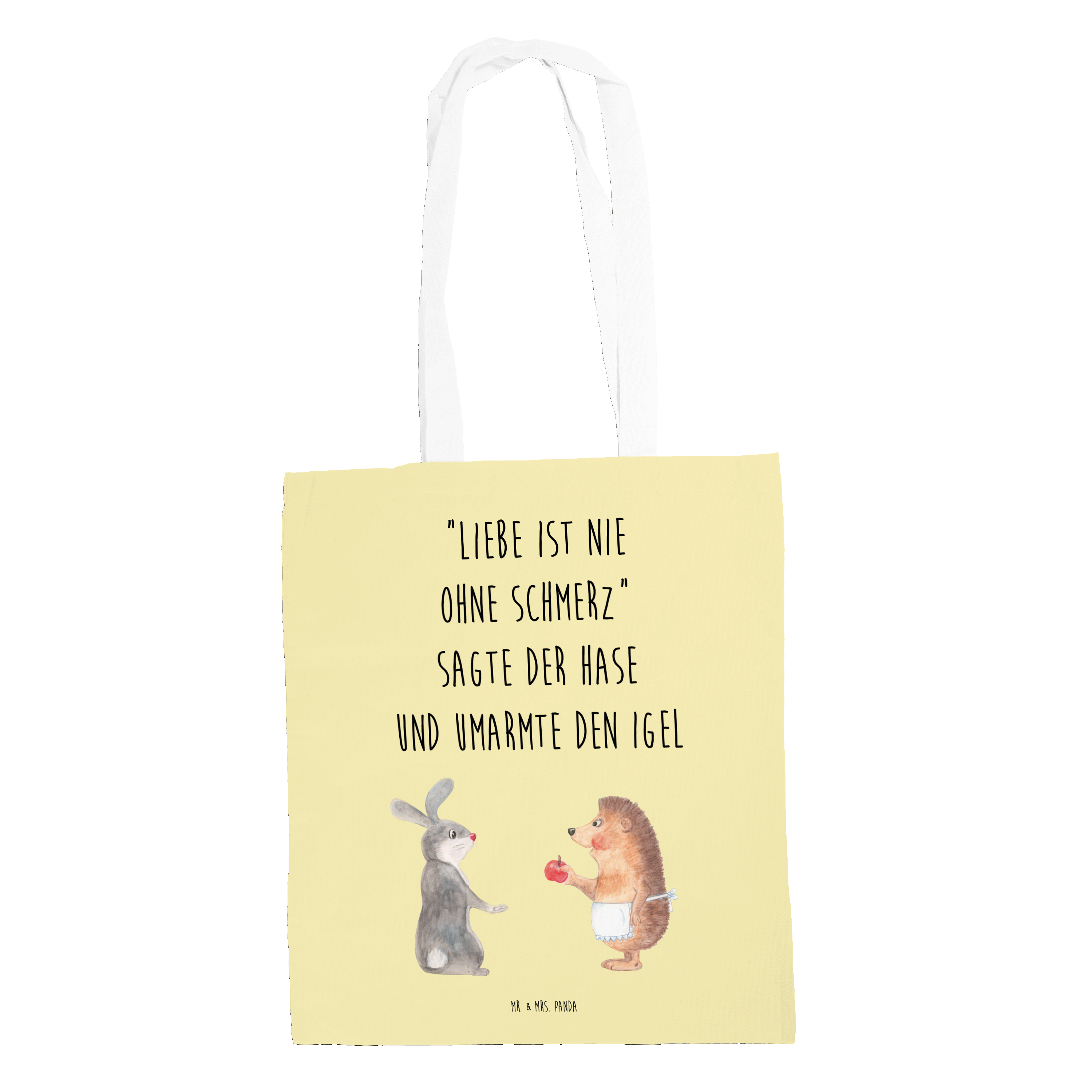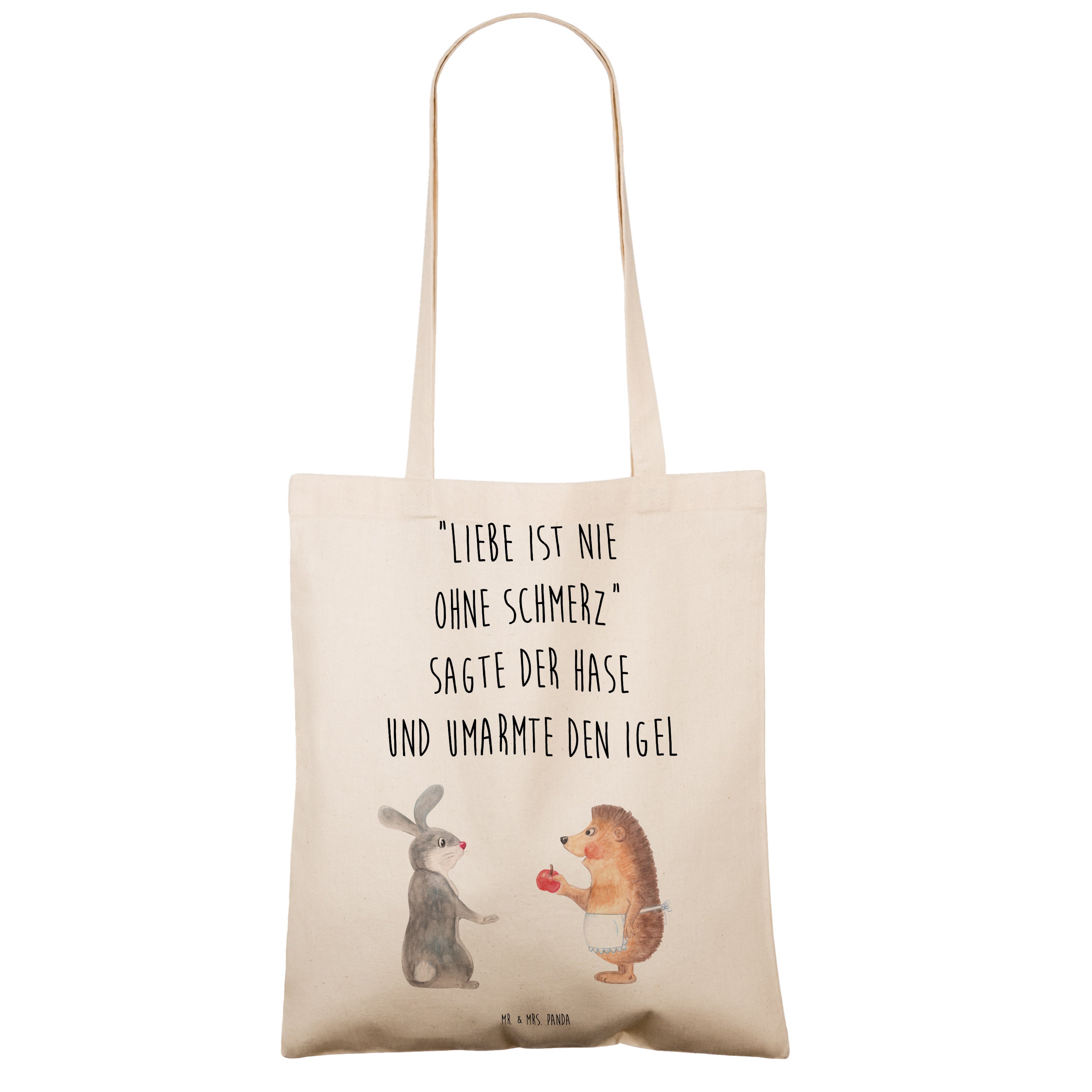 Tragetasche Liebe ist nie ohne Schmerz Beuteltasche, Beutel, Einkaufstasche, Jutebeutel, Stoffbeutel, Tiermotive, Gute Laune, lustige Sprüche, Tiere, Igel und Hase, Igel, Hase, Liebe Spruch, Liebeskummer Geschenk, Herzschmerz, Trösten, Trennungsschmerz, Spruch romantisch