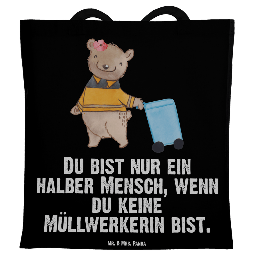 Tragetasche Müllwerkerin mit Herz - Schwarz