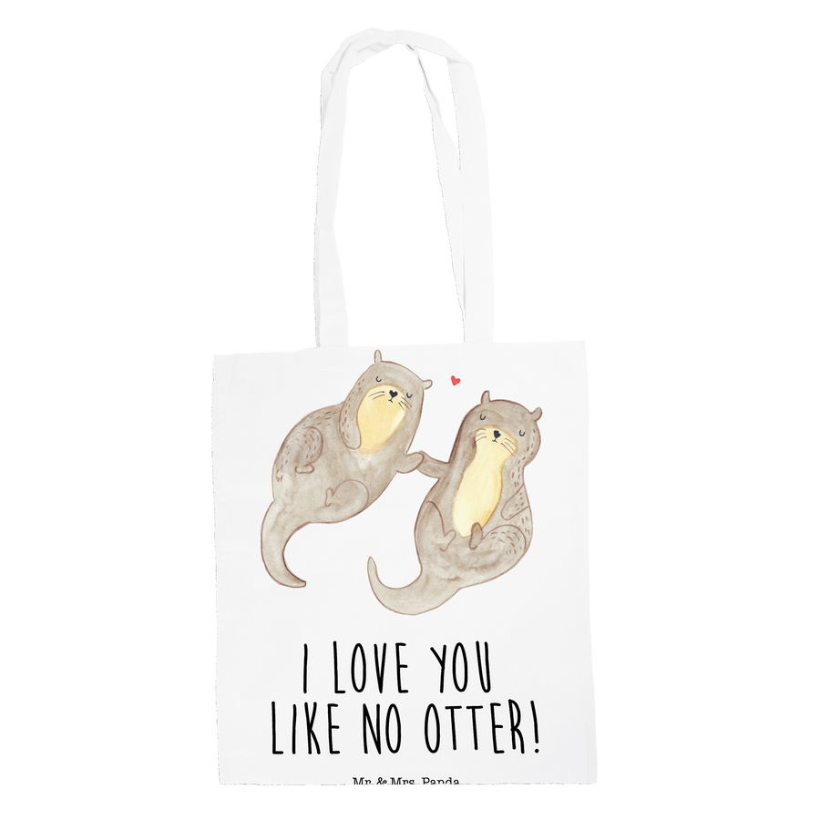 Tragetasche Otter händchenhaltend - mit Spruch - Weiß