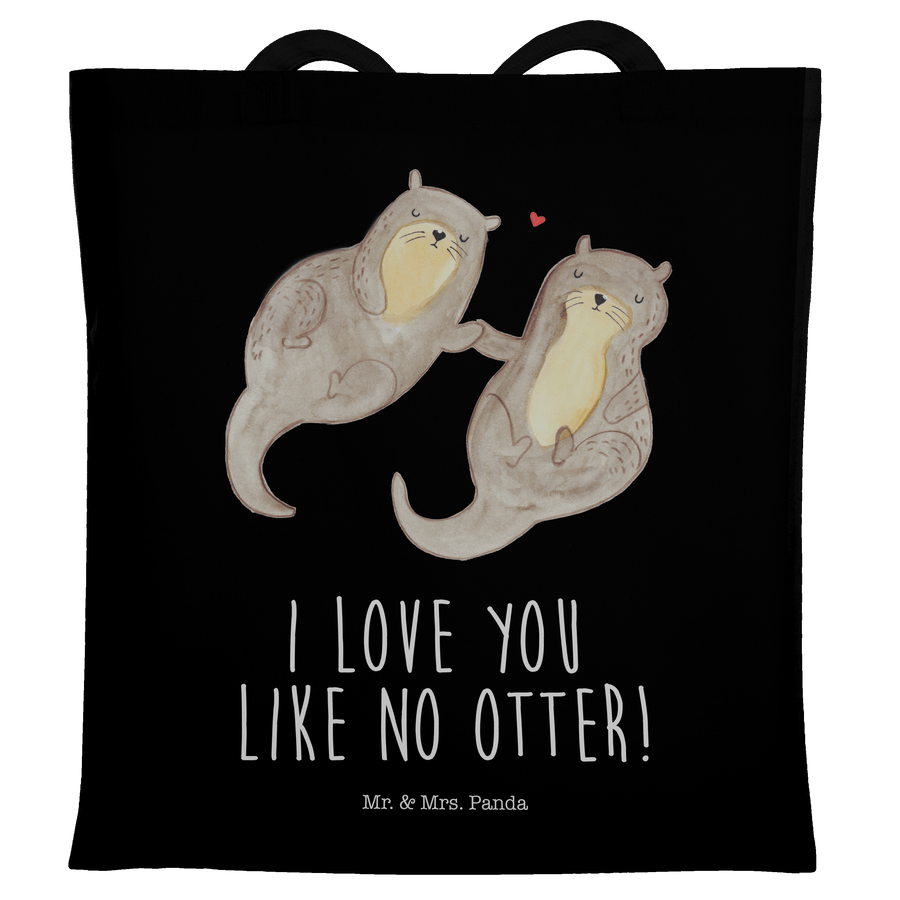 Tragetasche Otter händchenhaltend - mit Spruch - Schwarz