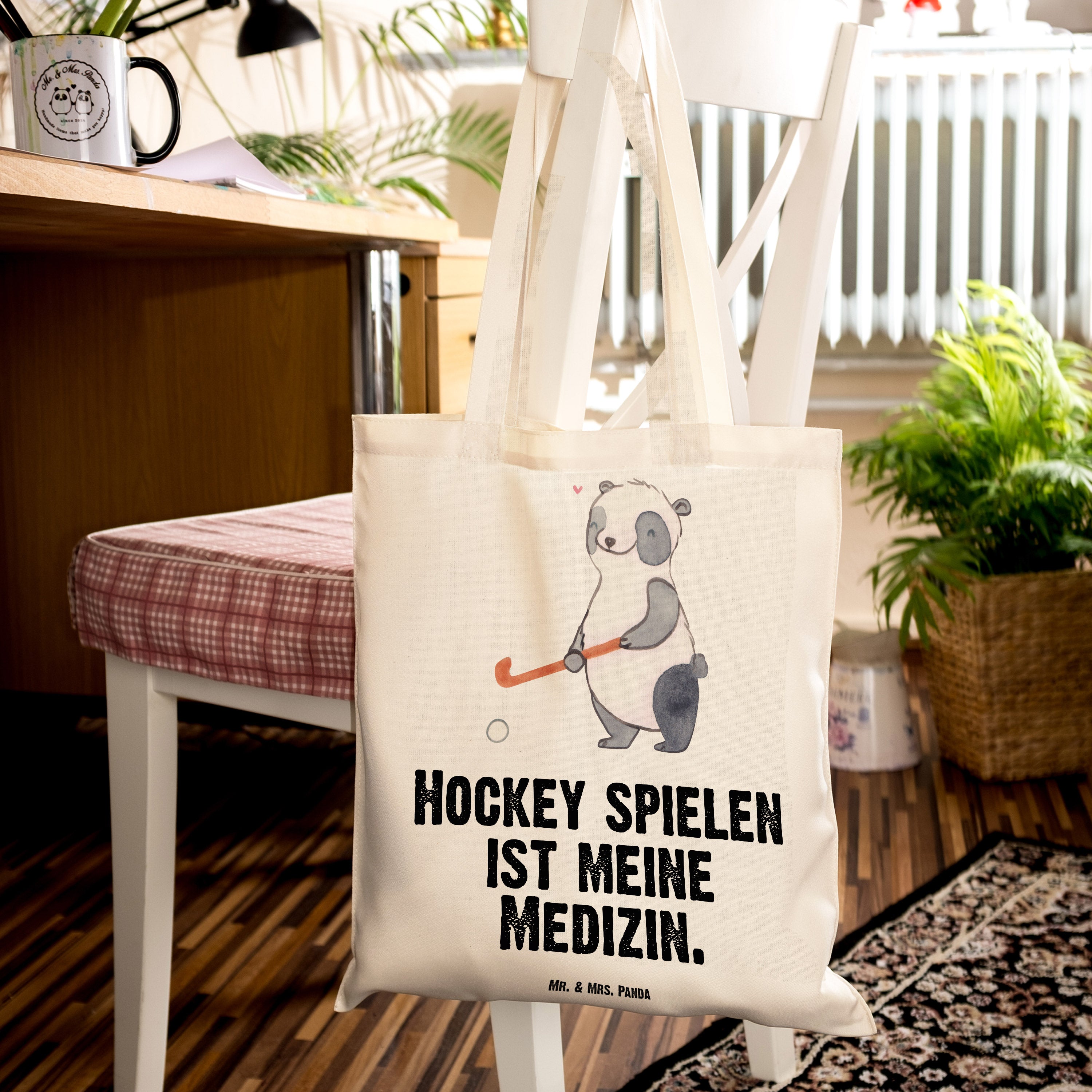 Tragetasche Panda Hockey spielen Medizin - Schwarz