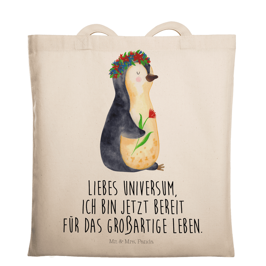 Tragetasche Pinguin Blumenkranz - mit Spruch - Transparent