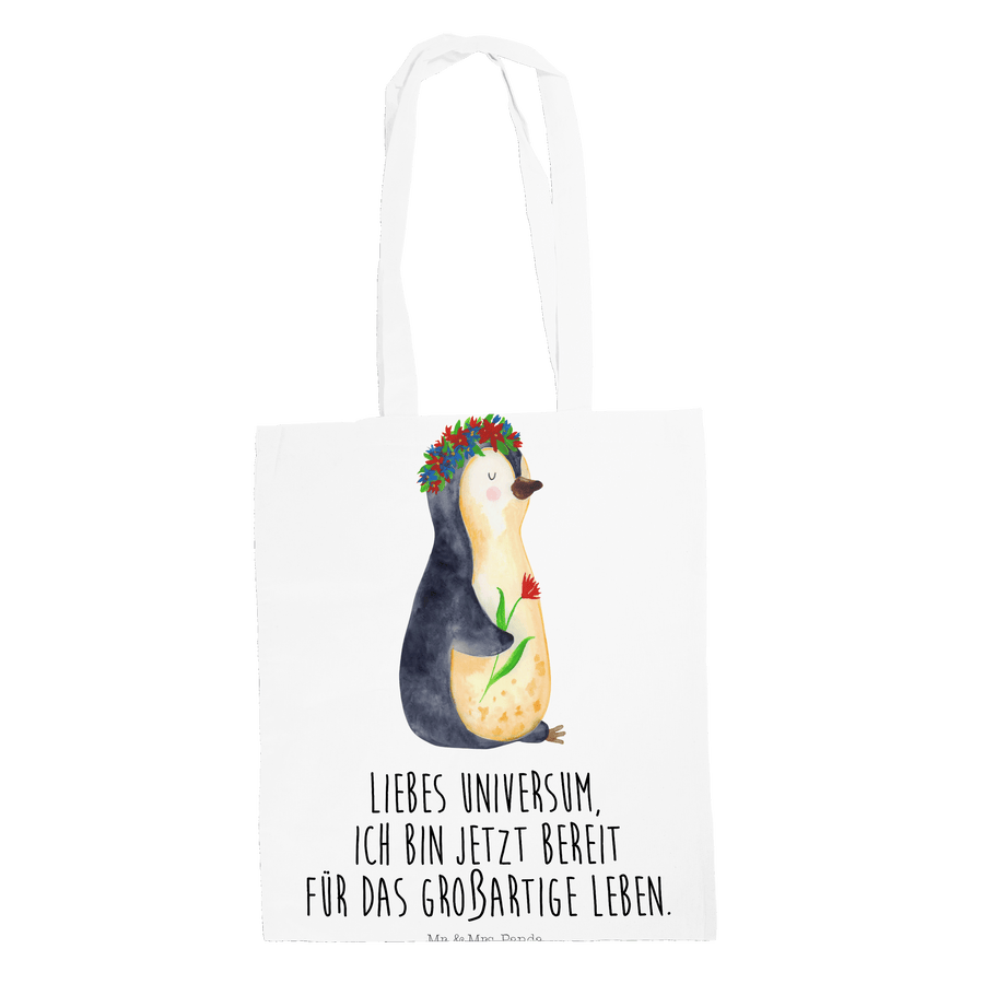 Tragetasche Pinguin Blumenkranz - mit Spruch - Weiß