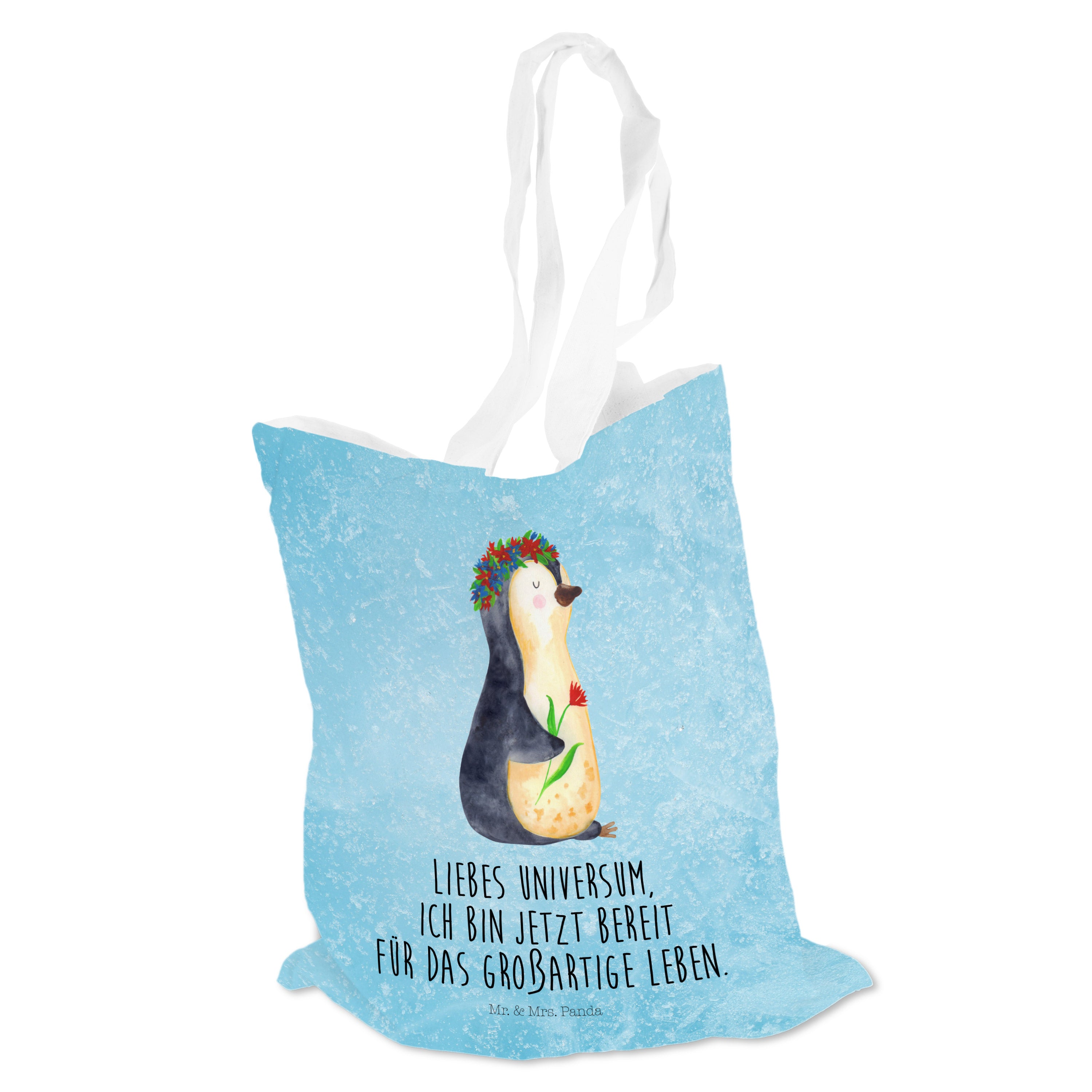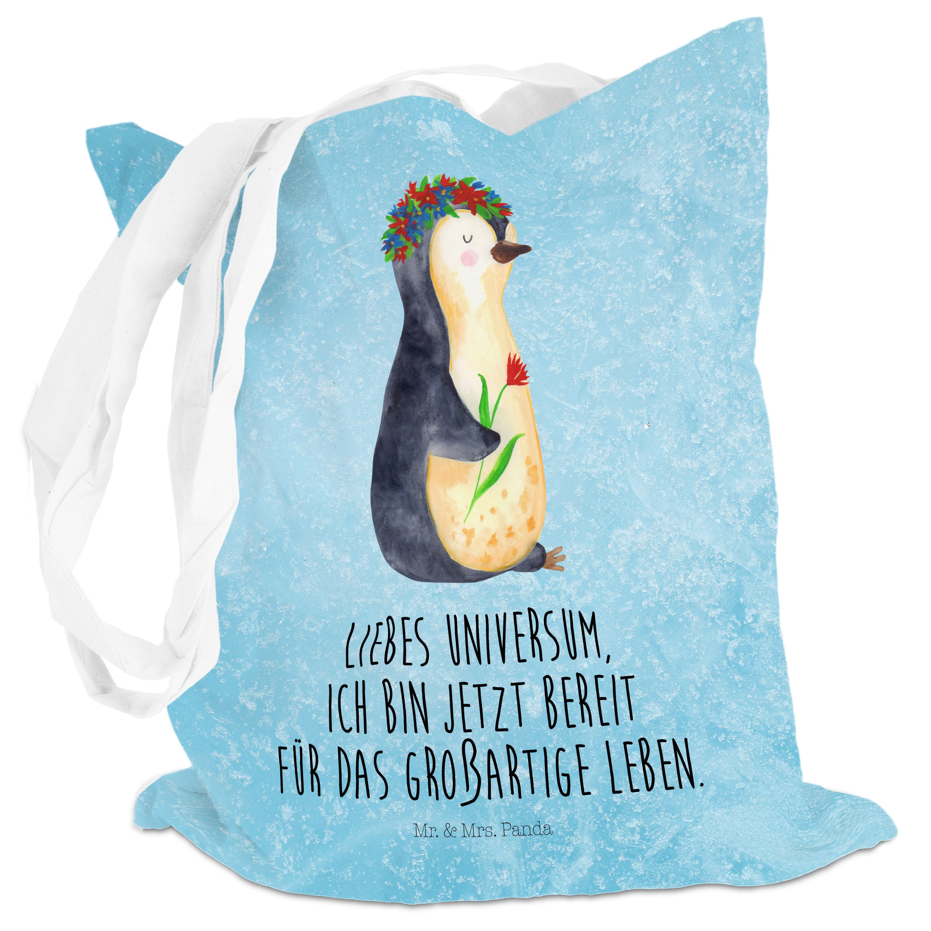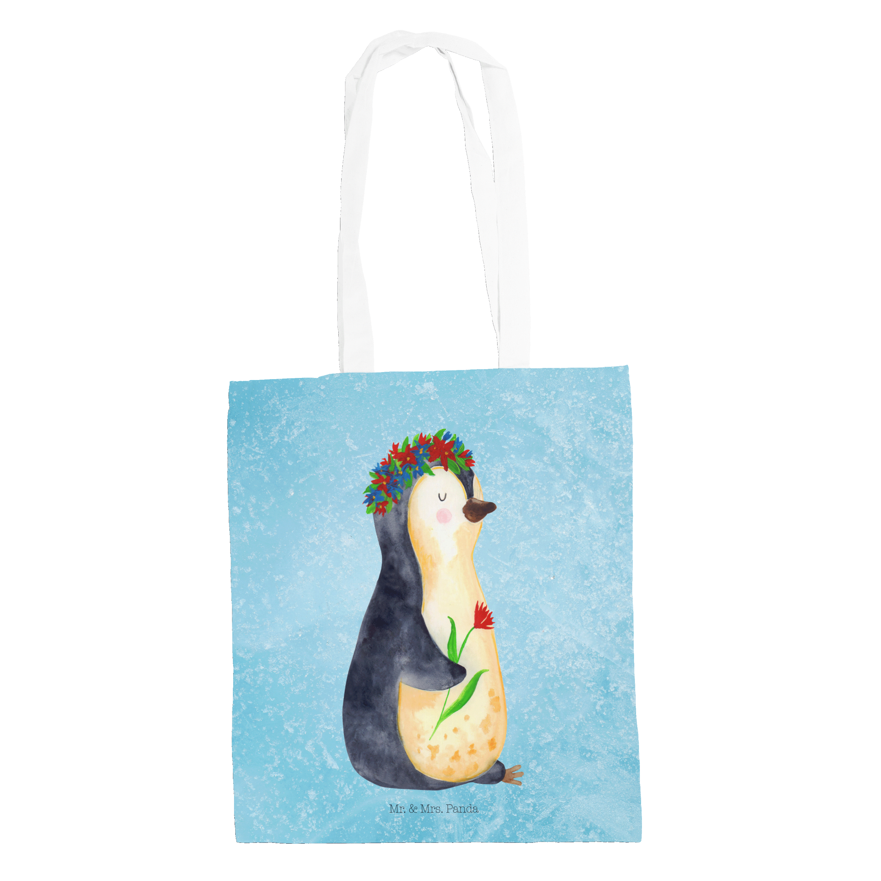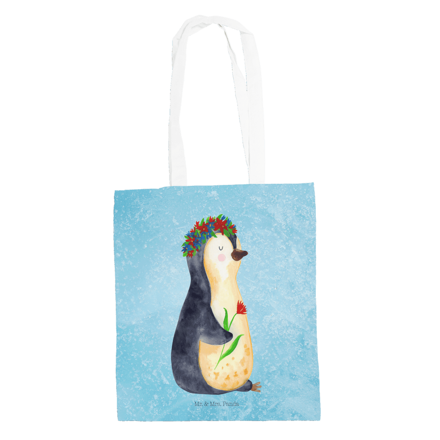 Tragetasche Pinguin Blumenkranz - ohne Spruch - Eisblau