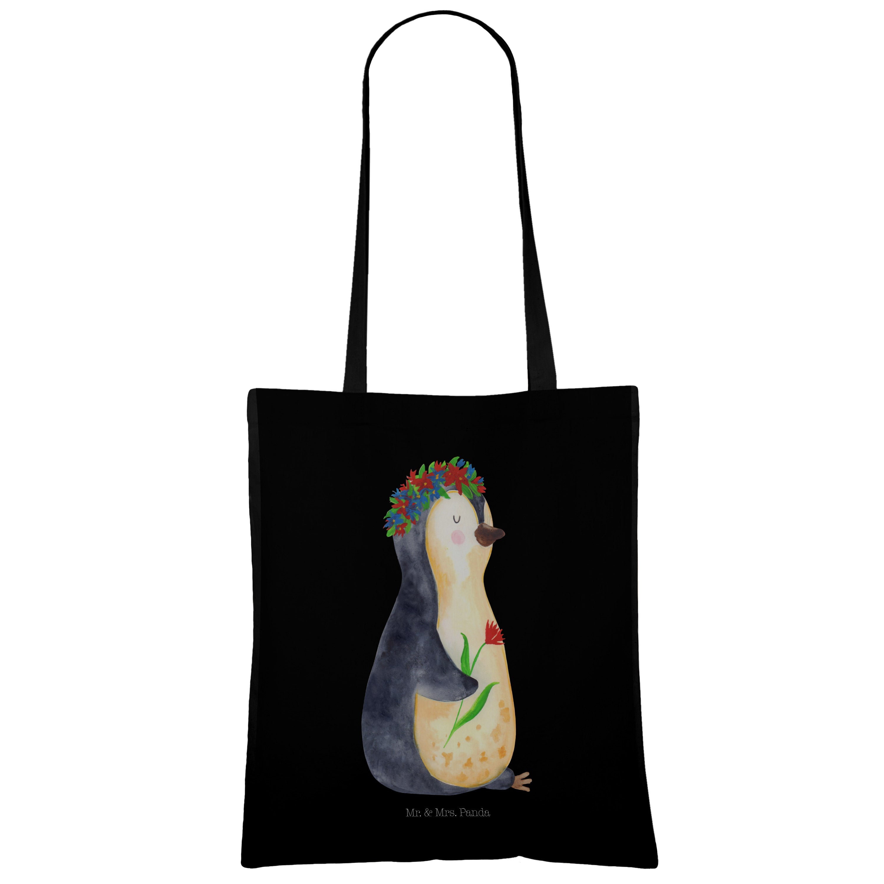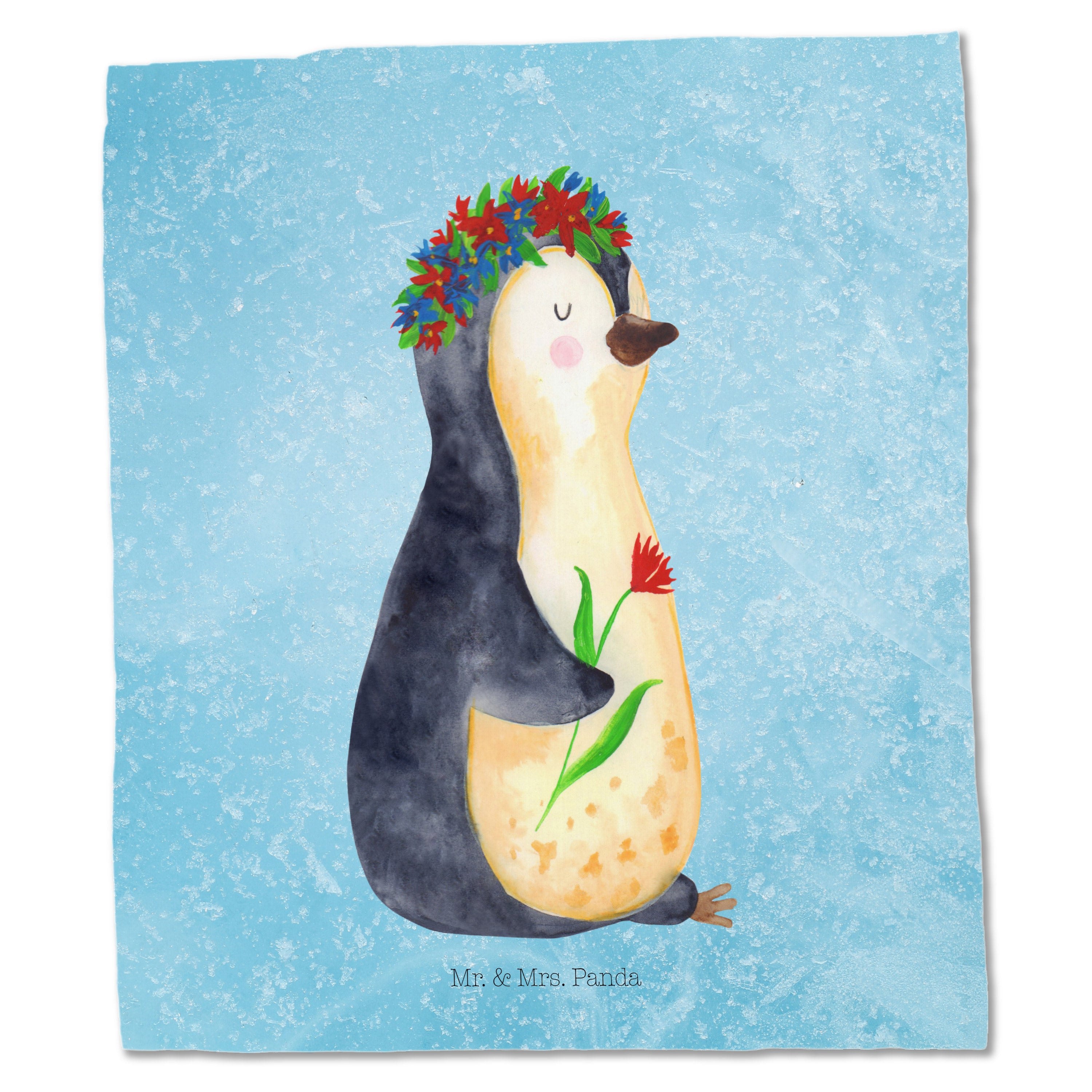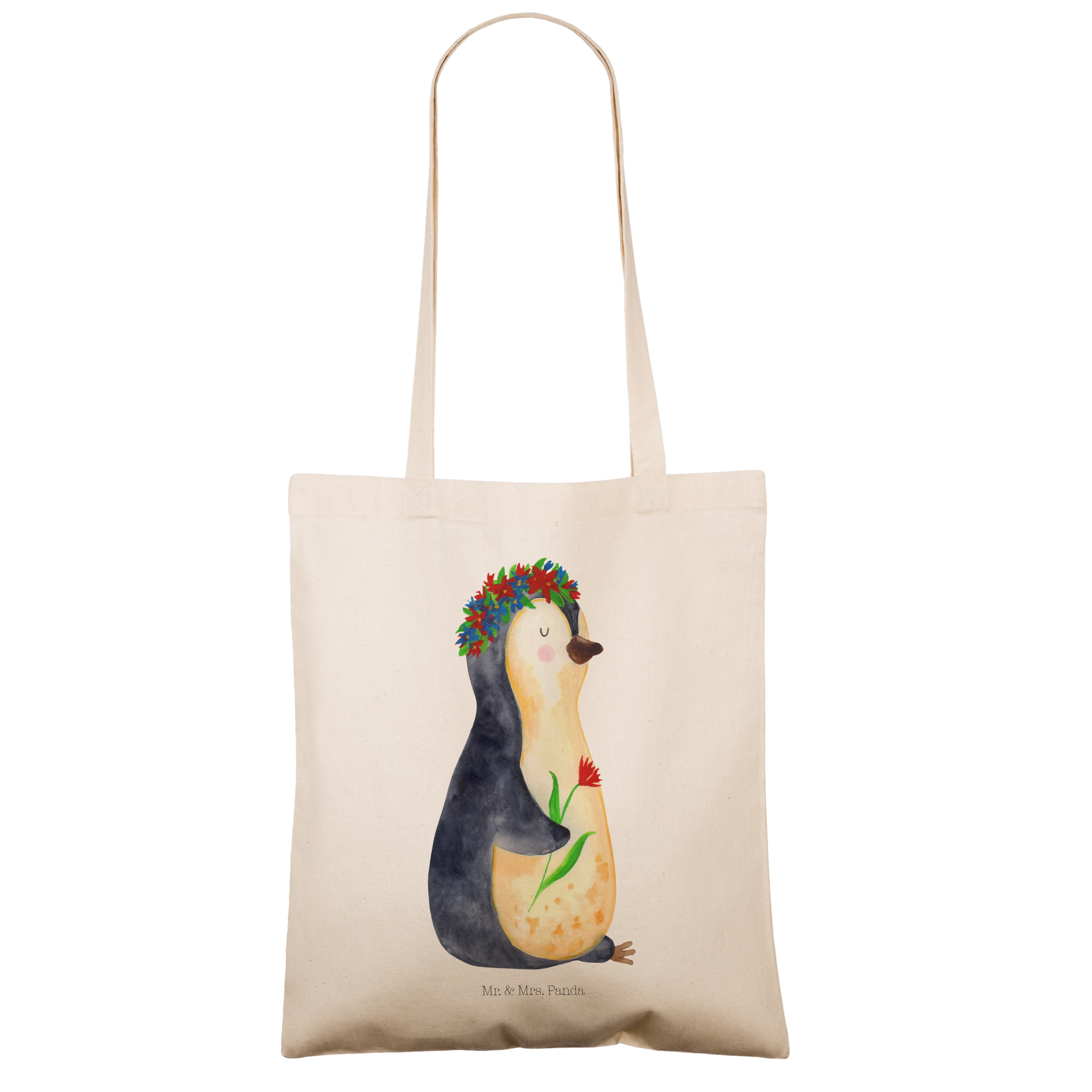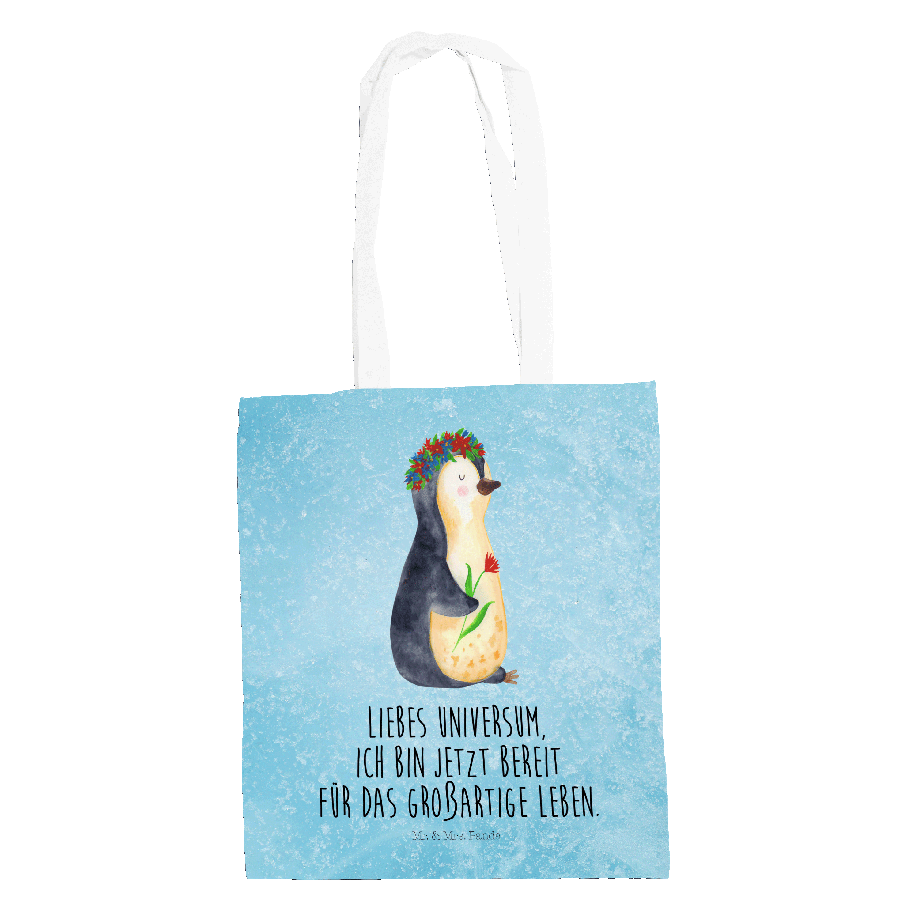Tragetasche Pinguin Blumenkranz - ohne Spruch - Eisblau