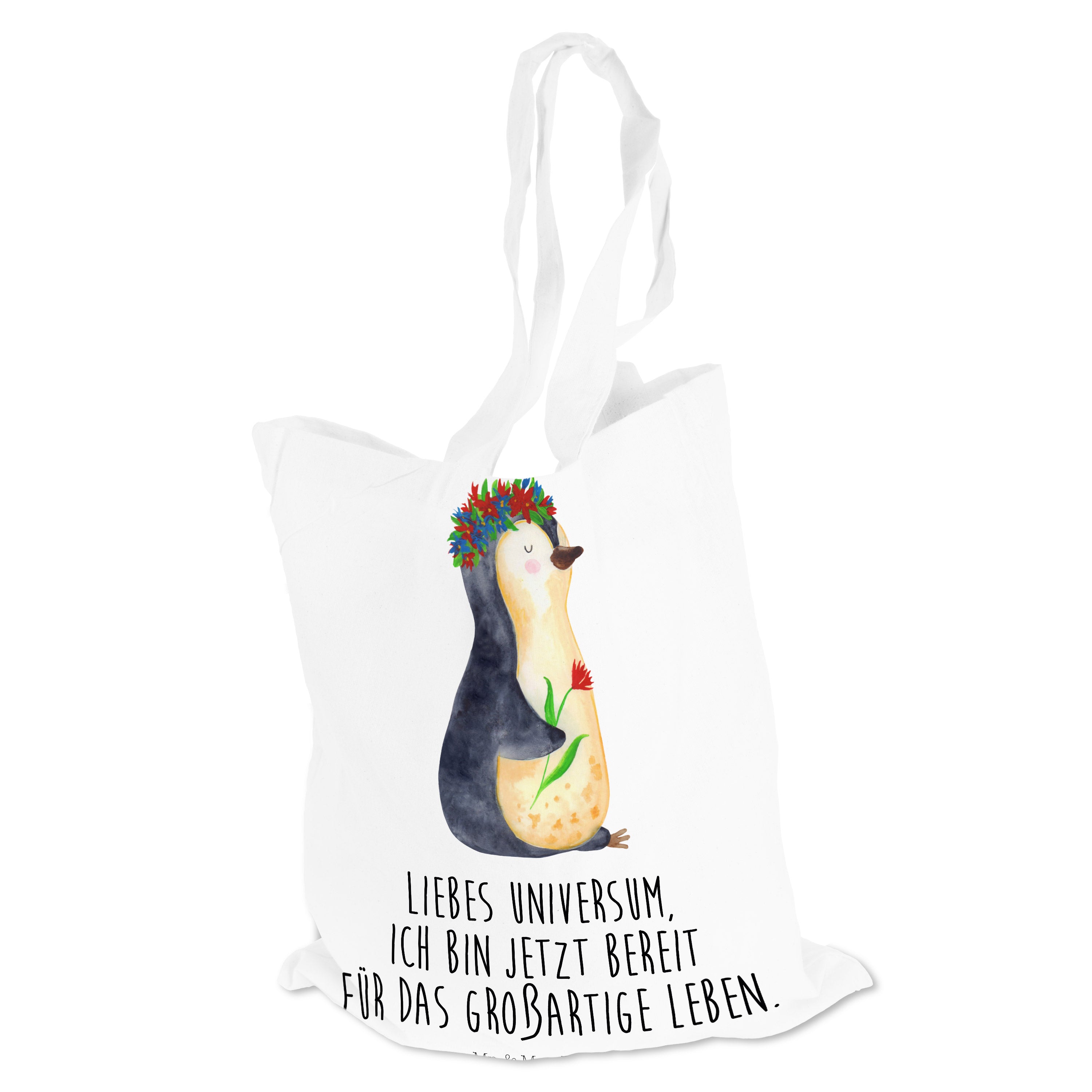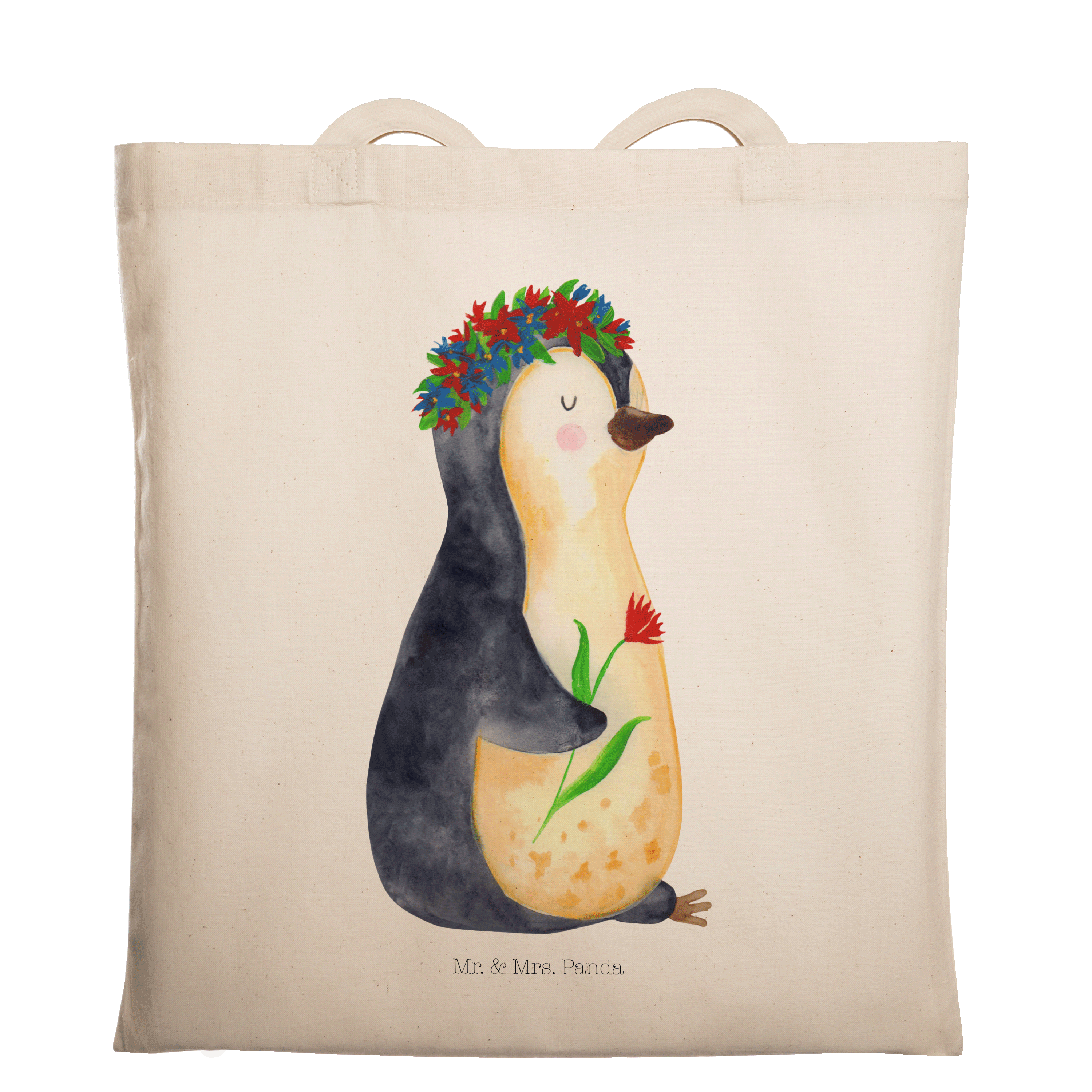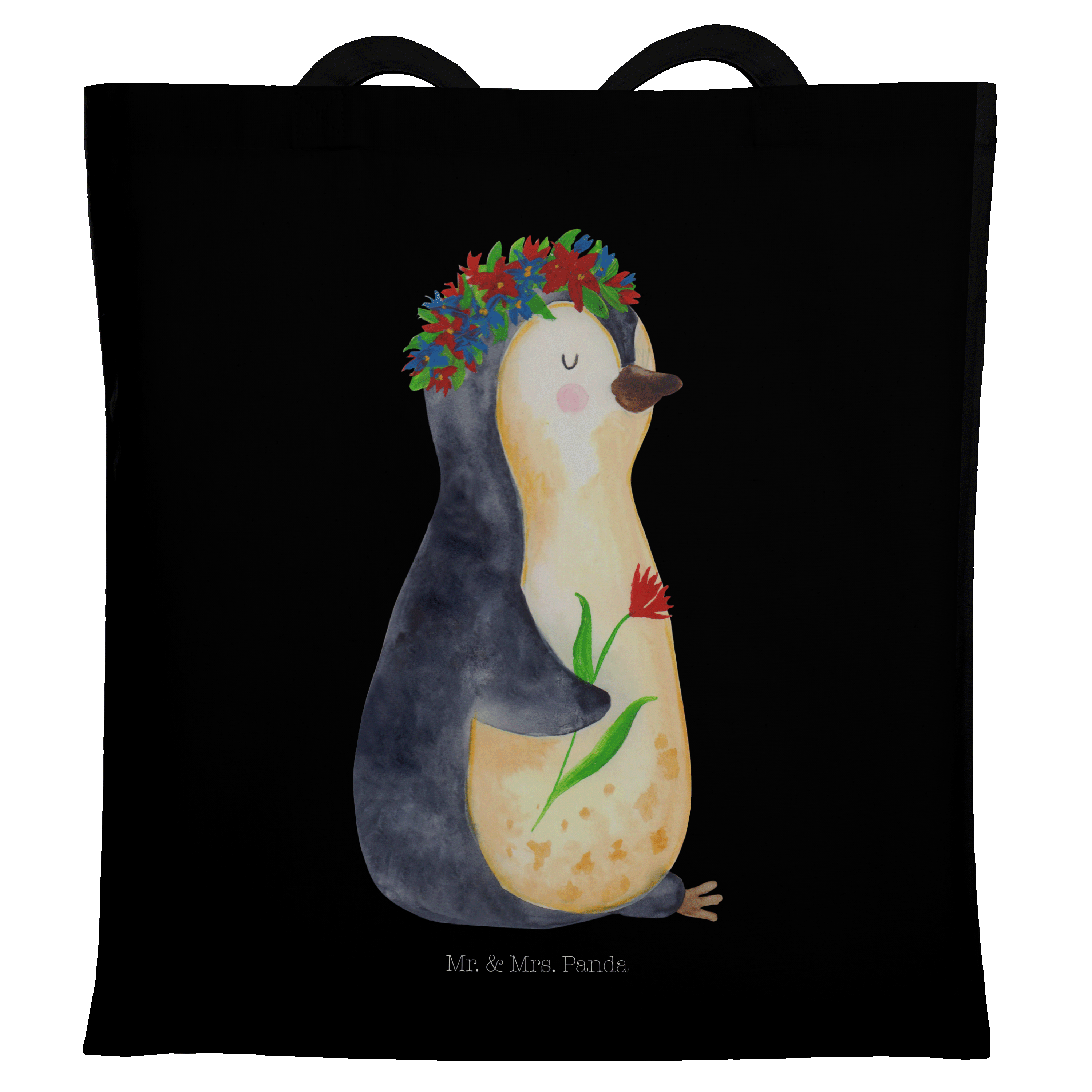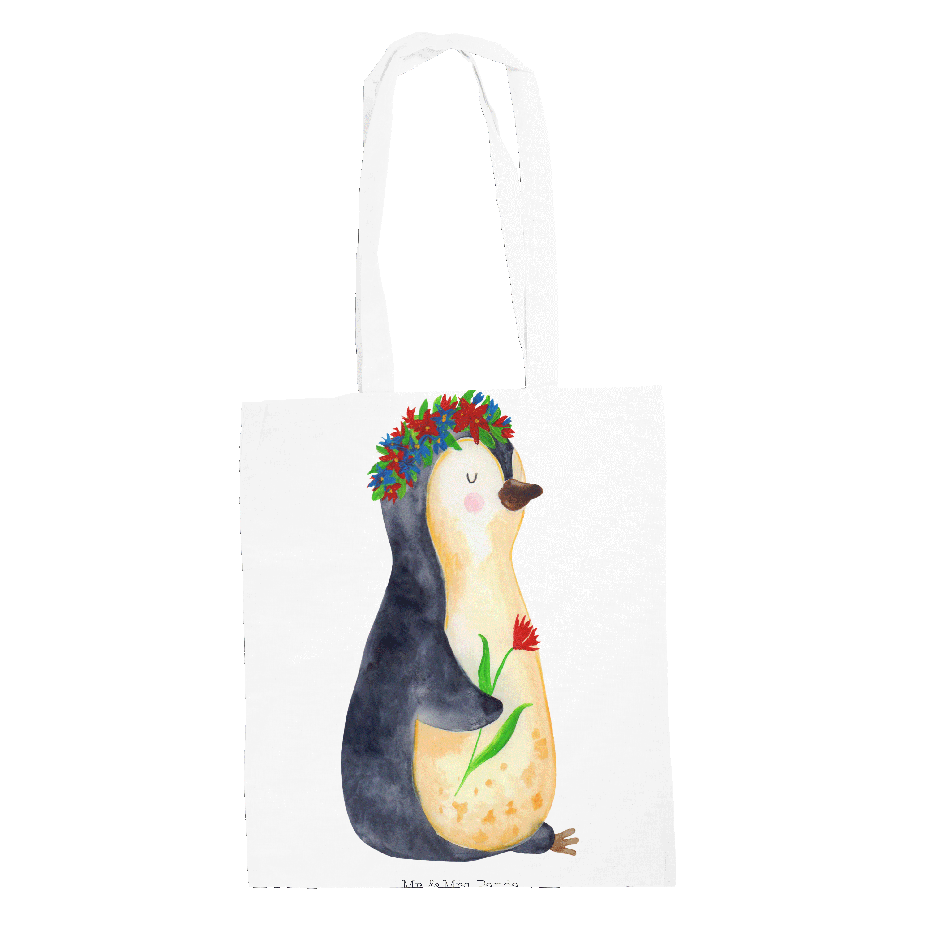 Tragetasche Pinguin Blumenkranz - ohne Spruch - Eisblau