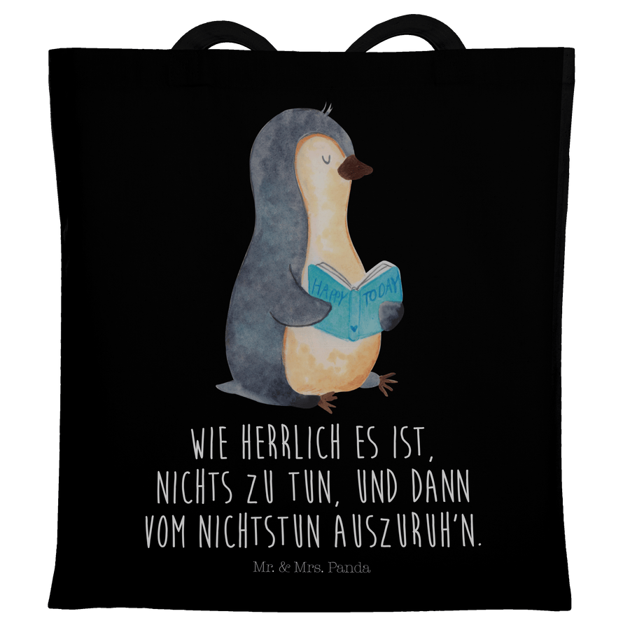 Tragetasche Pinguin Buch - mit Spruch - Schwarz