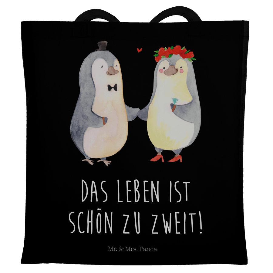 Tragetasche Pinguin Heirat - mit Spruch - Schwarz