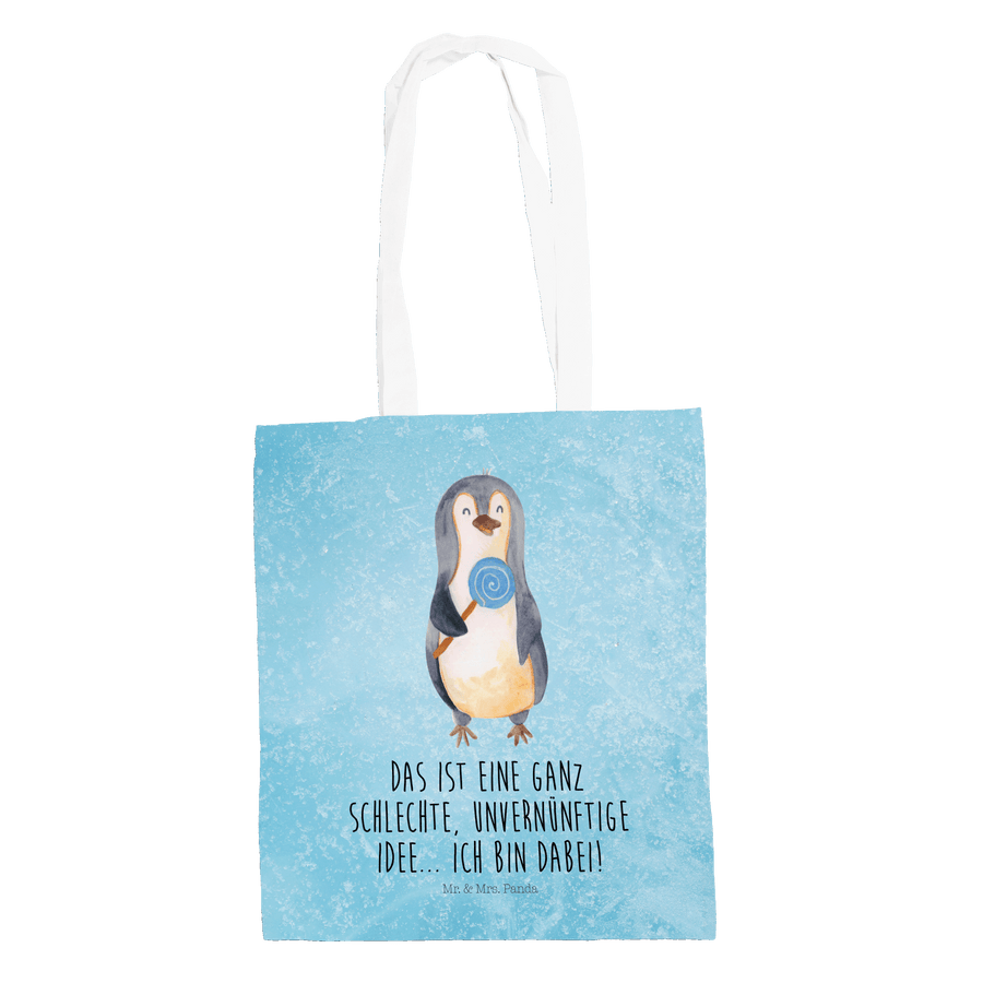 Tragetasche Pinguin Lolli - mit Spruch - Eisblau