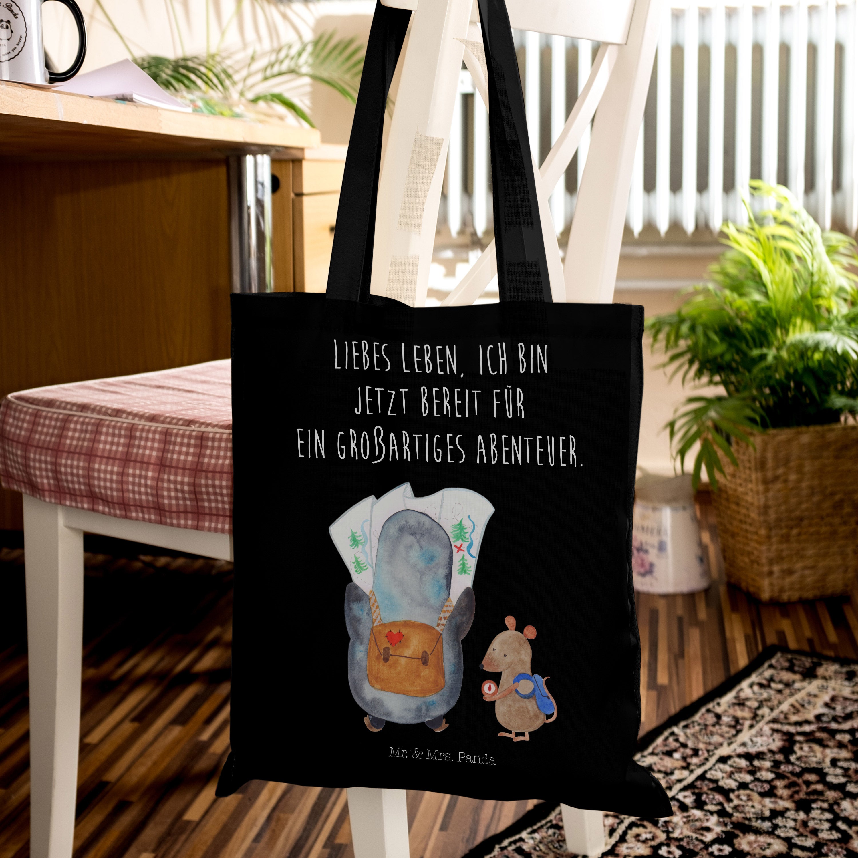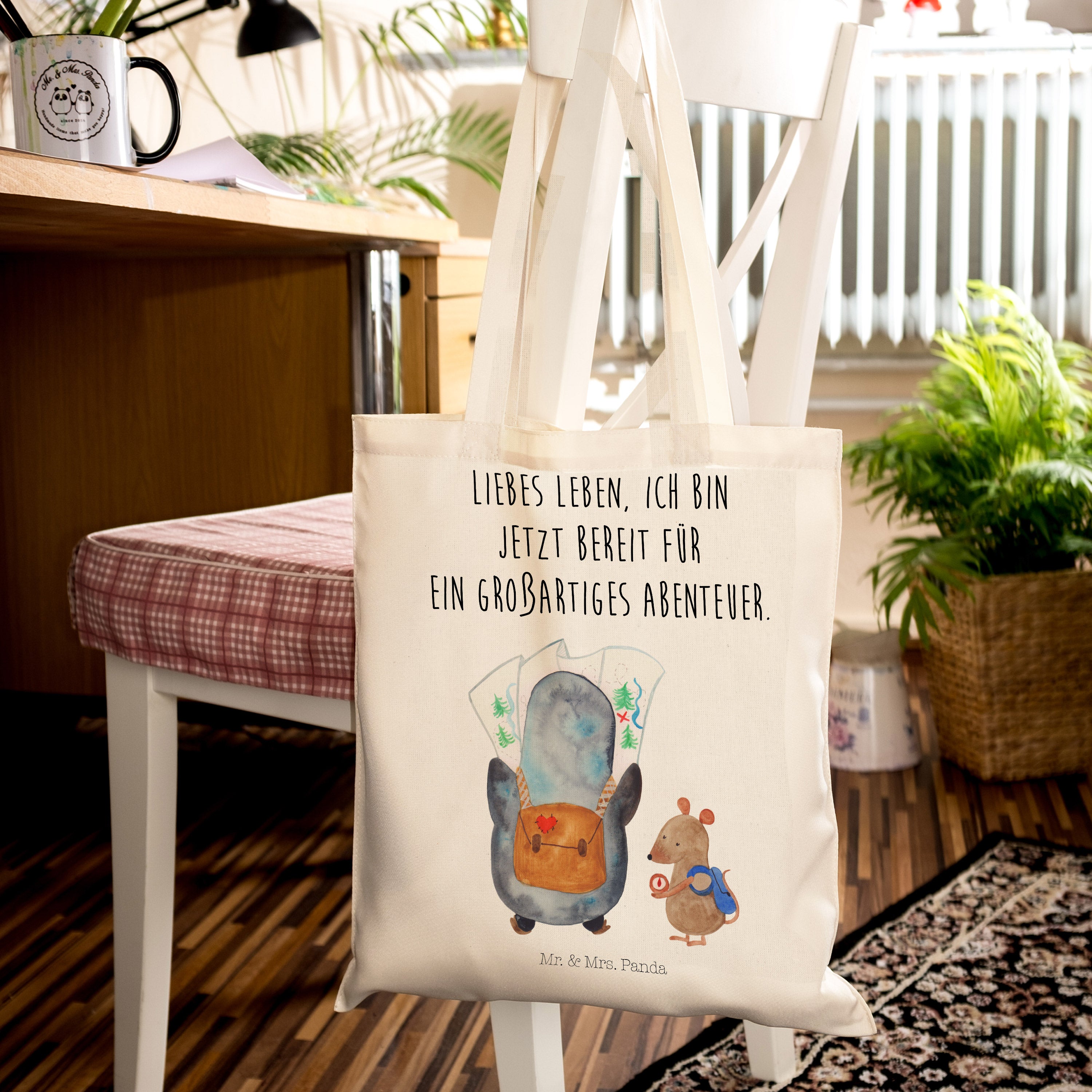 Tragetasche Pinguin & Maus Wanderer - mit Spruch - Eisblau