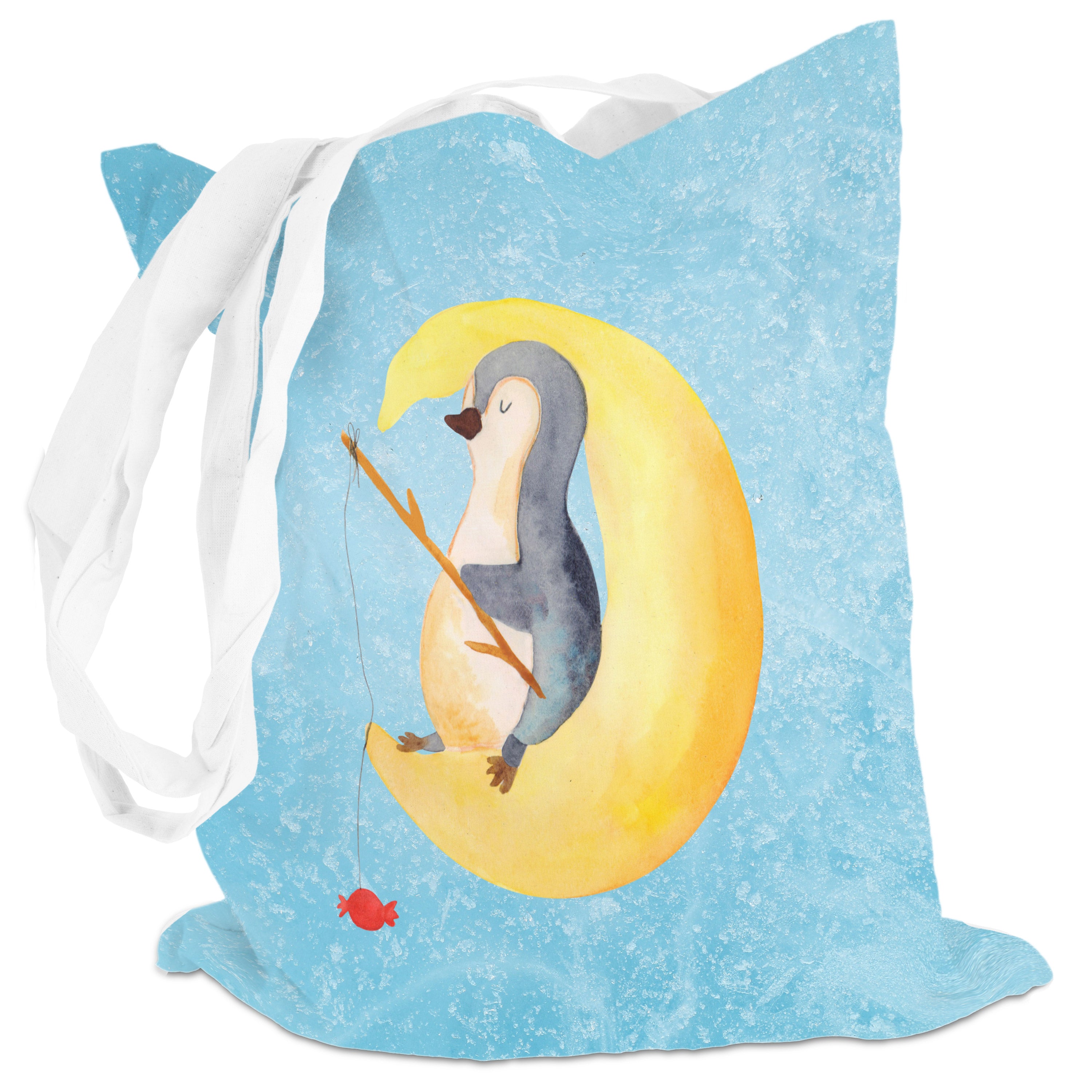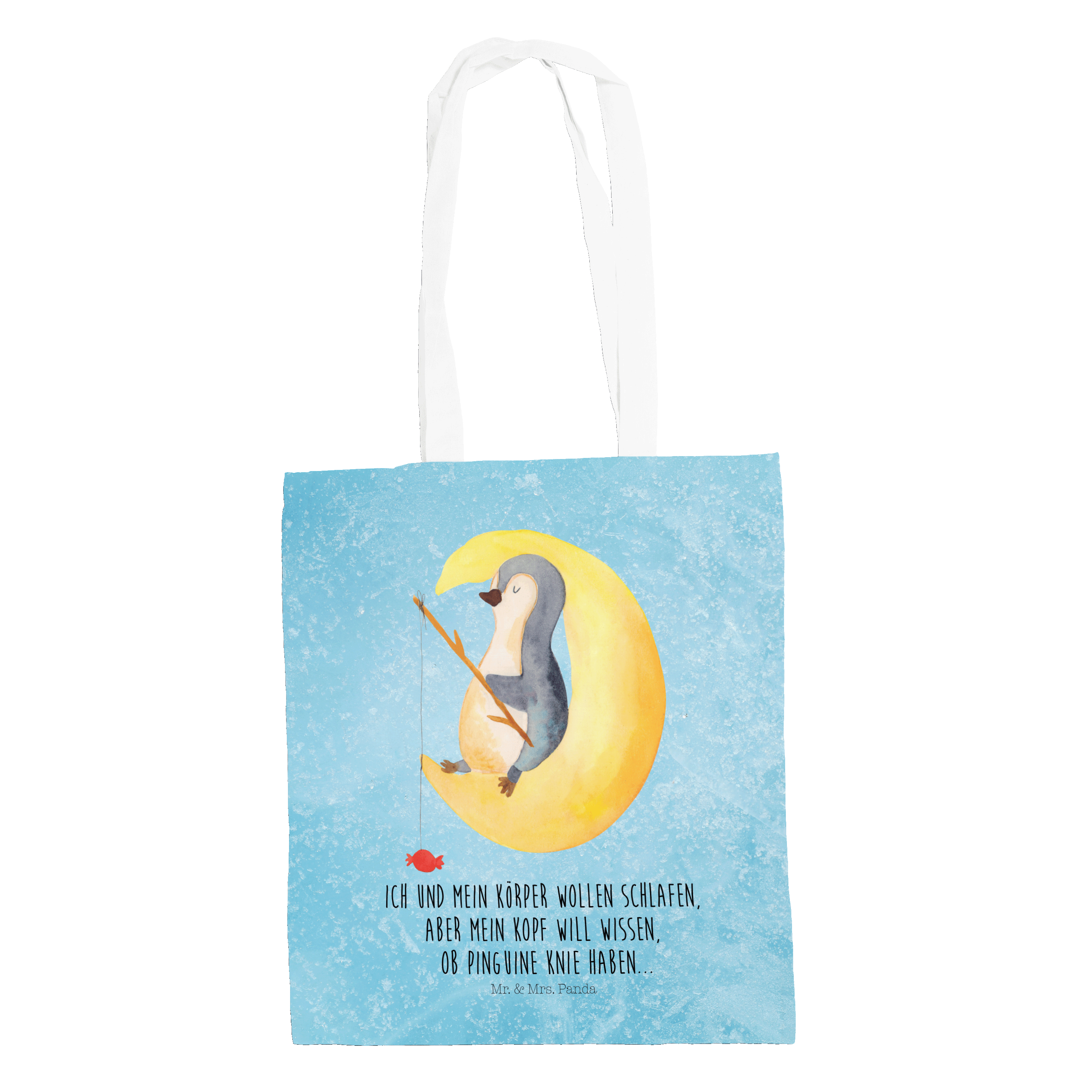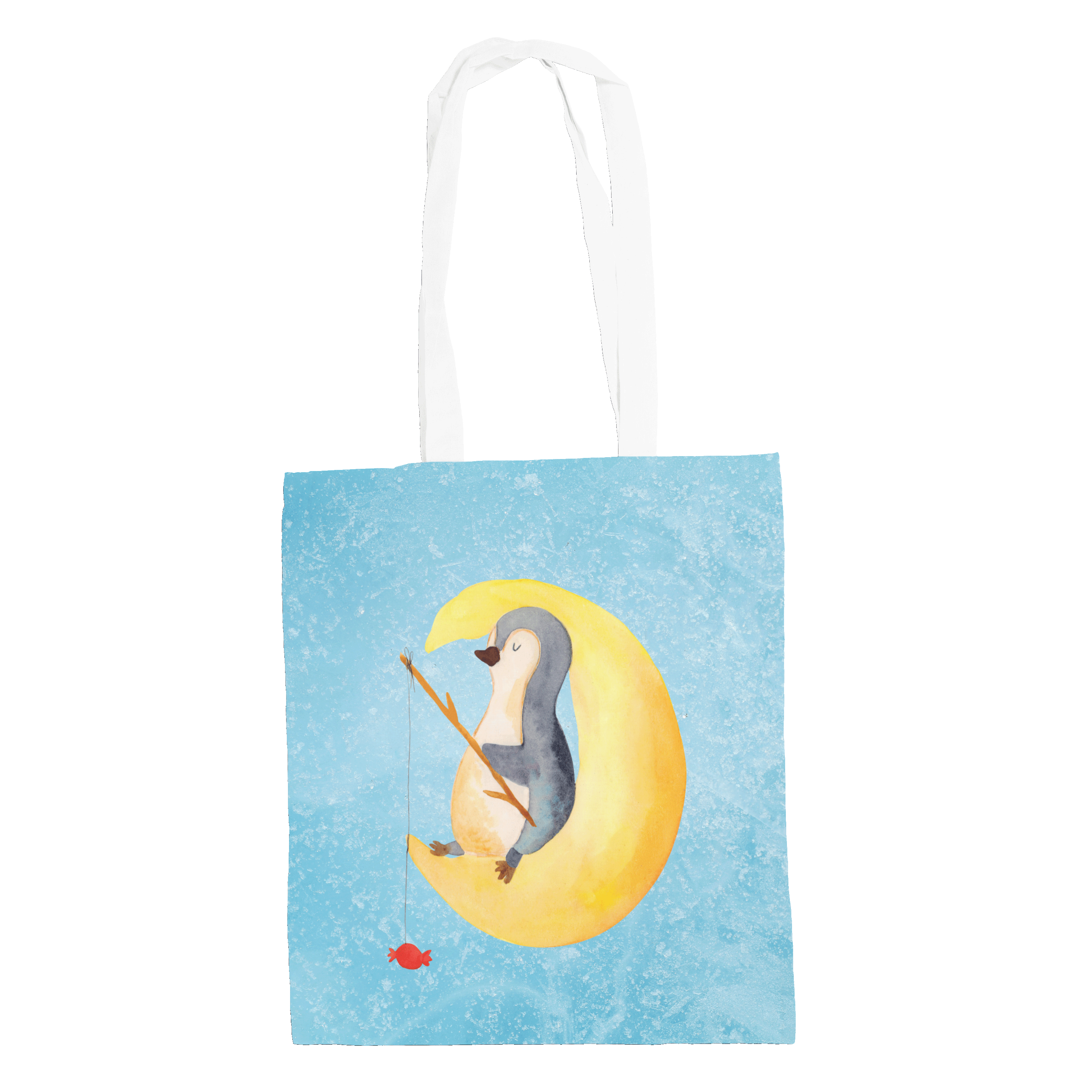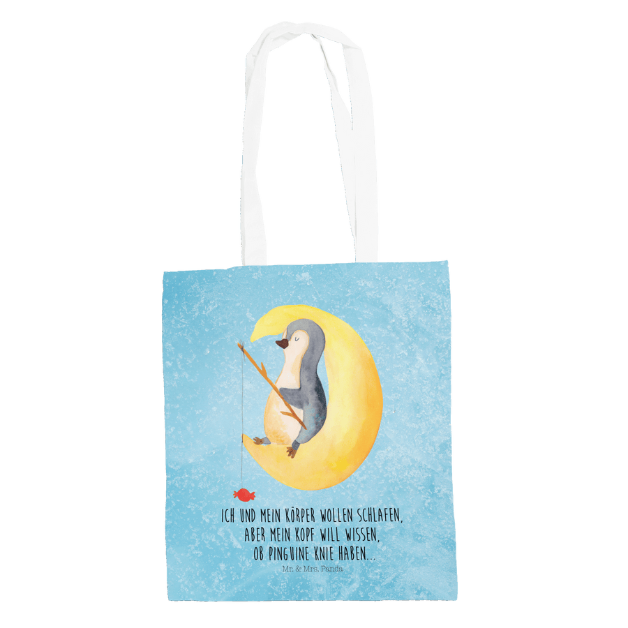 Tragetasche Pinguin Mond - mit Spruch - Eisblau