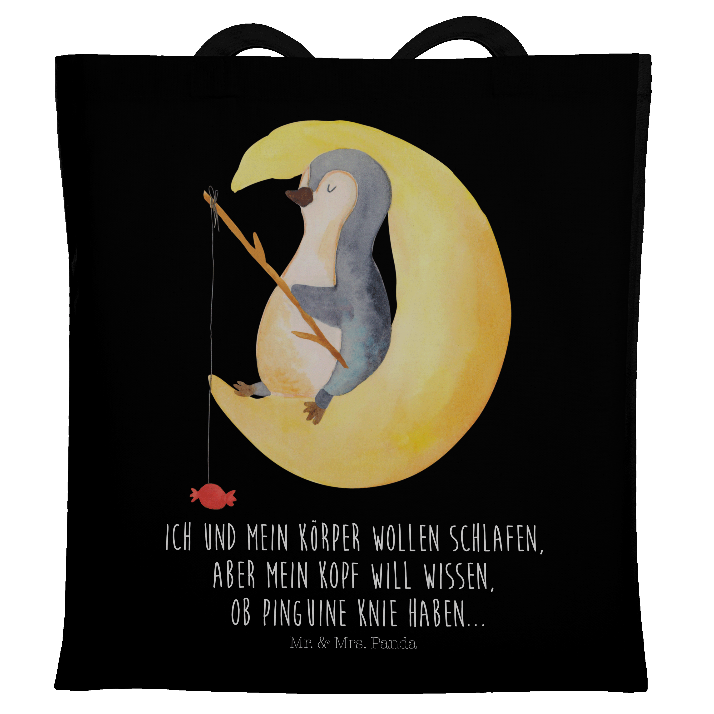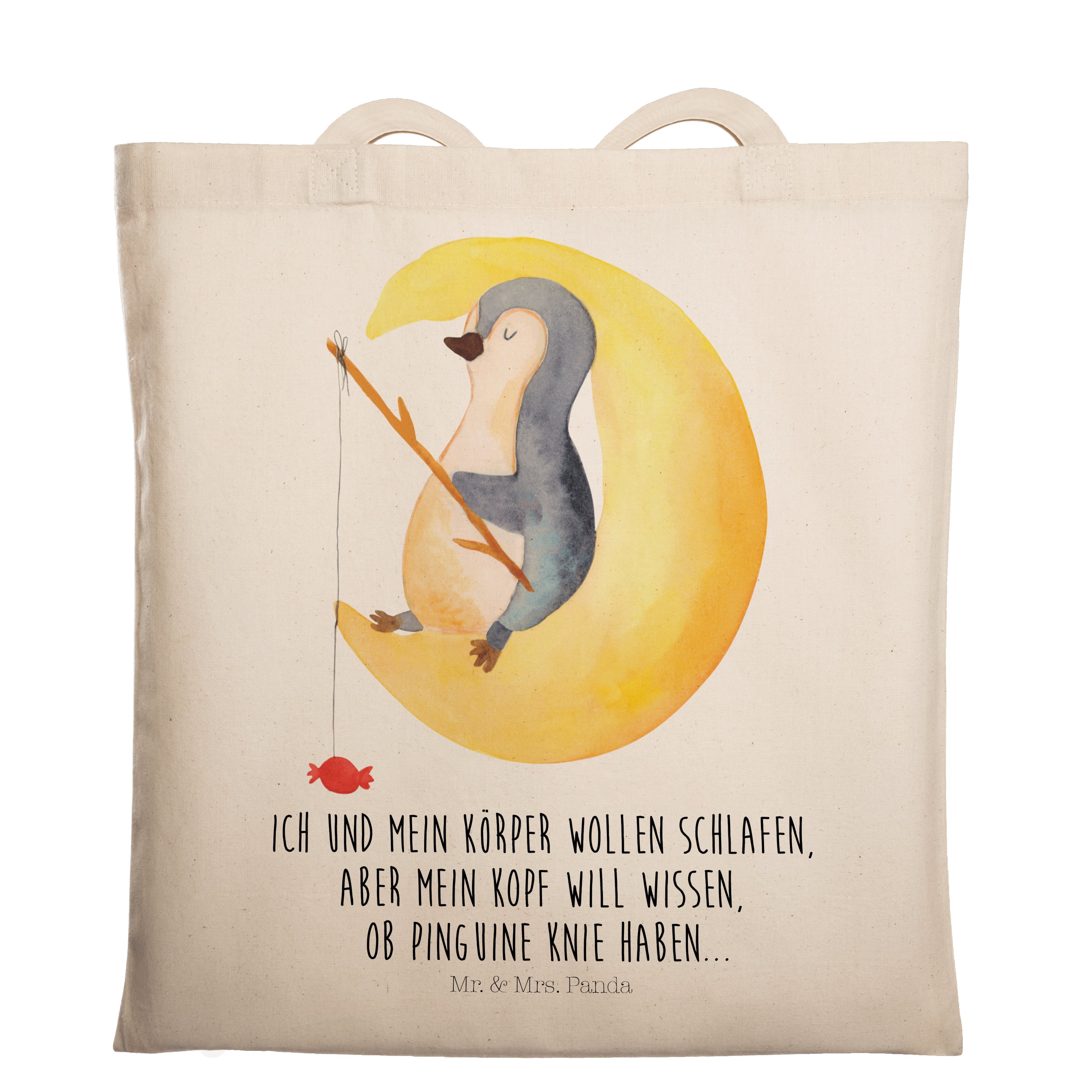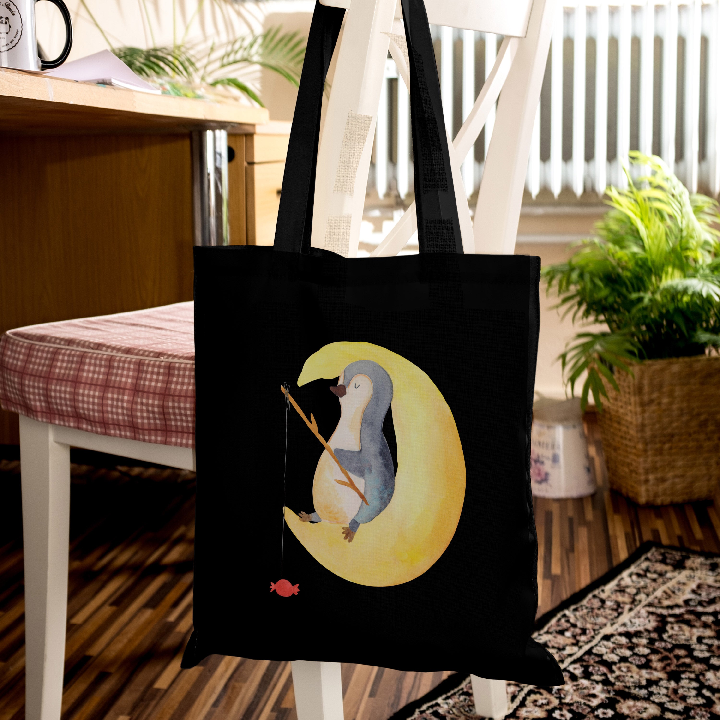 Tragetasche Pinguin Mond - mit Spruch - Eisblau