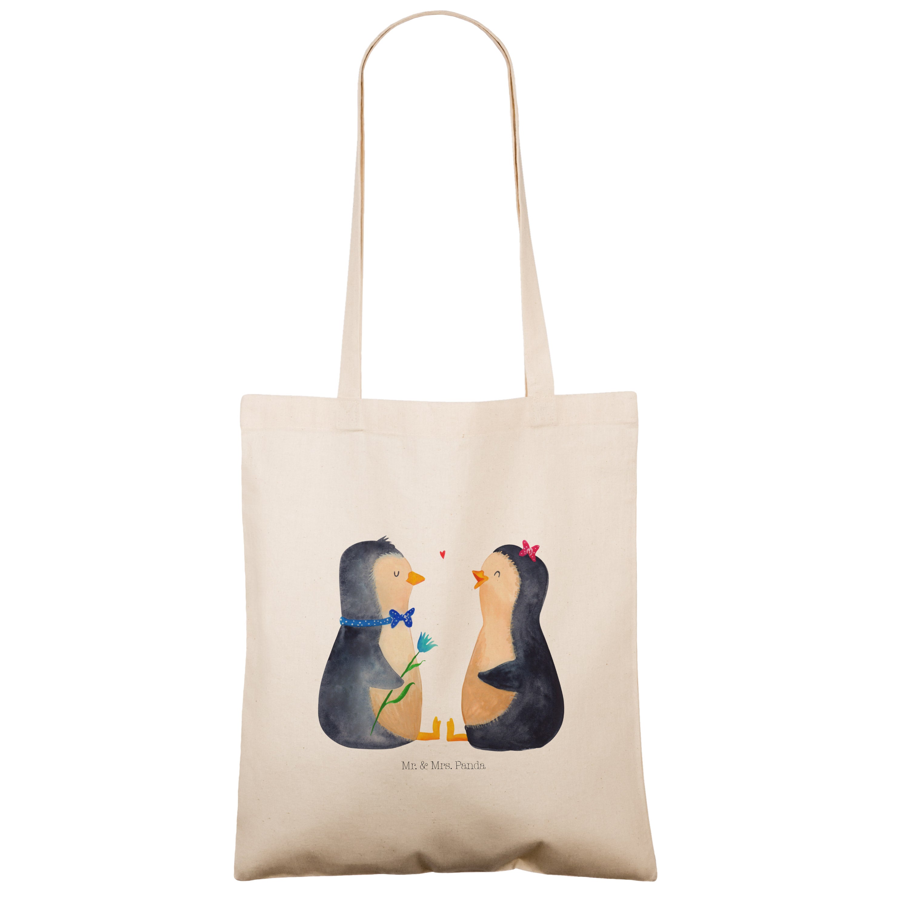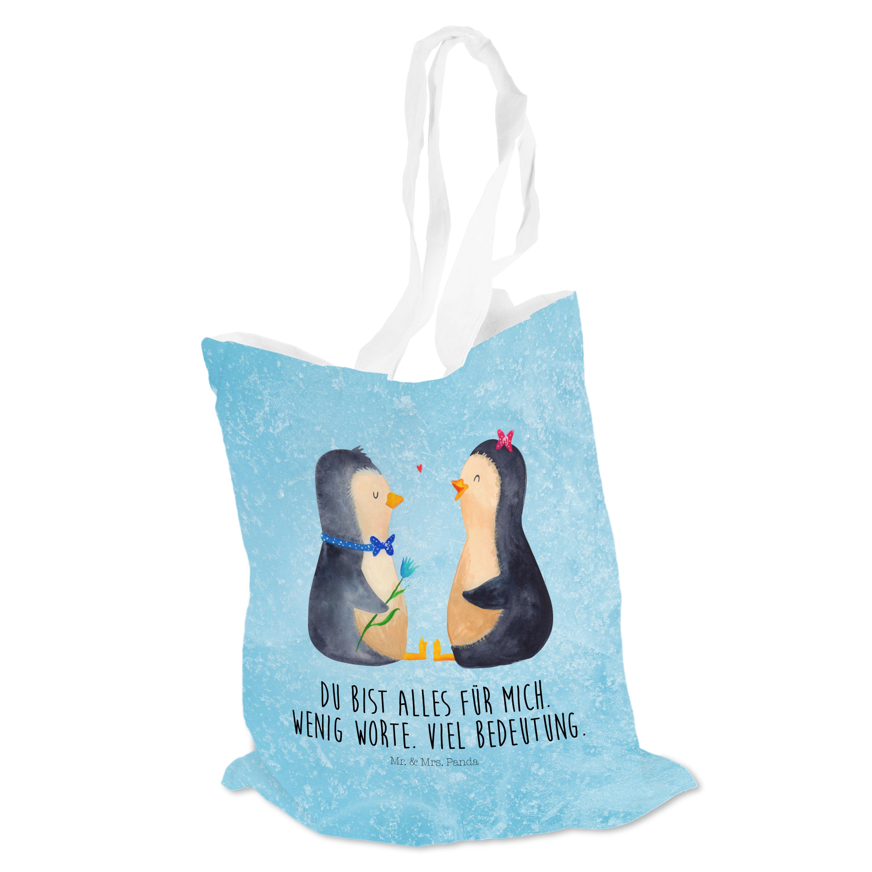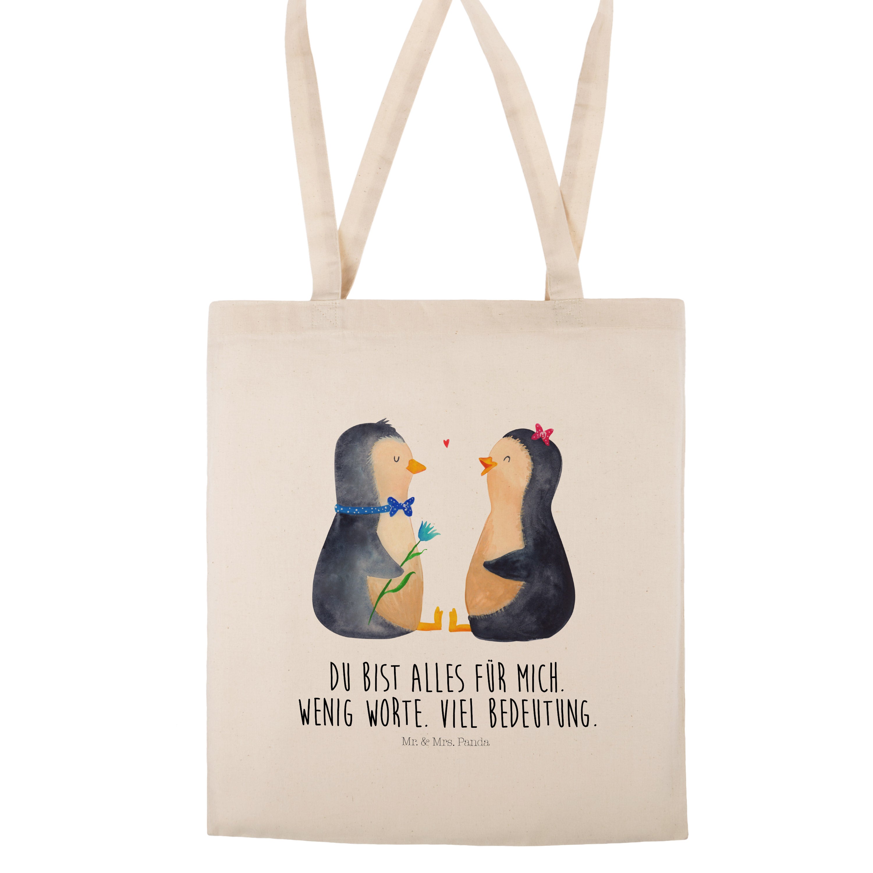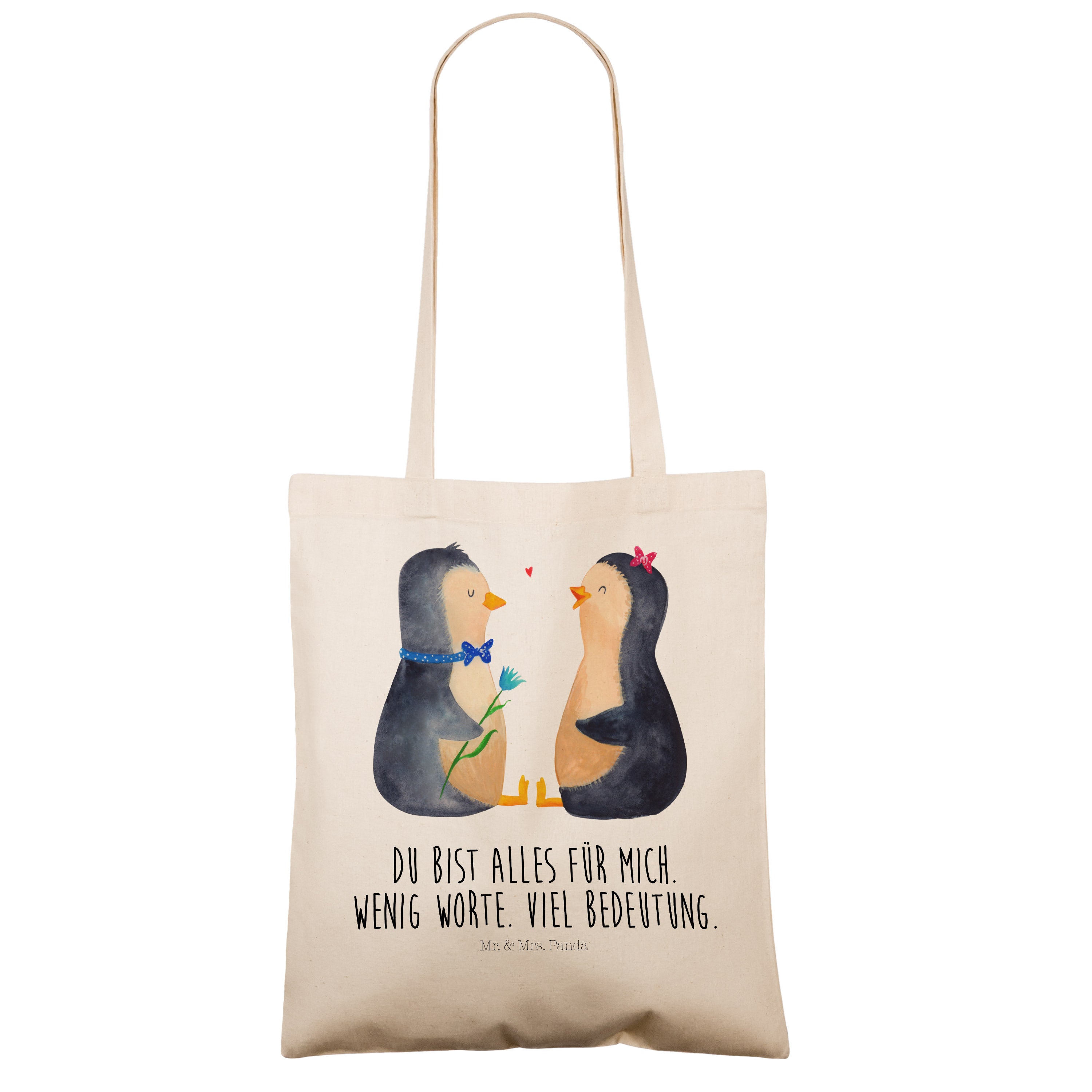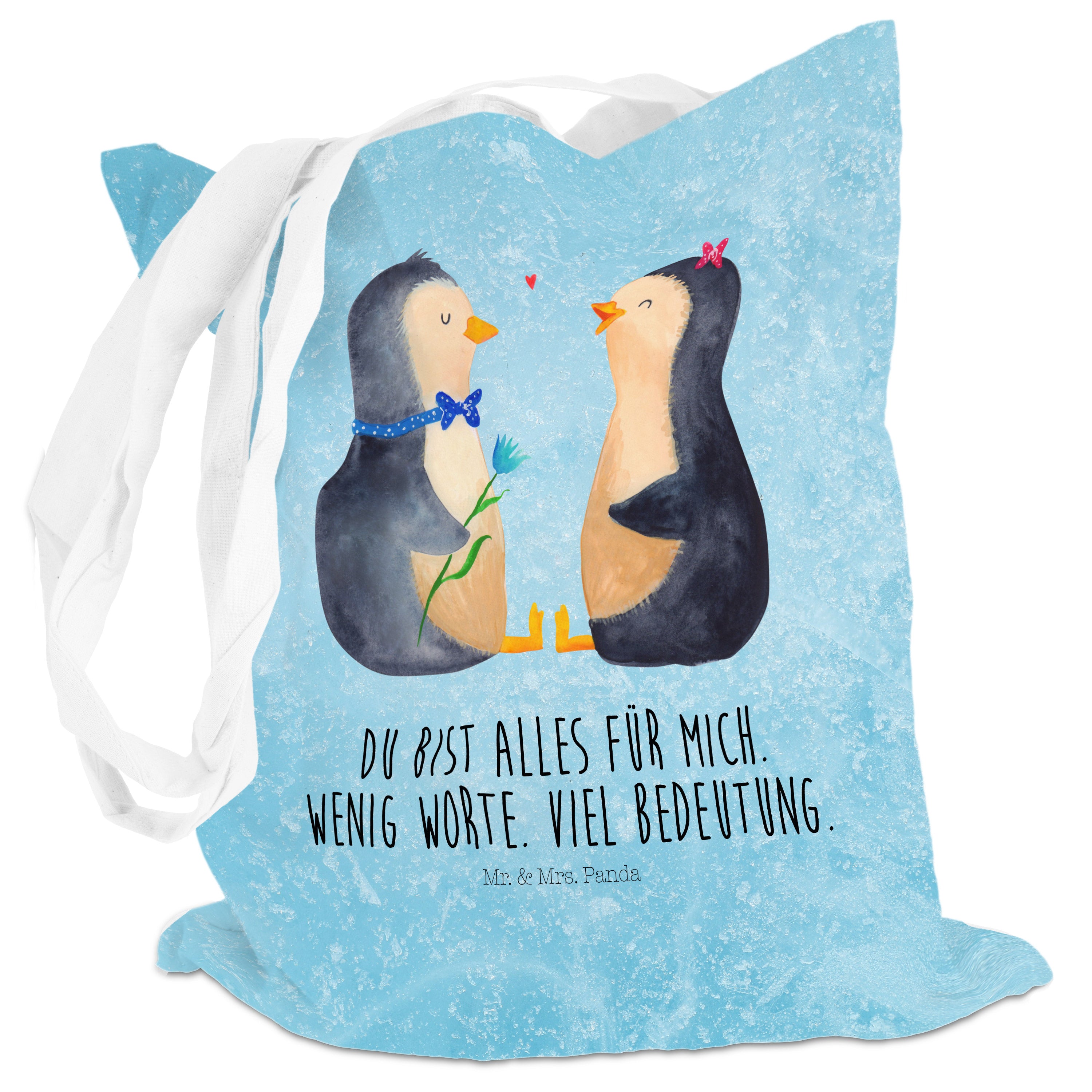 Das "Pinguin Pärchen" von Mr. & Mrs. Panda ist das perfekte Motiv für Verliebte. Die beiden süßen Pinguine sitzen sich gegenüber und schauen sich liebevoll an. Der Junge und das Mädchen sind nicht nur optisch ein tolles Paar und bringen jeden zum Schmunzeln. Dieses Motiv versprüht pure Lebensfreude und ist ein wundervolles Geschenk für den Partner oder die Partnerin.
