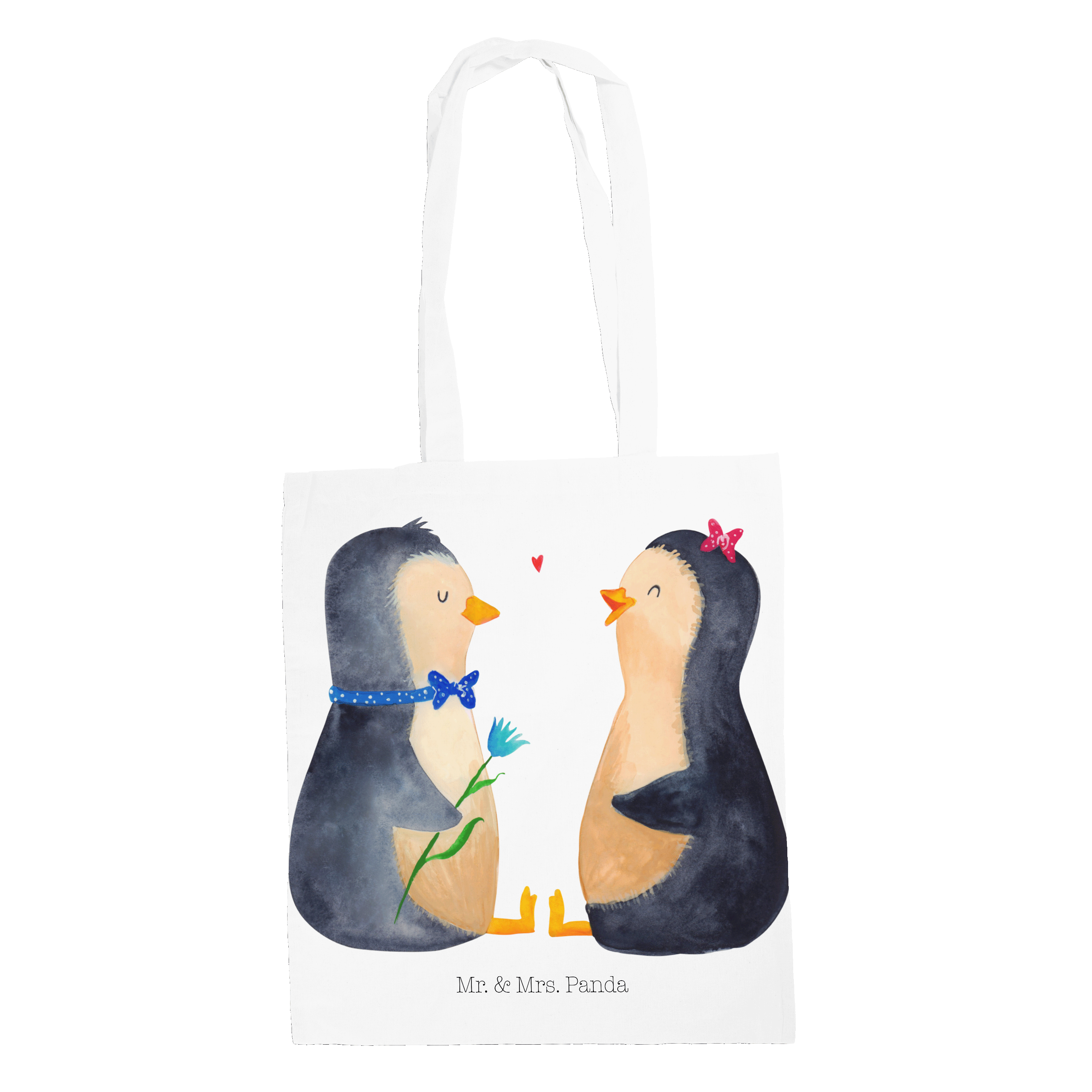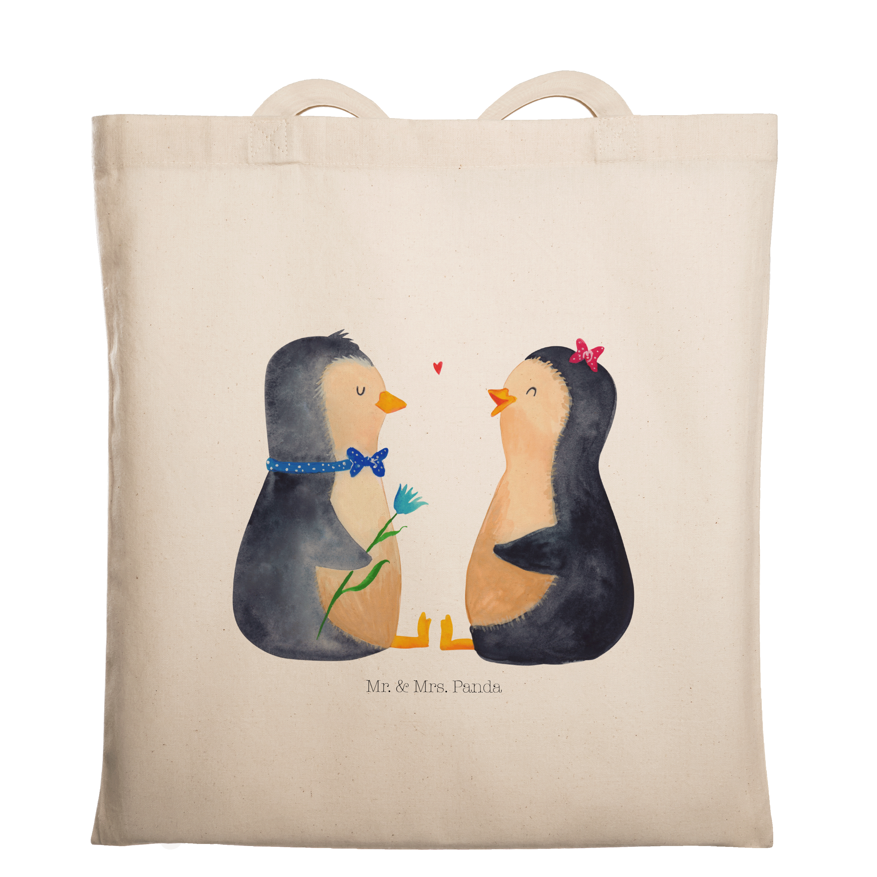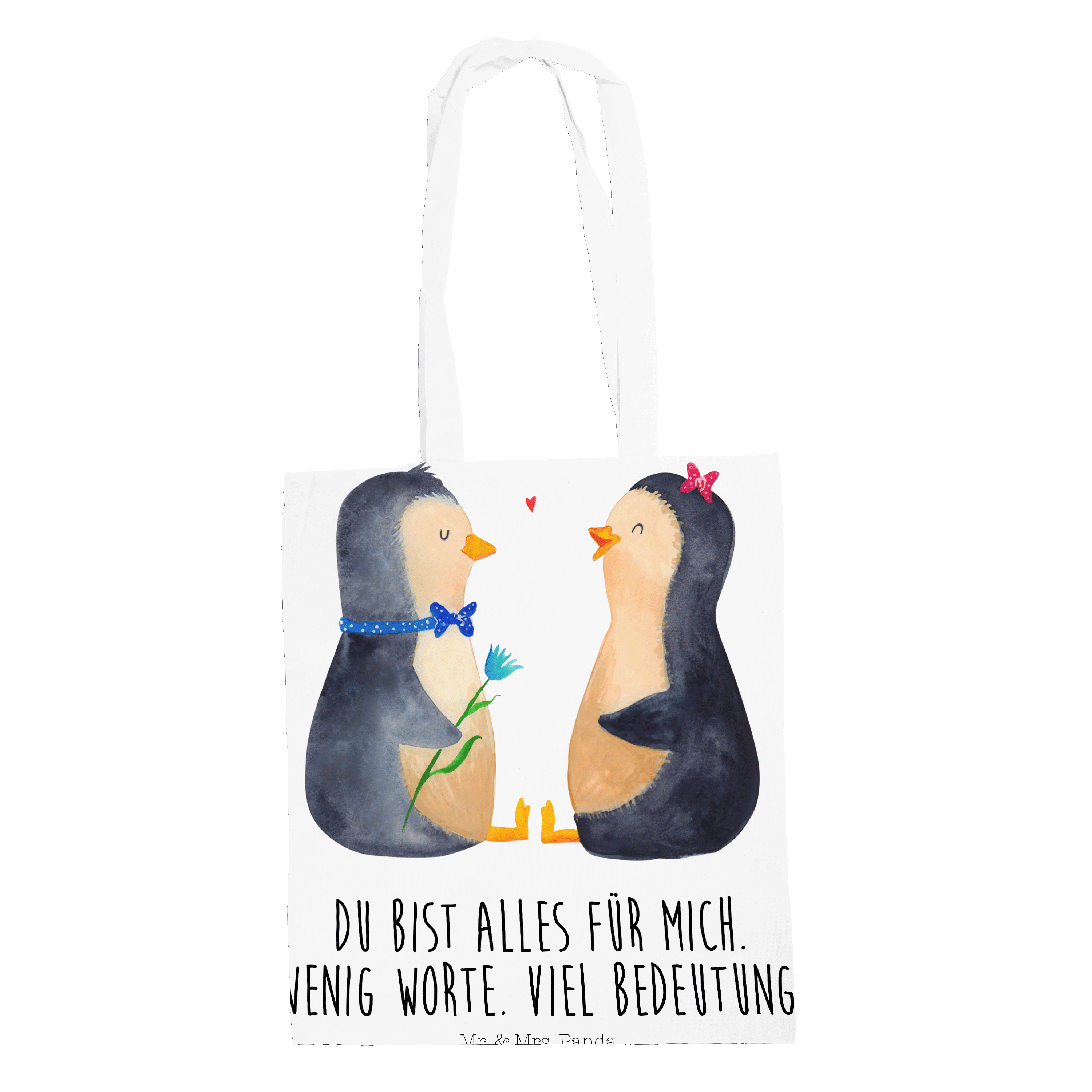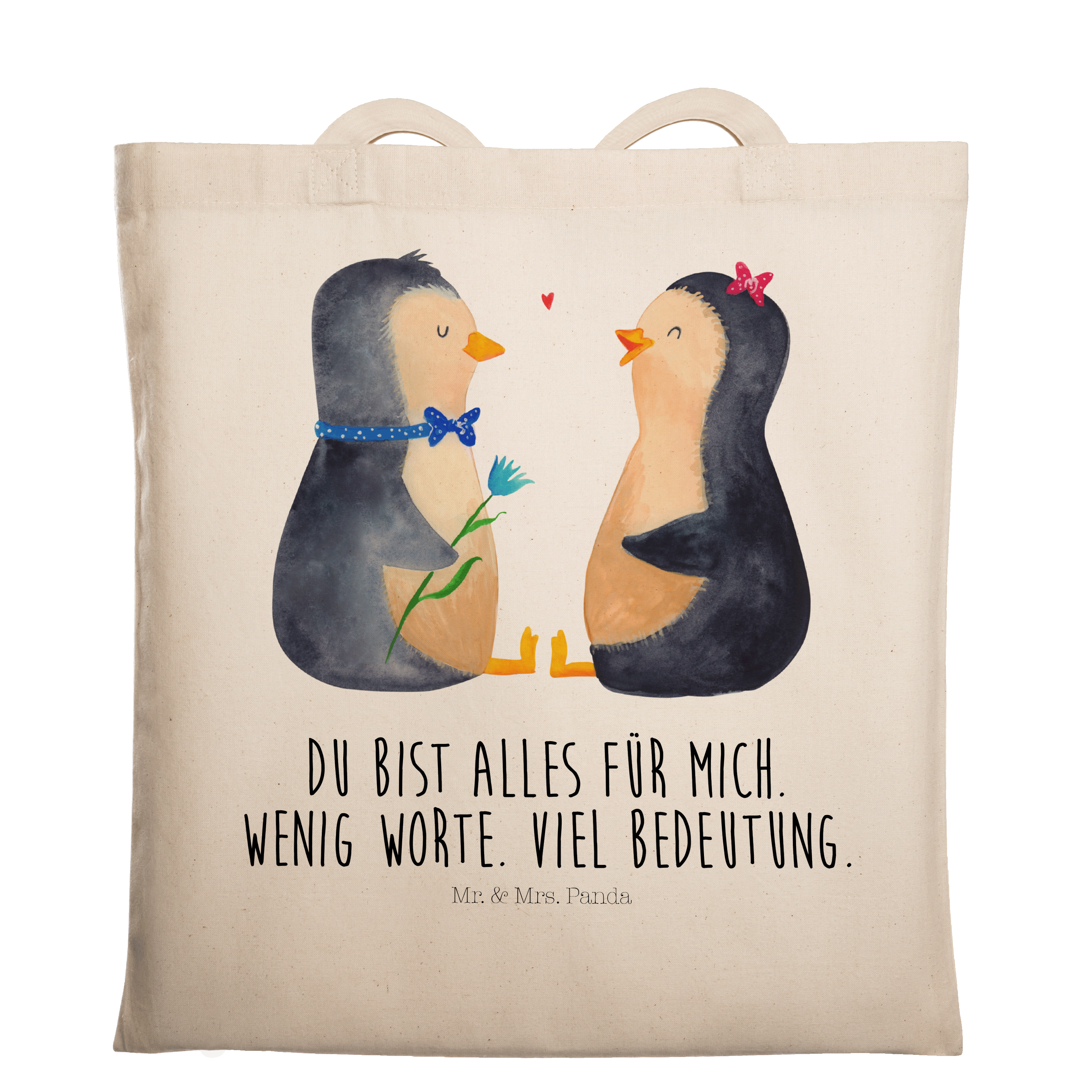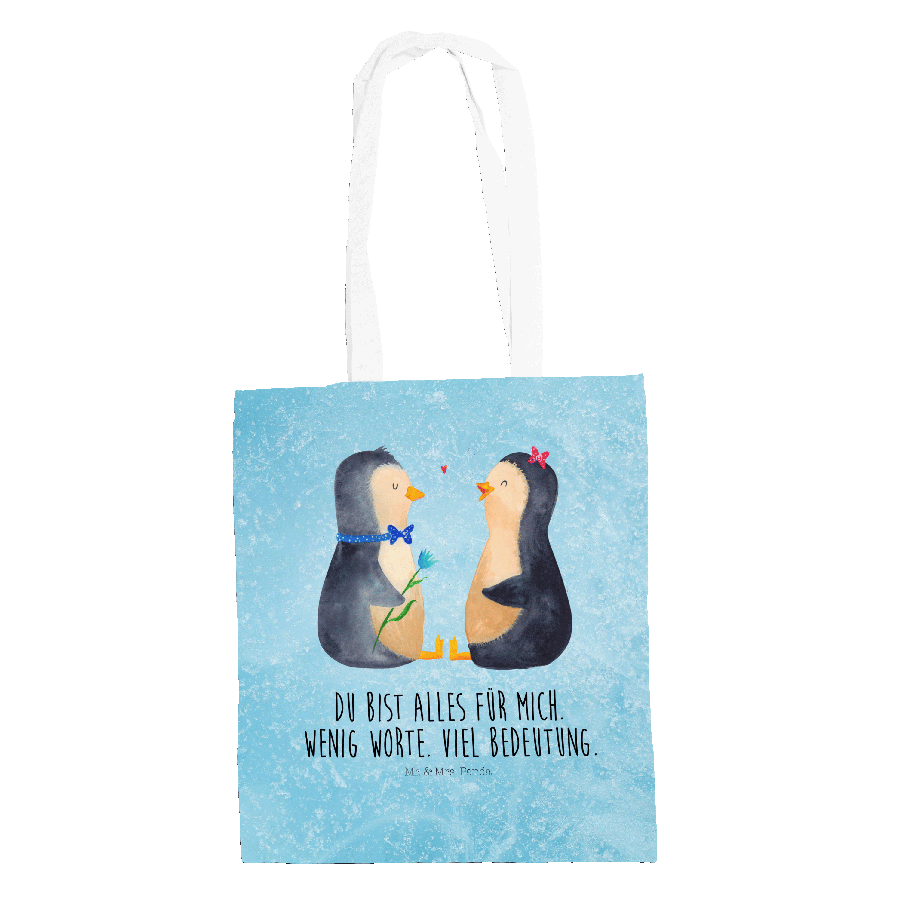 Das "Pinguin Pärchen" von Mr. & Mrs. Panda ist das perfekte Motiv für Verliebte. Die beiden süßen Pinguine sitzen sich gegenüber und schauen sich liebevoll an. Der Junge und das Mädchen sind nicht nur optisch ein tolles Paar und bringen jeden zum Schmunzeln. Dieses Motiv versprüht pure Lebensfreude und ist ein wundervolles Geschenk für den Partner oder die Partnerin.