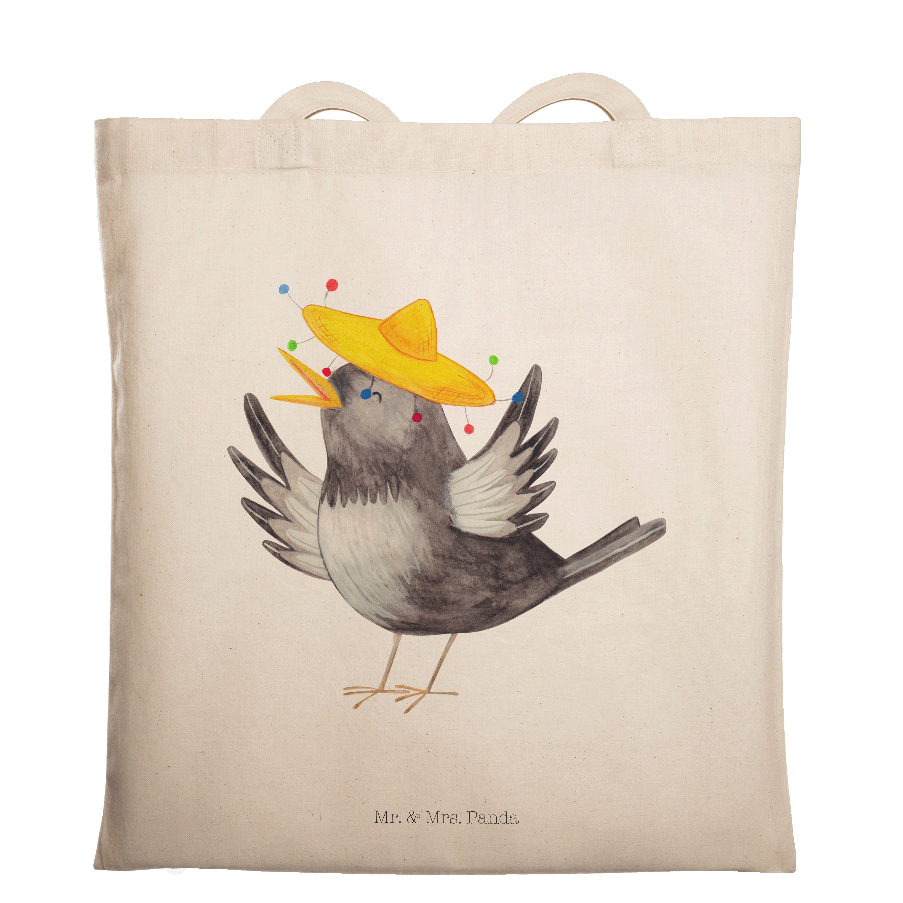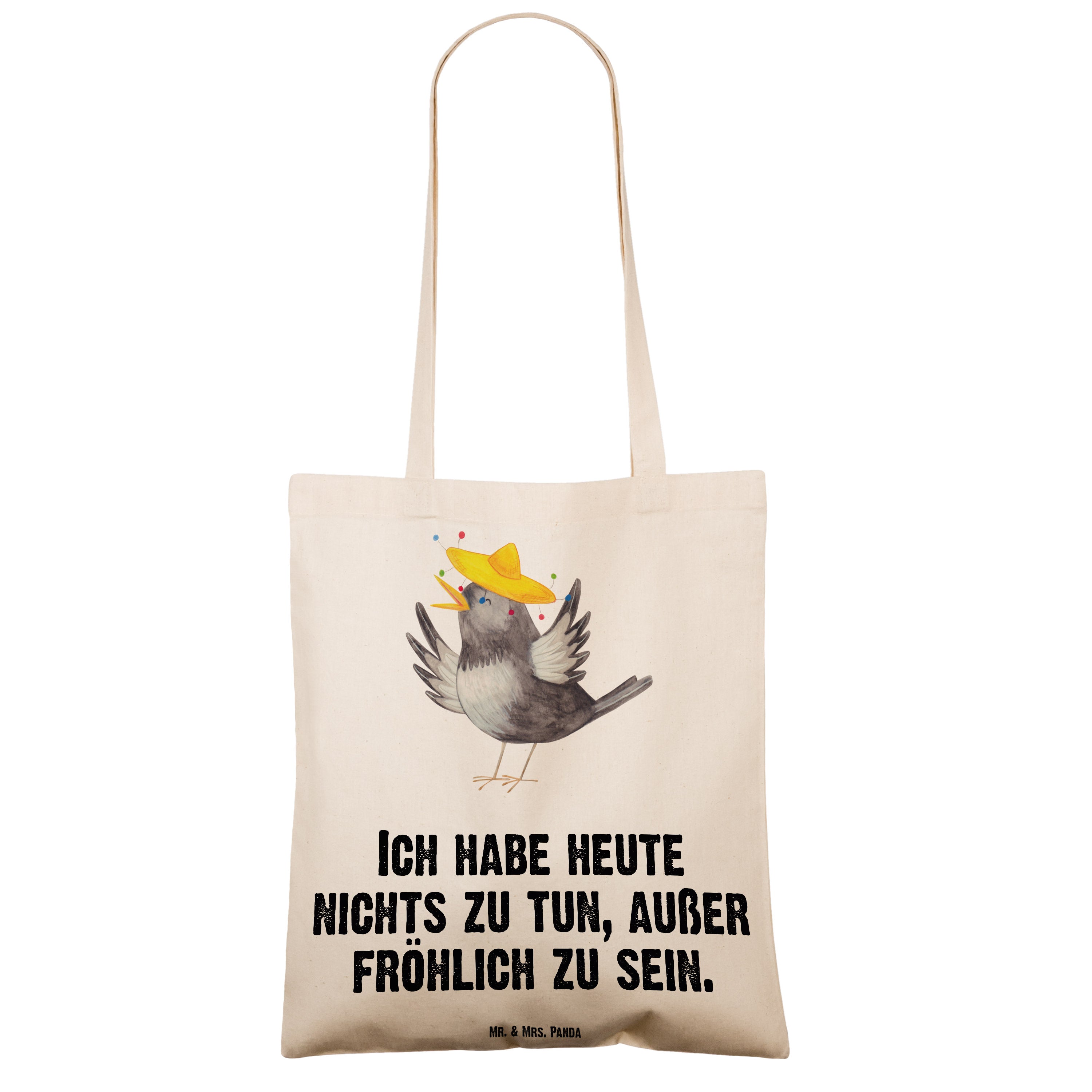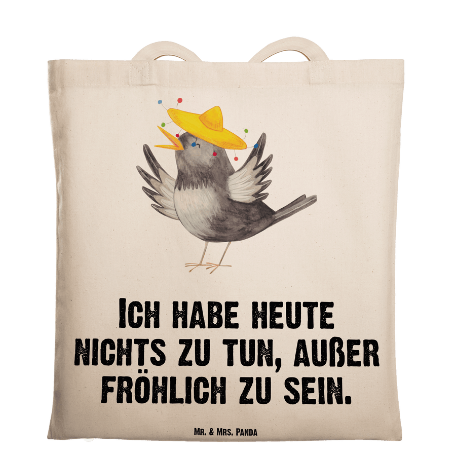 Tragetasche Rabe mit Sombrero Beuteltasche, Beutel, Einkaufstasche, Jutebeutel, Stoffbeutel, Tiermotive, Gute Laune, lustige Sprüche, Tiere, Rabe, Vogel, Vögel, Spruch positiv, fröhlich sein, glücklich sein, Glück Spruch, froh, Elster, Motivation