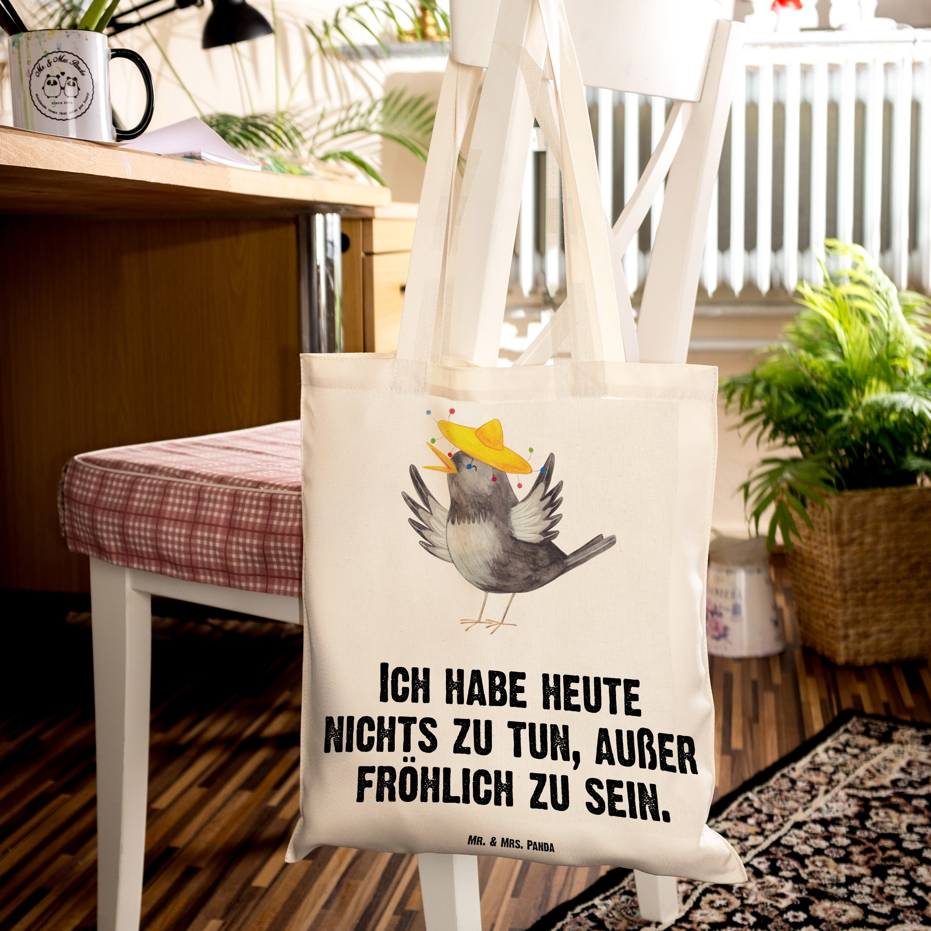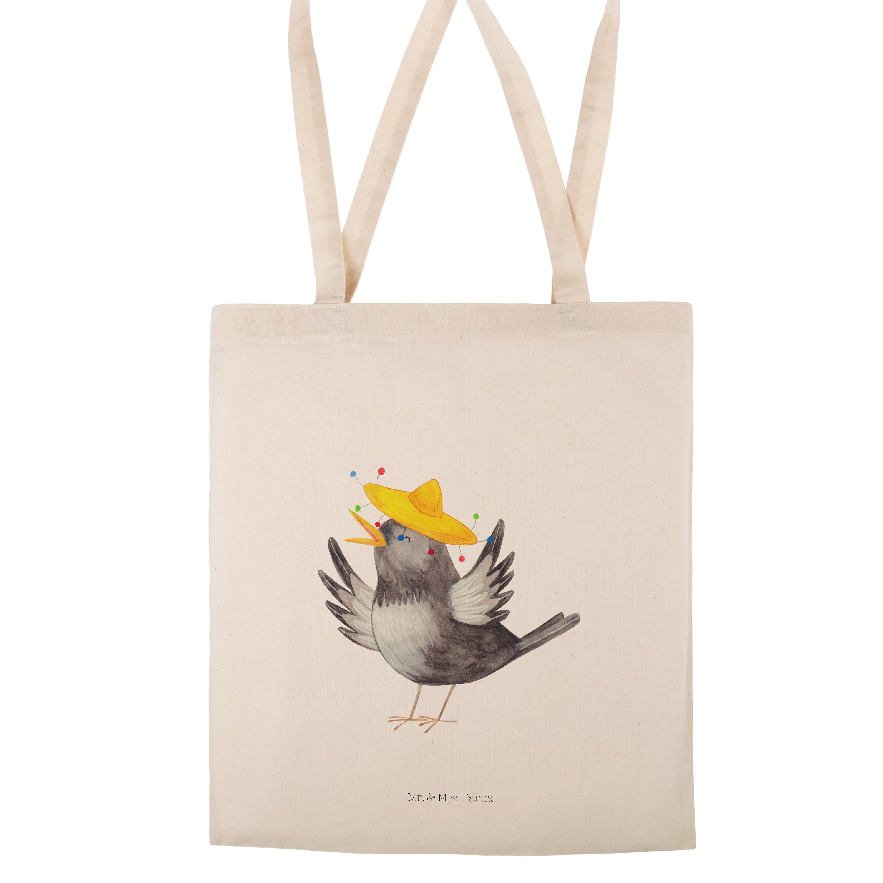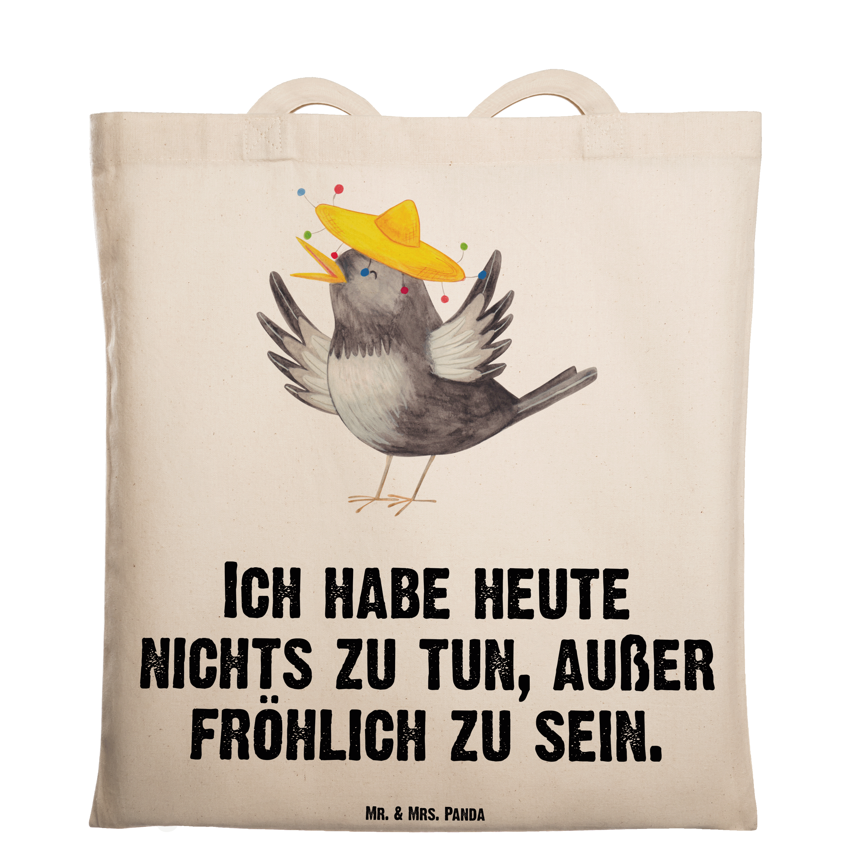 Tragetasche Rabe mit Sombrero Beuteltasche, Beutel, Einkaufstasche, Jutebeutel, Stoffbeutel, Tiermotive, Gute Laune, lustige Sprüche, Tiere, Rabe, Vogel, Vögel, Spruch positiv, fröhlich sein, glücklich sein, Glück Spruch, froh, Elster, Motivation