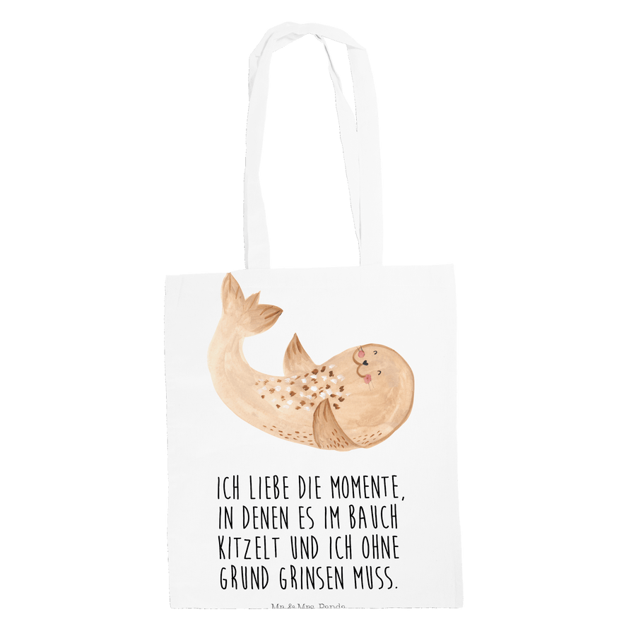Tragetasche Robbe liegend - mit Spruch - Weiß