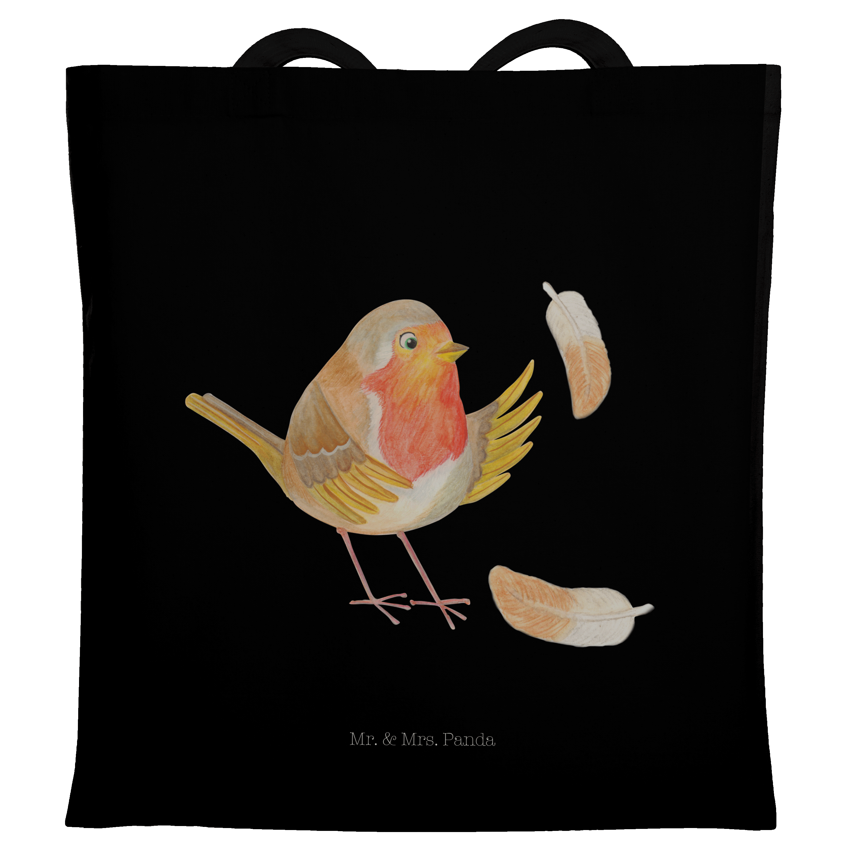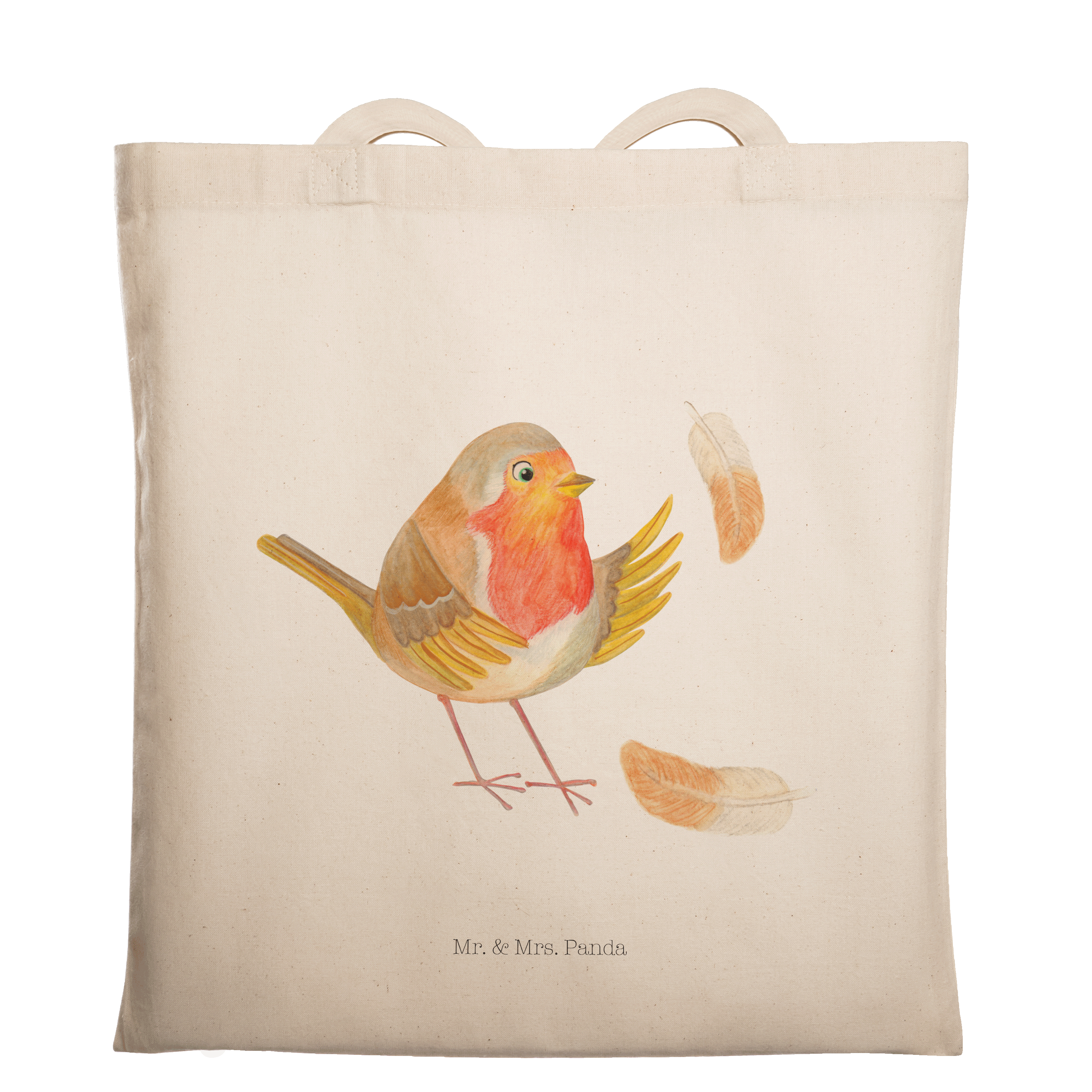 Tragetasche Rotkehlchen mit Federn - mit Spruch - Transparent