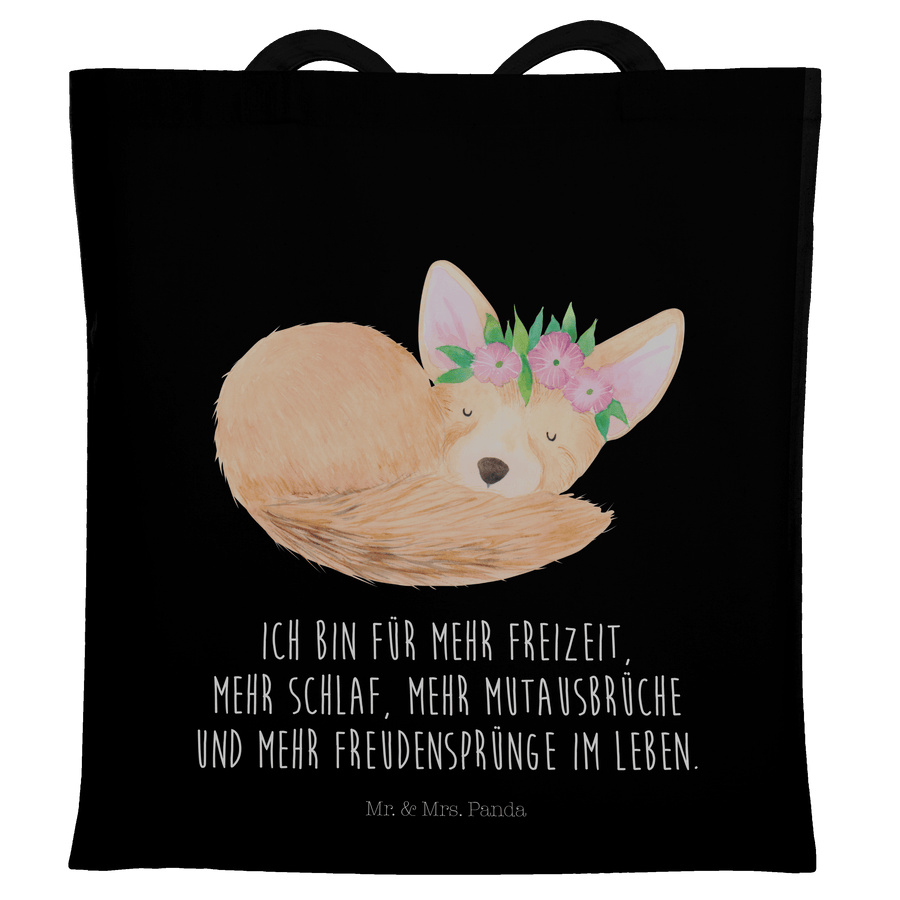 Tragetasche Wüstenfuchs Blumenkranz - mit Spruch - Schwarz