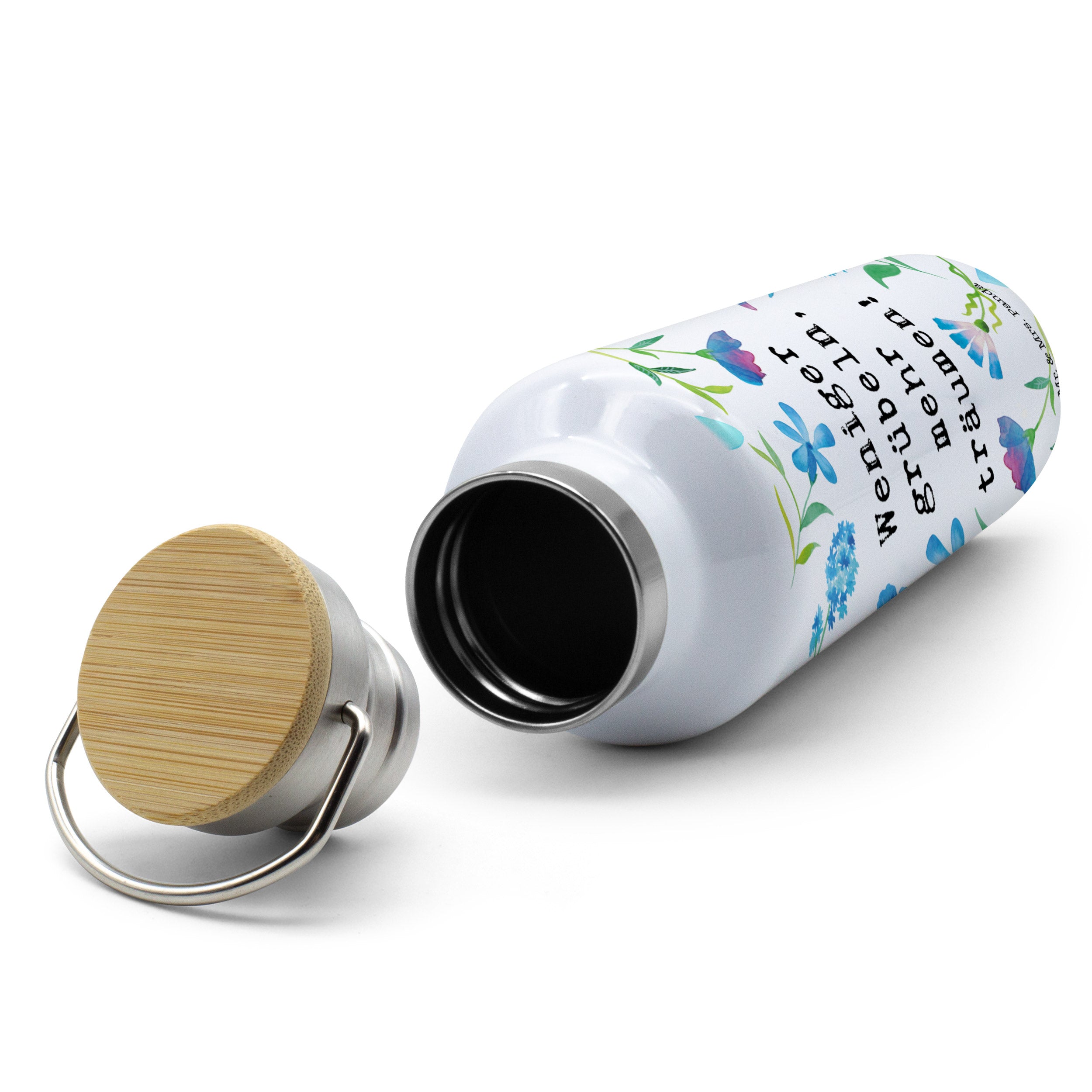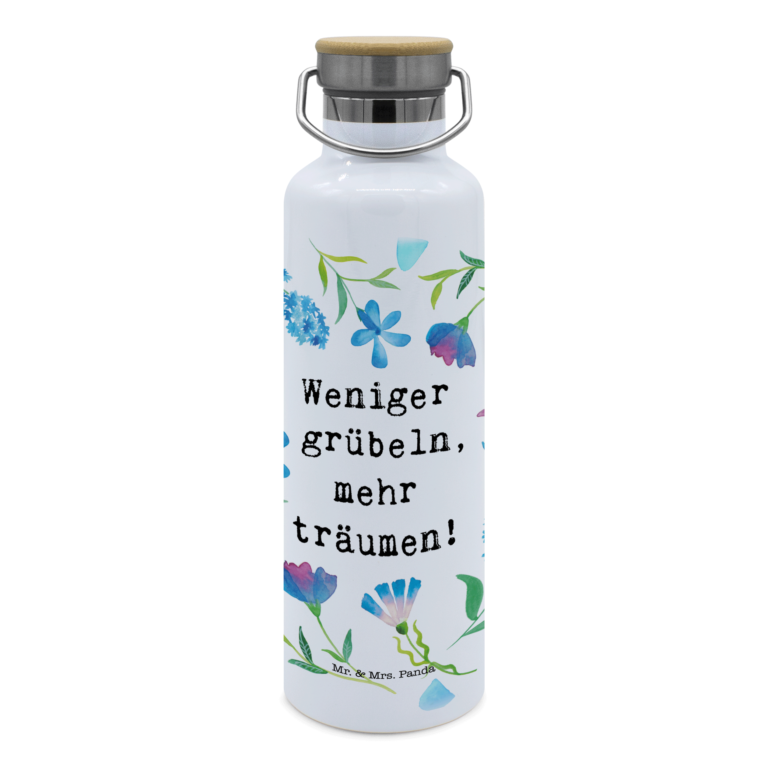 Trinkflasche Weniger grübeln Thermosflasche, Isolierflasche, Edelstahl, Trinkflasche, 0, 75 l, isoliert, Wamrhaltefunktion, Sportflasch, Flasche zum Sport, Sportlerflasche, Blumen Deko, Frühlings Deko, Sommer Deko, Dekoration, positive Botschaft, Naturliebhaber, Outdoor, Natur, Abenteuer