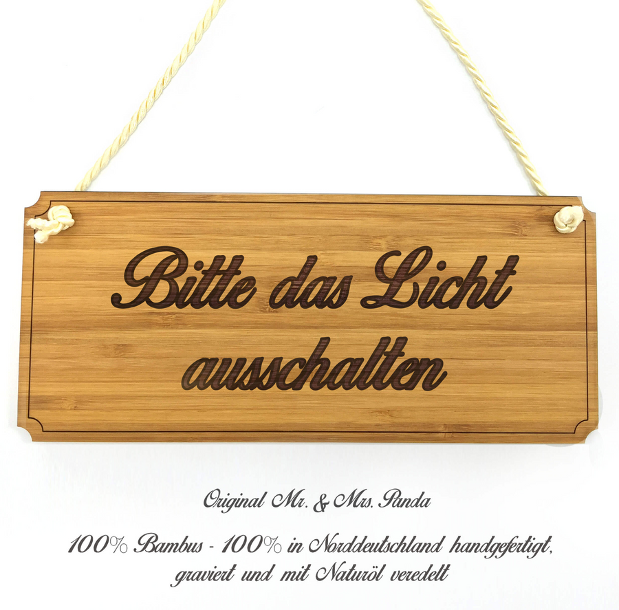 Türschild "Bitte das Licht ausschalten" aus Bambus