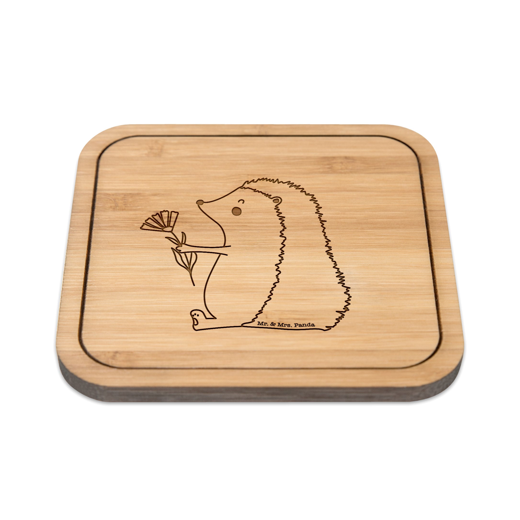 Untersetzer quadratisch Igel mit Blume - mit Spruch