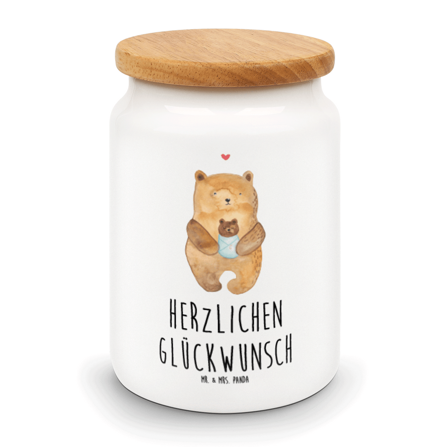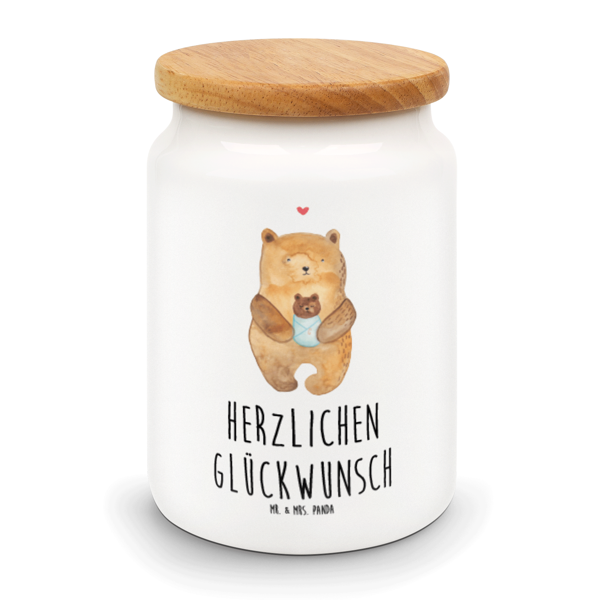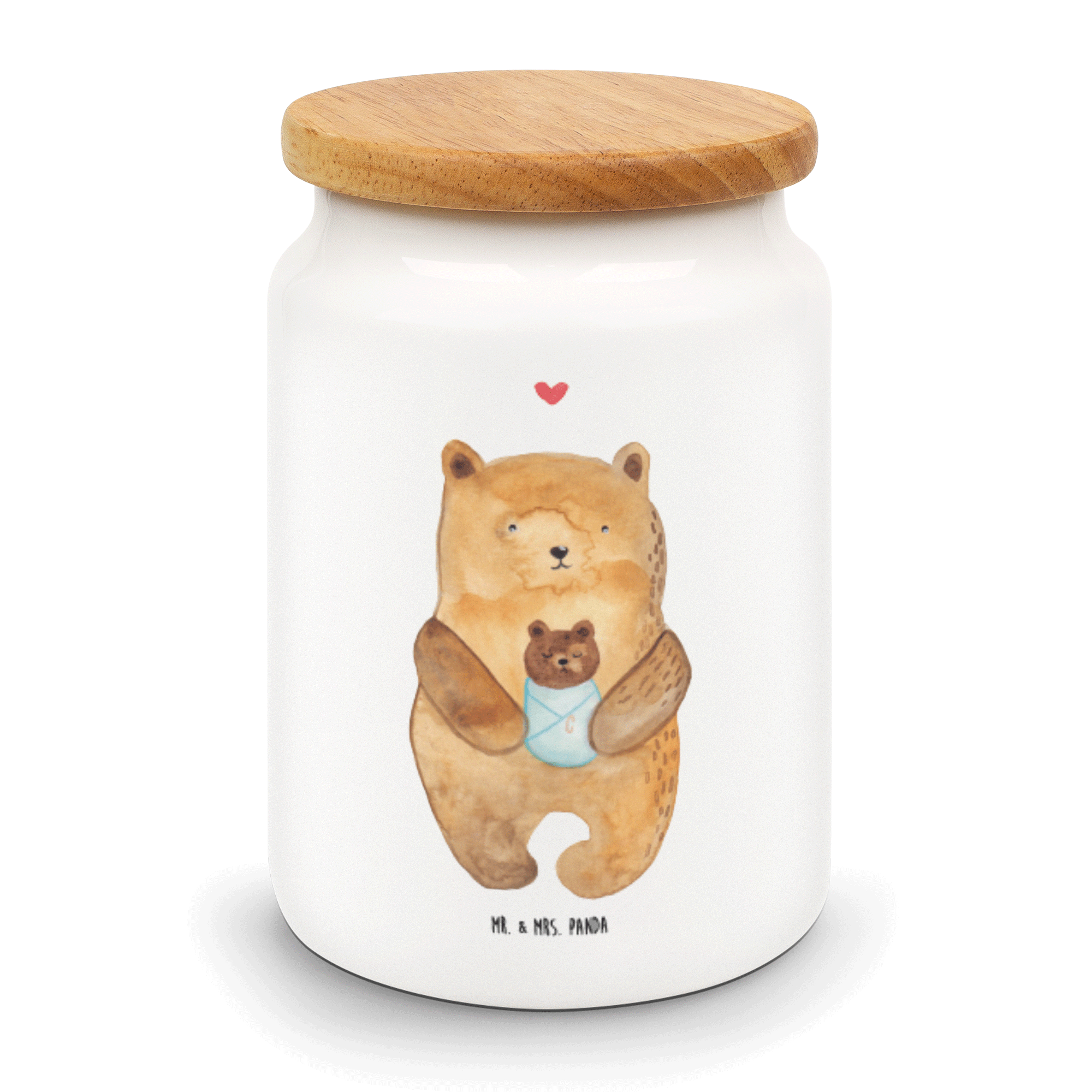 Vorratsdose Bär mit Baby Vorratsdose, Keksdose, Keramikdose, Leckerlidose, Dose, Vorratsbehälter, Aufbewahrungsdose, Bär, Teddy, Teddybär, Eltern, Mutter, Baby, Taufe, Geburt, Nichte, Neffe, Enkel, Enkelin, Täufling, Geburtstag, Glückwunsch