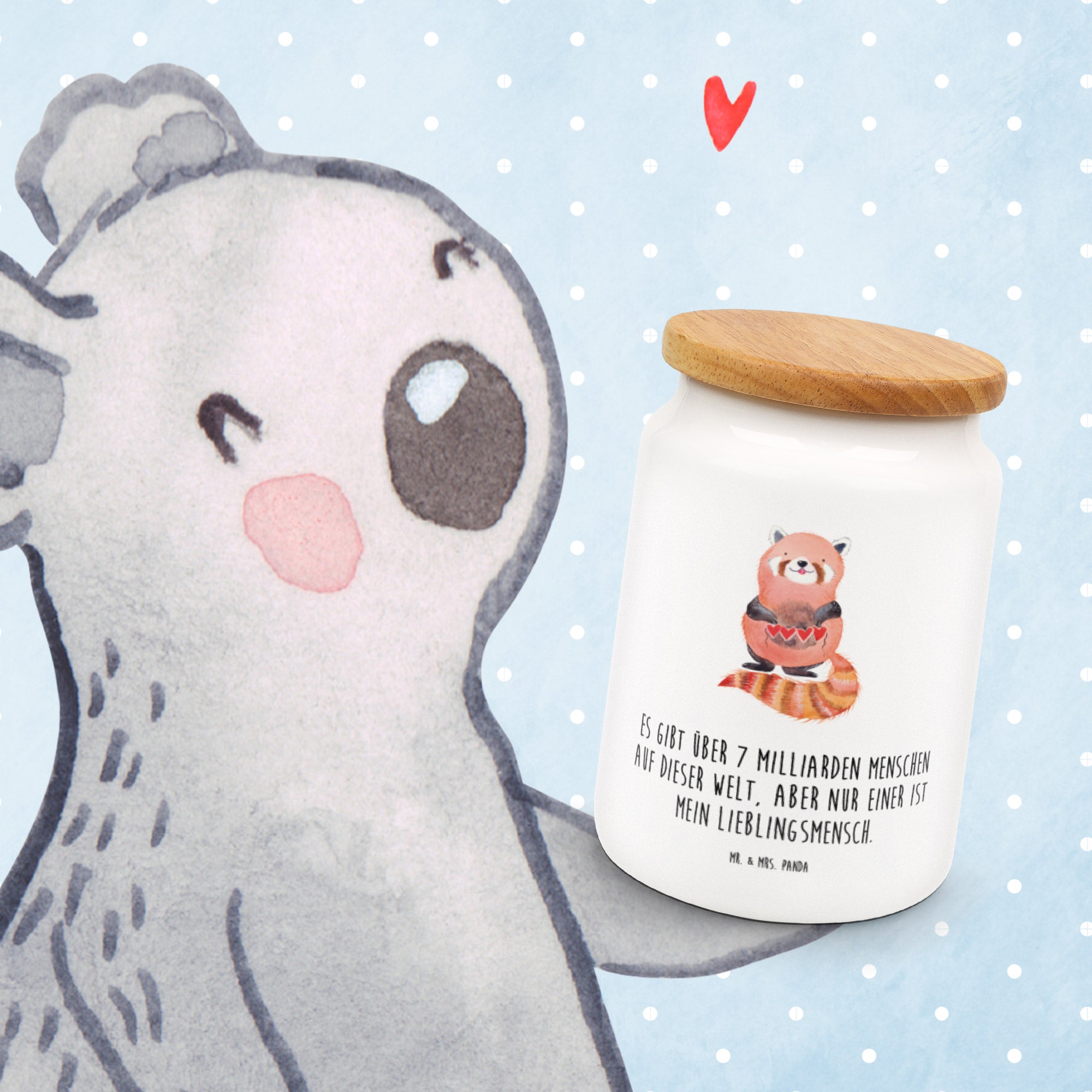 Vorratsdose Roter Panda Vorratsdose, Keksdose, Keramikdose, Leckerlidose, Dose, Vorratsbehälter, Aufbewahrungsdose, Tiermotive, Gute Laune, lustige Sprüche, Tiere, Panda, Liebe, Rot, Herz, Liebling, Lieblingsmensch