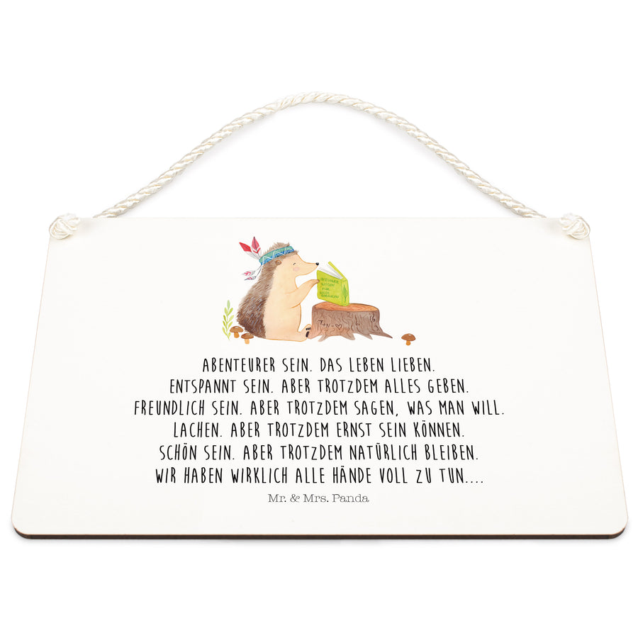 Deko Schild Igel Indianer - mit Spruch - Weiß