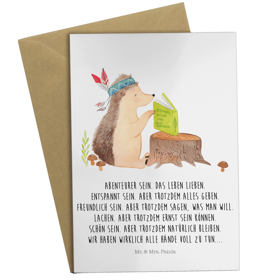 Grußkarte Igel Indianer - mit Spruch - Weiß