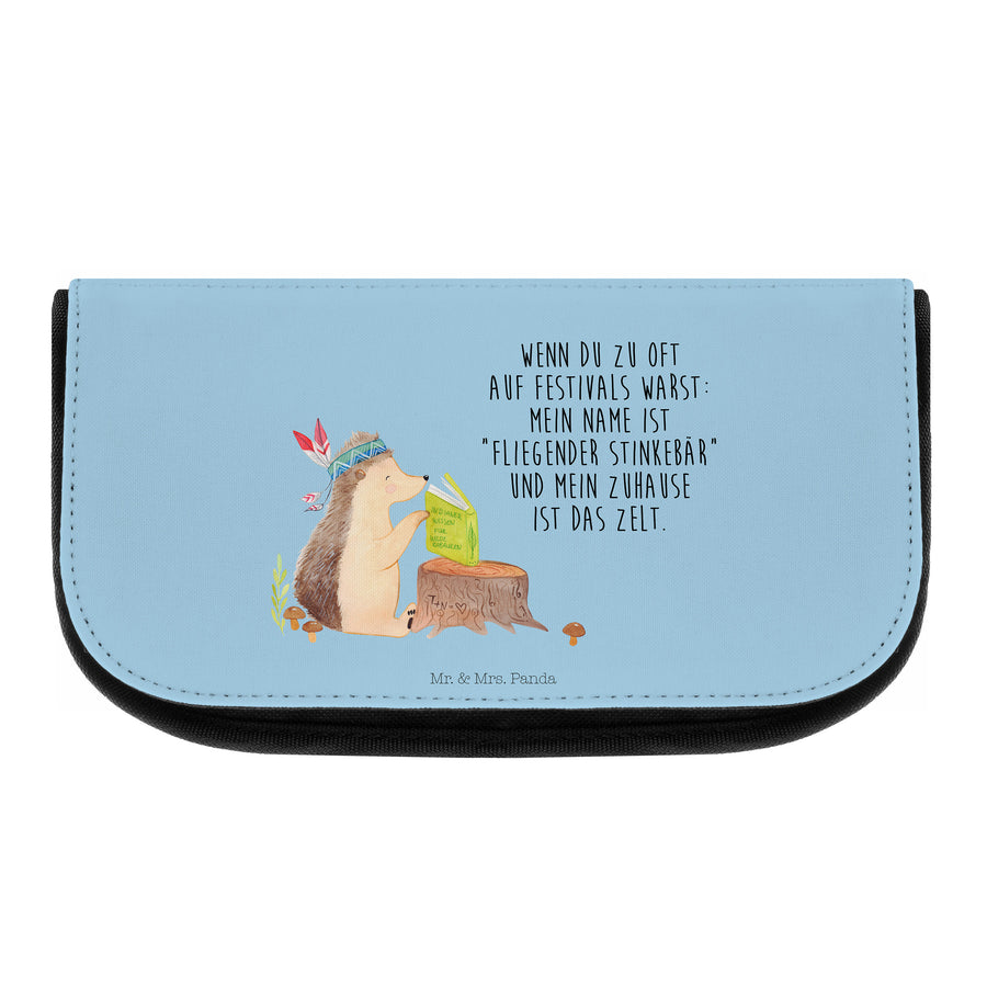 Kosmetiktasche Igel Indianer - mit Spruch - Blau Pastell