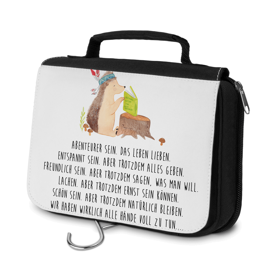 Kulturbeutel Igel Indianer - mit Spruch - Weiß