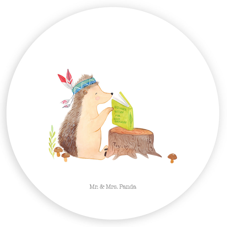 40mm Rund Aufkleber Igel Indianer - Weiß