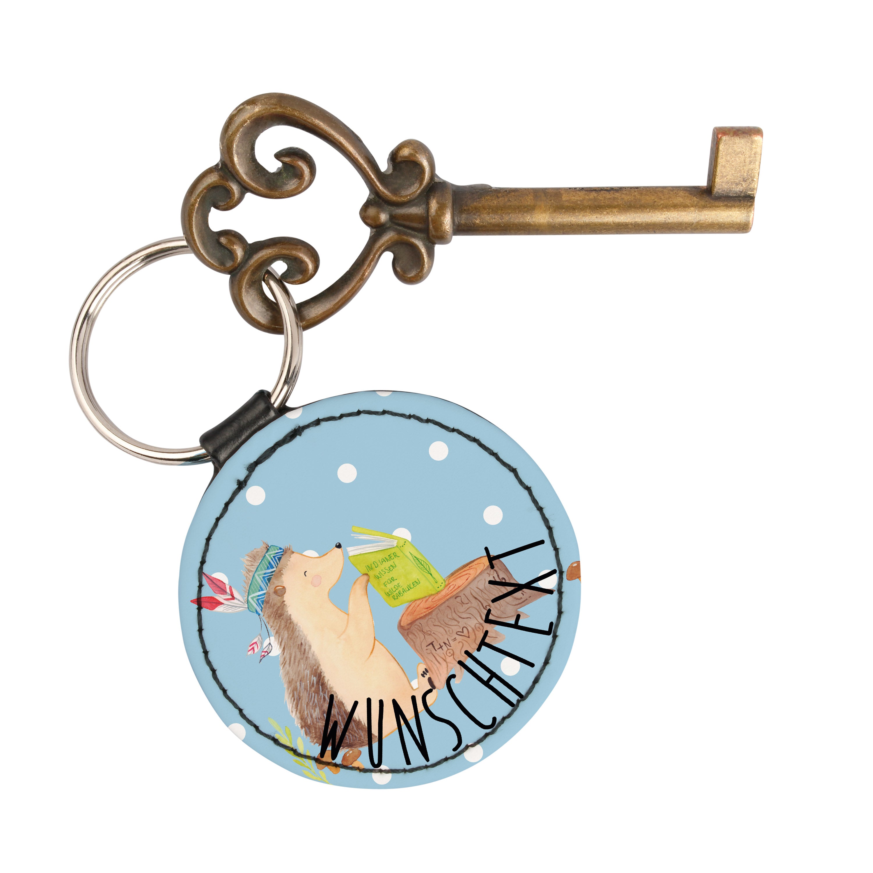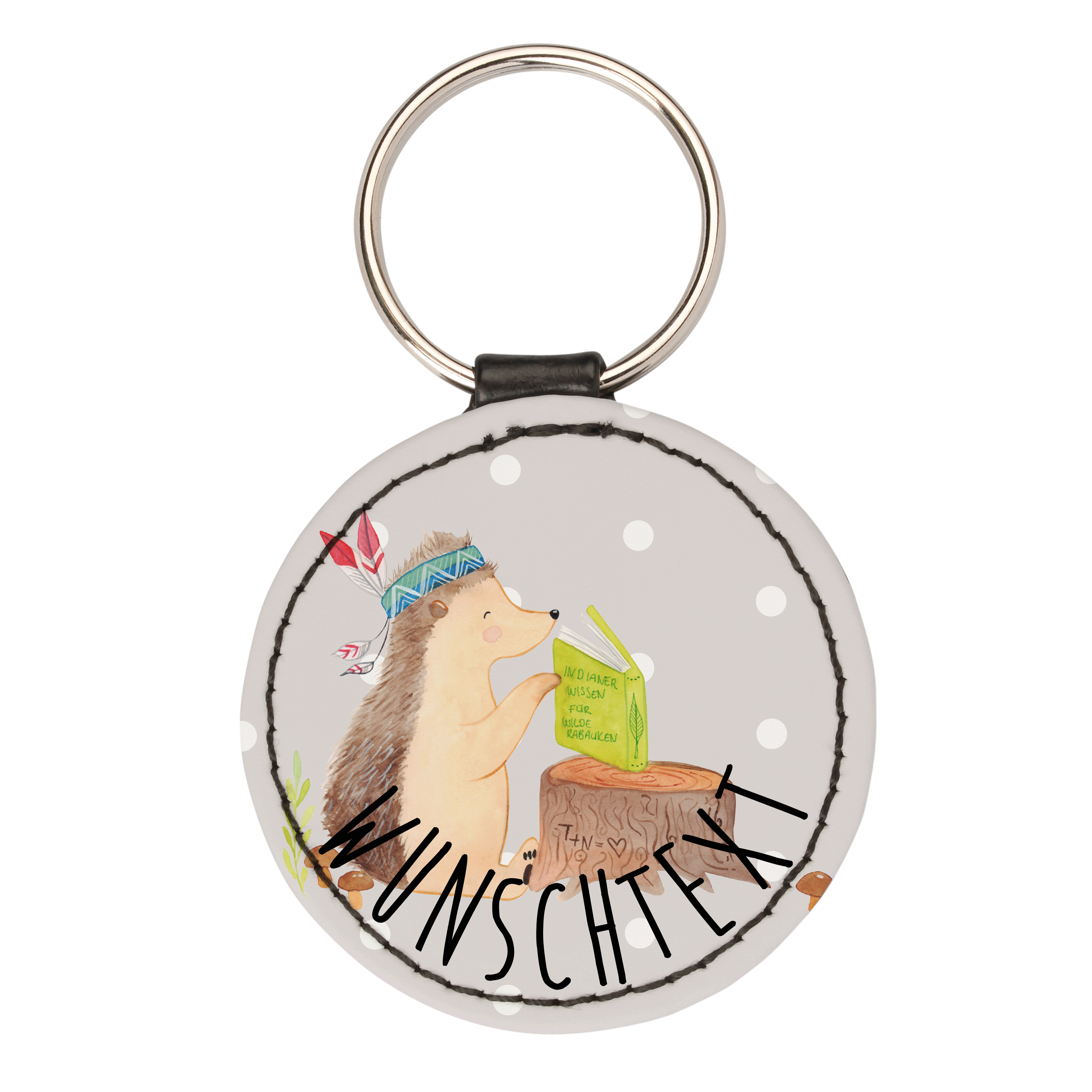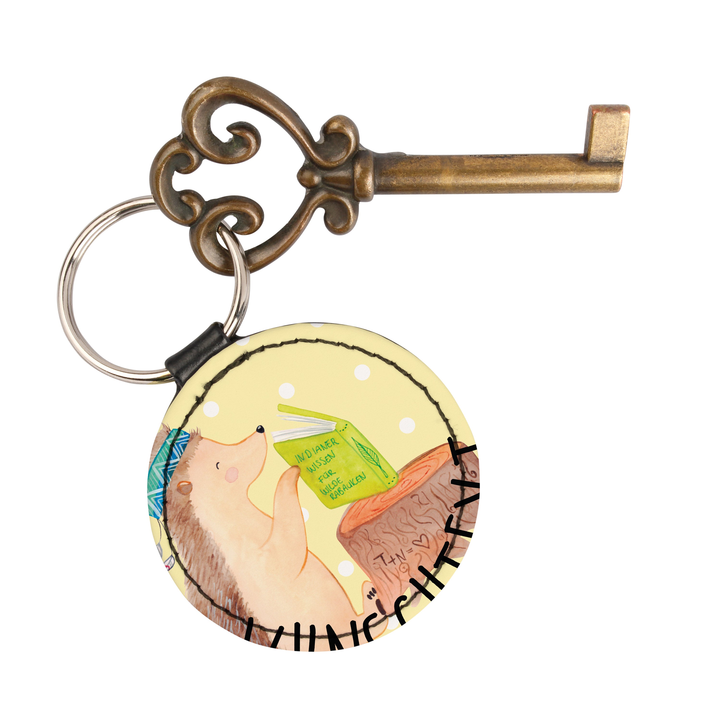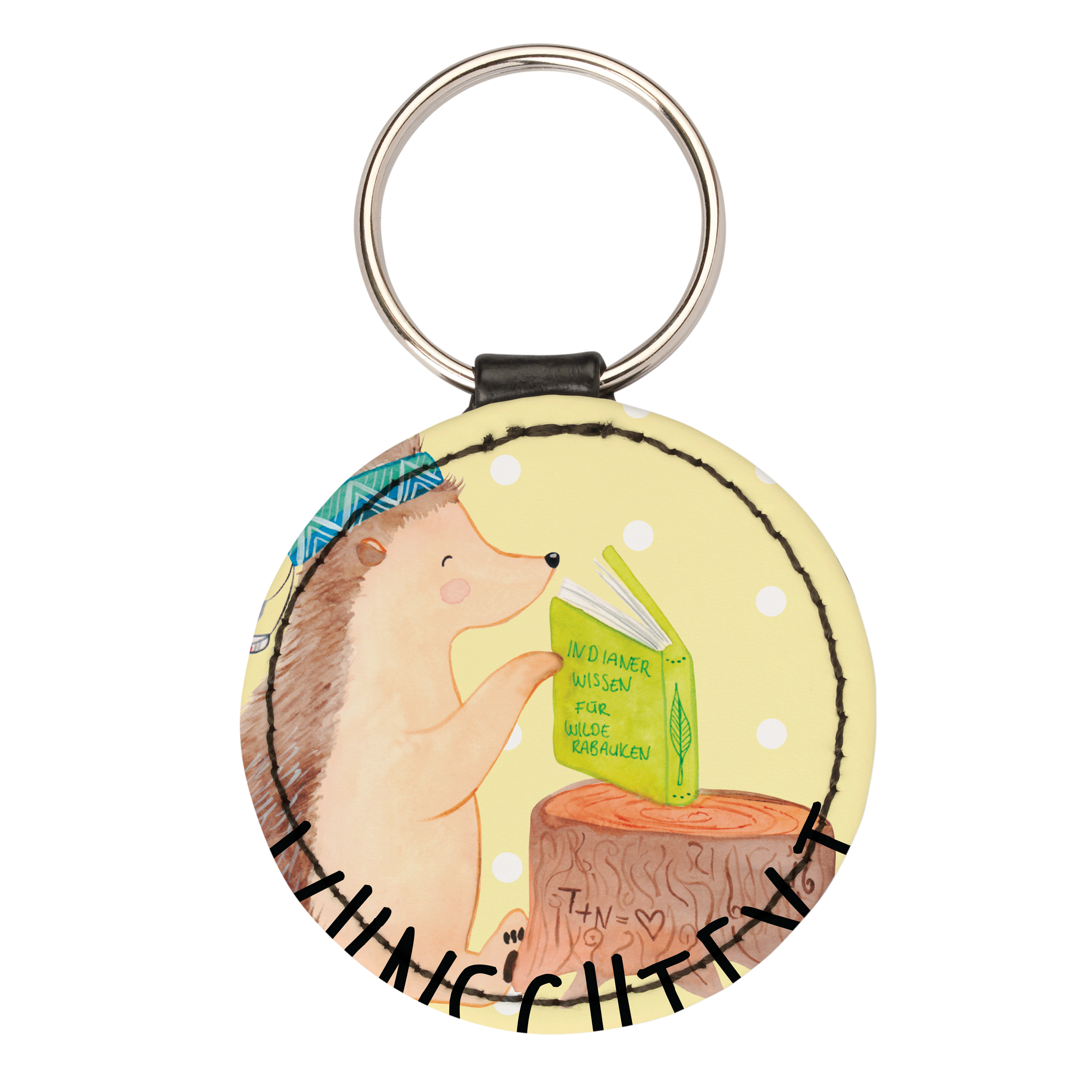 Personalisierter Schlüsselanhänger Igel Indianer - Gelb Pastell