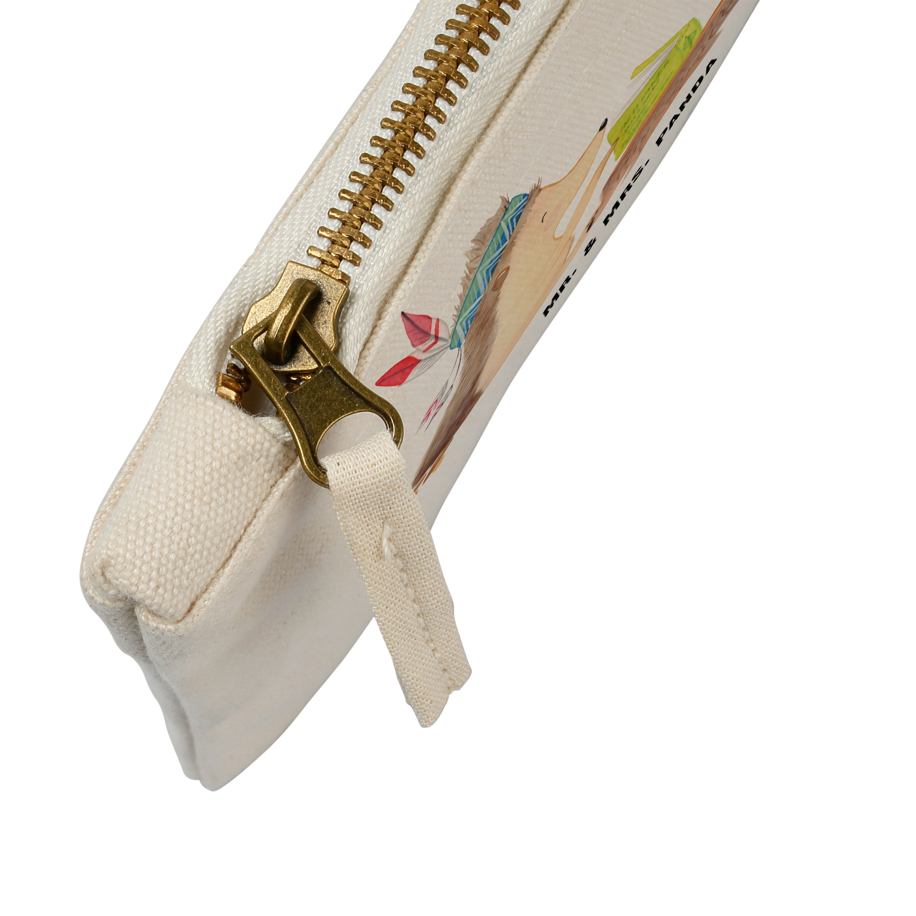 Eine wunderschöne Schminktasche von Mr. & Mrs. Panda mit Reißverschlussfach. Diese Kosmetiktasche oder Kosmetikbeutel ist aus 100% Baumwolle und bedruckt mit unseren wunderschönen handgezeichneten Motiven. Hol dir dieses einzigartige Etui direkt nach Hause - du kannst die Tasche auch perfekt als Stiftemäppchen, Federmappe, Schlamper oder Etui verwenden.
